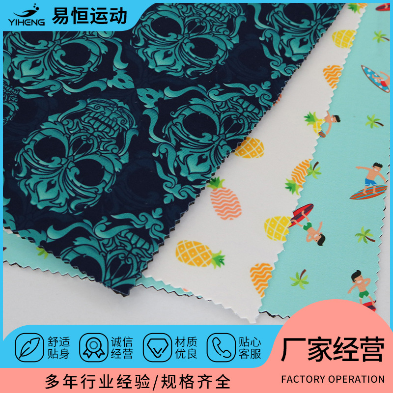 涤纶消光莱卡印花长毛面料莱卡印花面料儿童潜水服运动护具面料