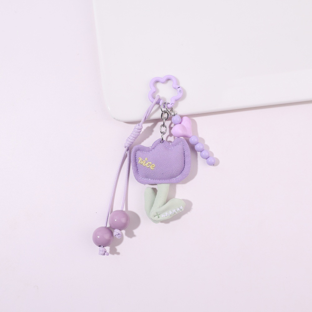 春款布艺郁金香钥匙扣文创挂件花朵服饰饰品配件diy包包挂饰批发