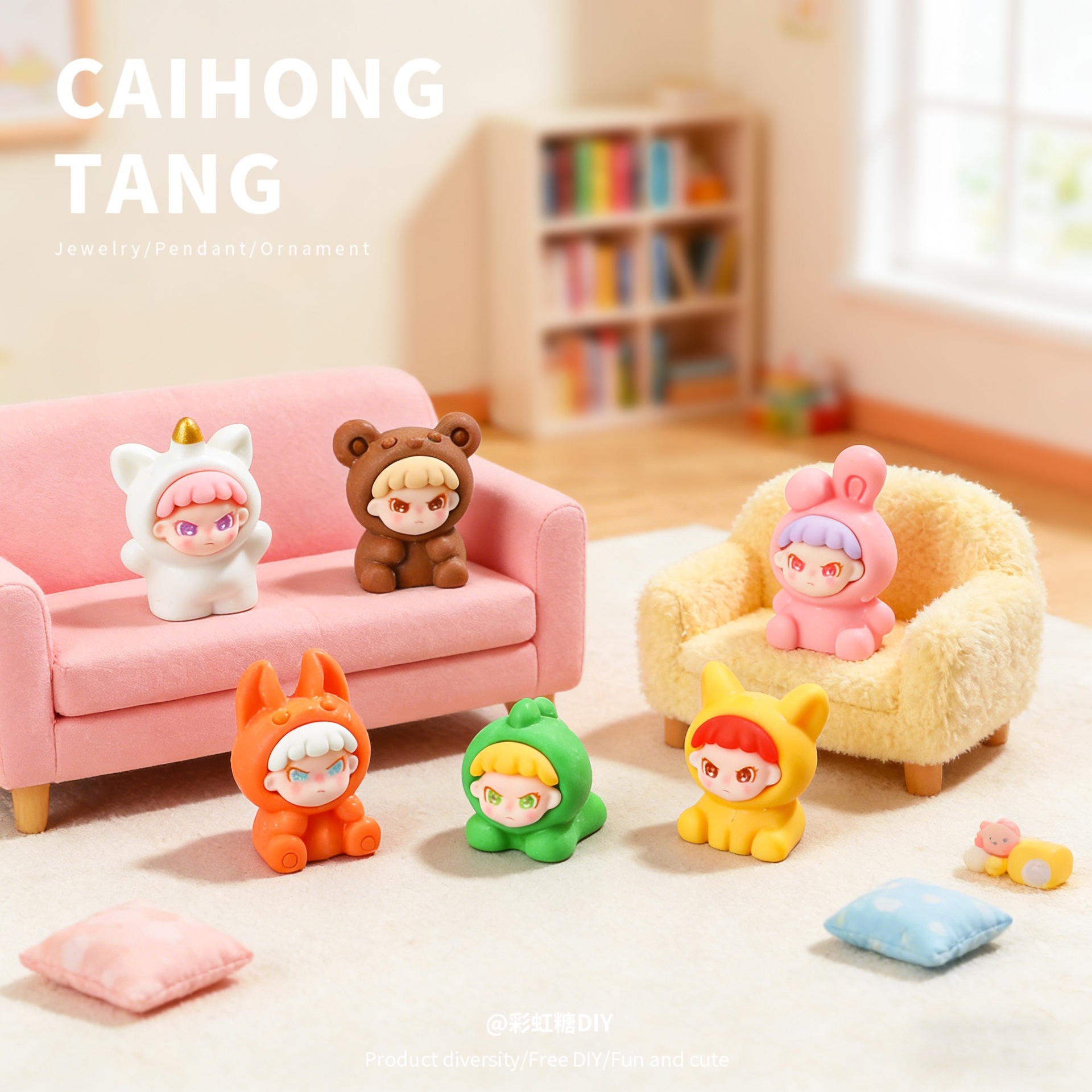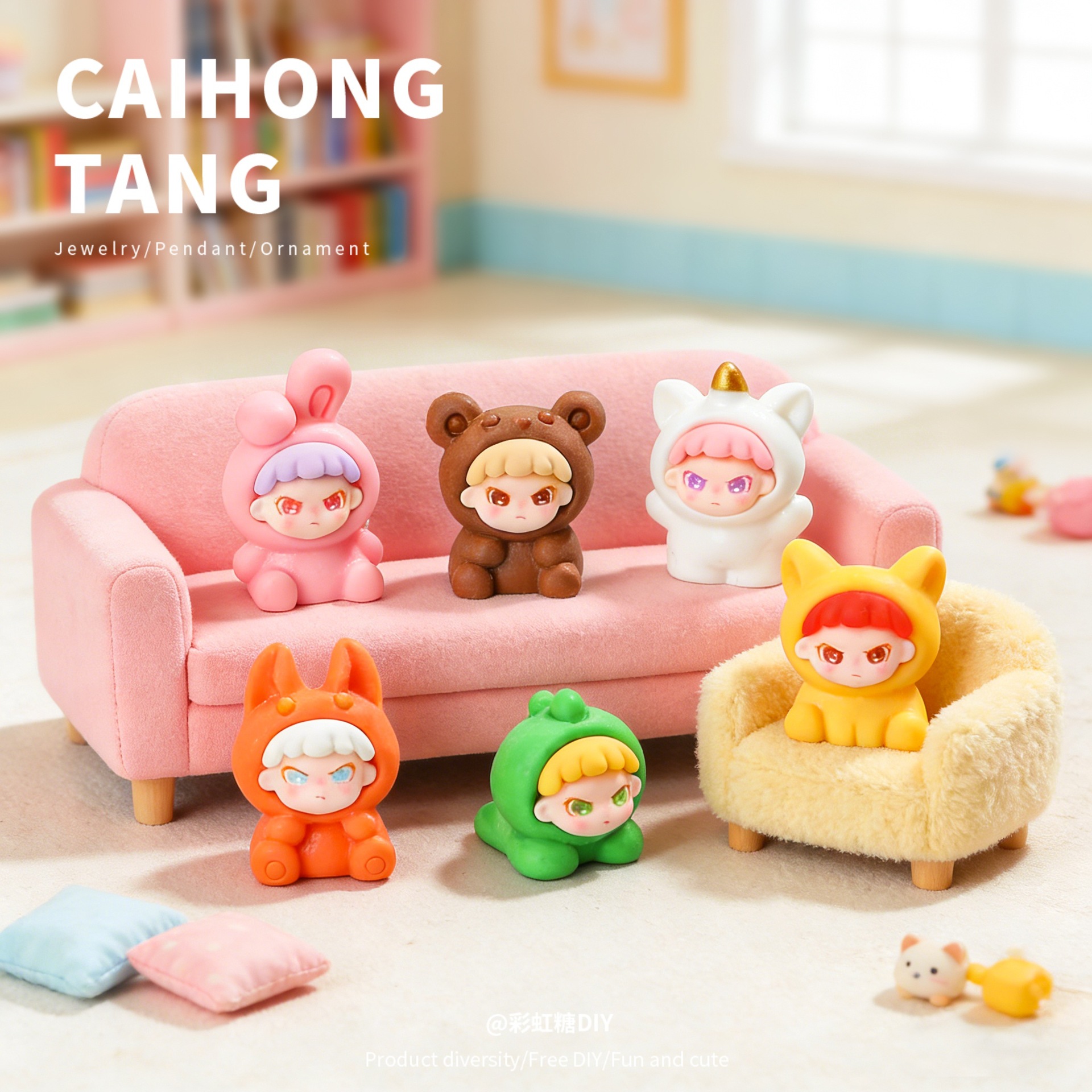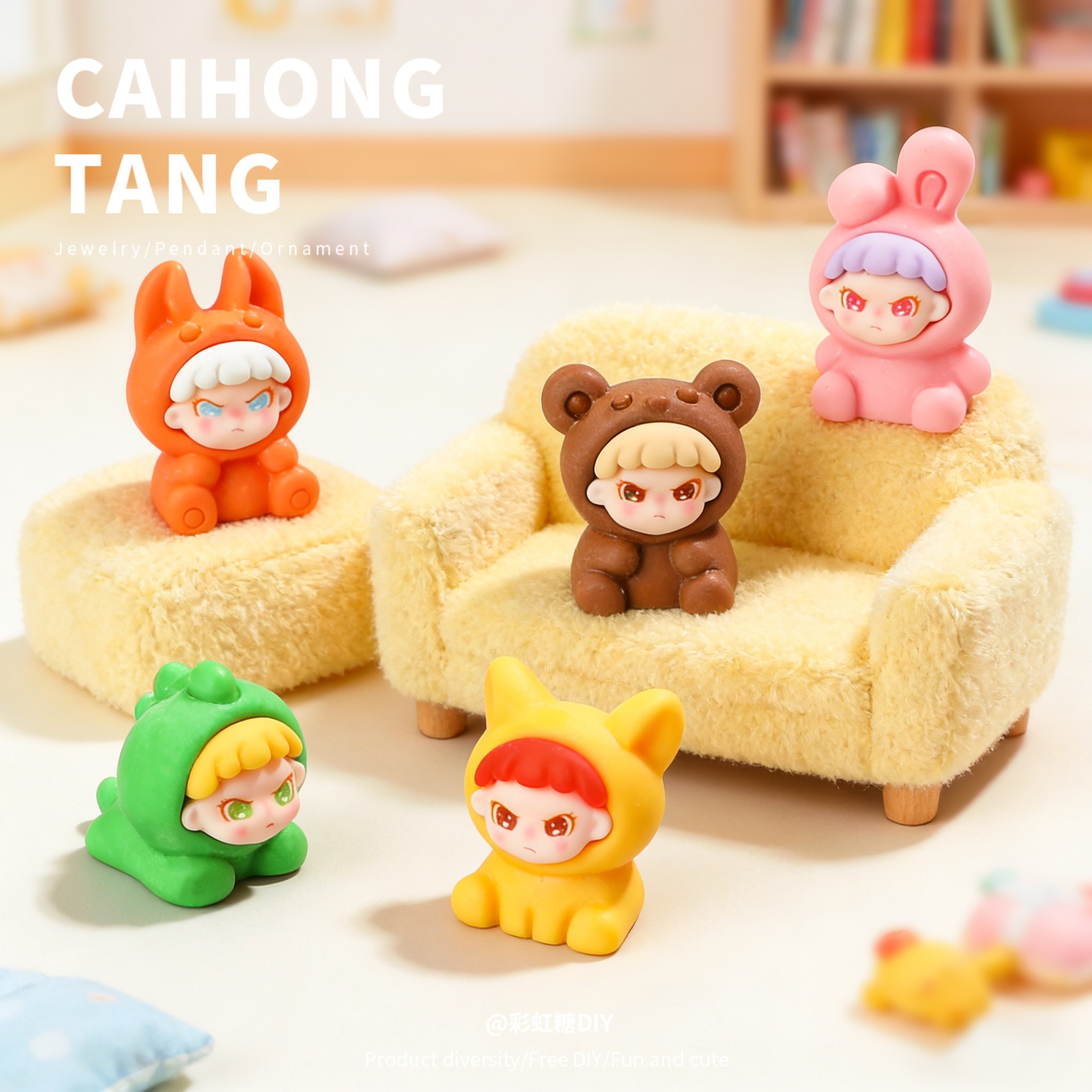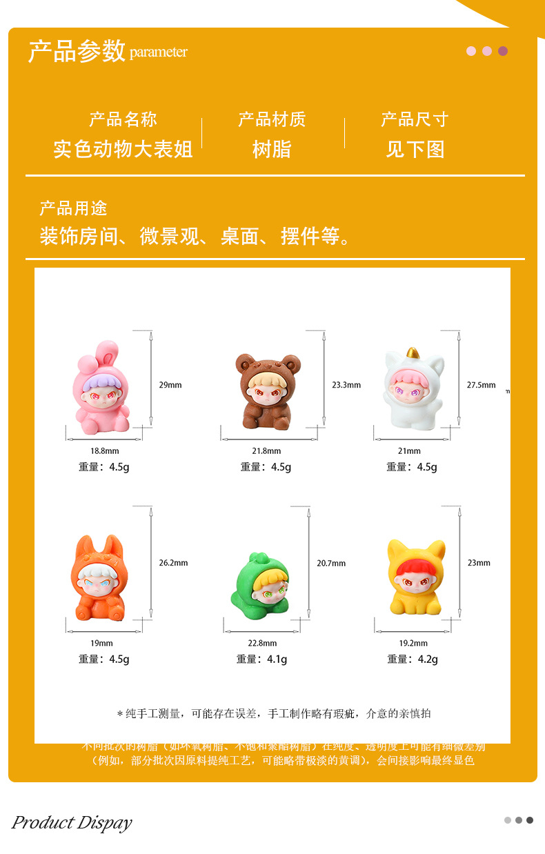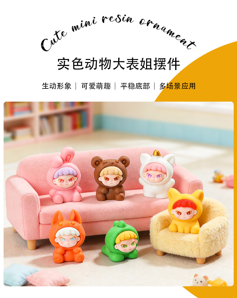 树脂卡通实色实色动物大表姐 创意钥匙扣挂件车载摆件DIY饰品配件