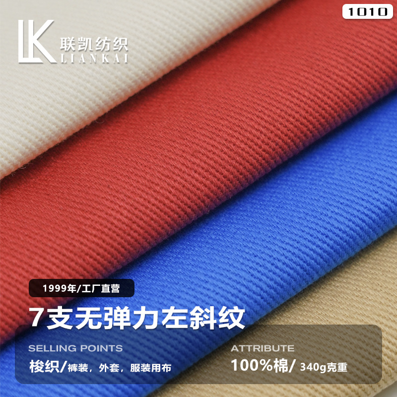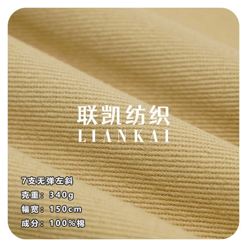 纯棉梭织裤子面料 340G加厚无弹左斜斜纹棉布 全工艺水洗棉布料