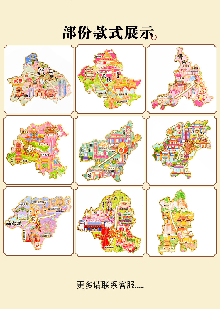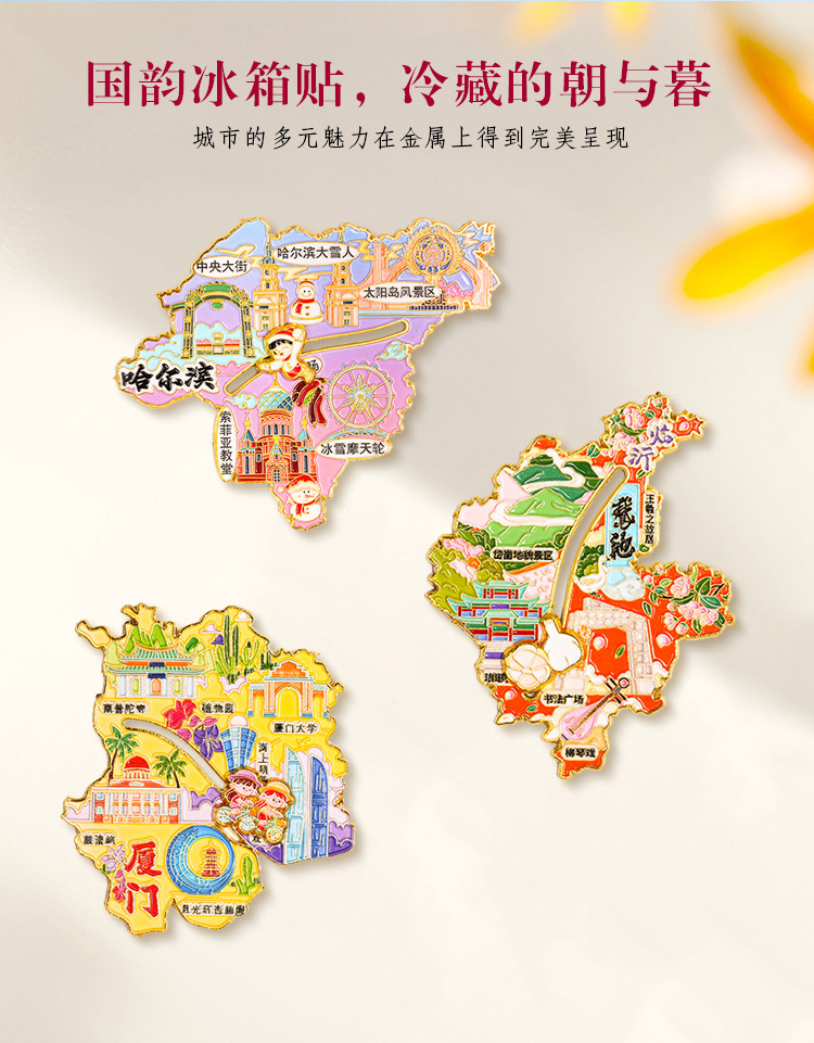 哈尔滨冰箱贴全国城市天津重庆南京杭州苏州滑轨地图文创小礼品
