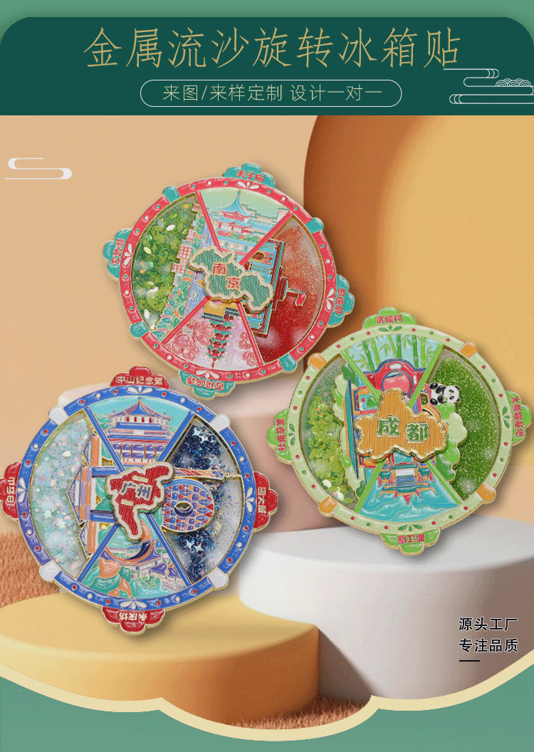 旋转冰箱贴地标全国城市文创饰品广州珠海南京成都上饶旅游纪念品
