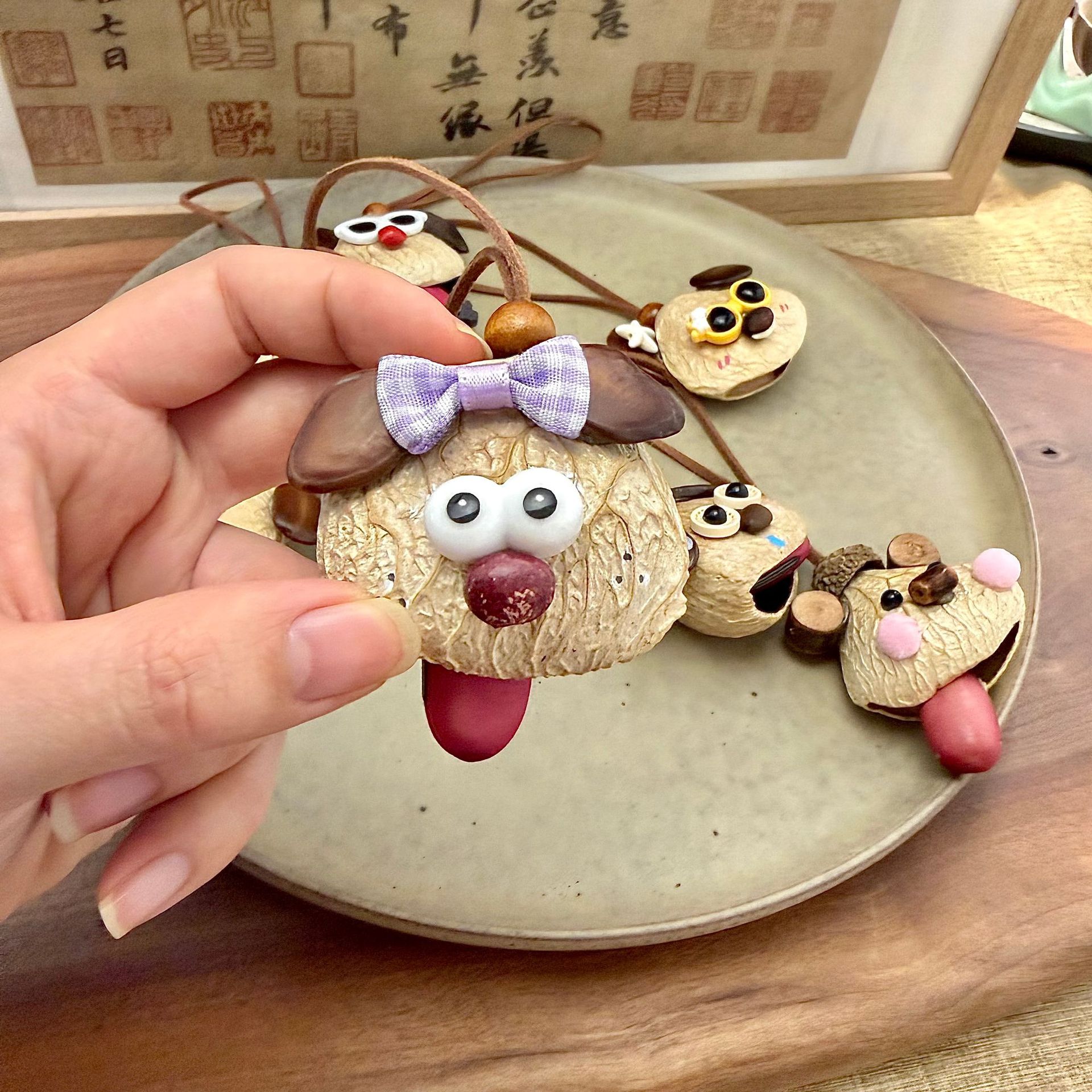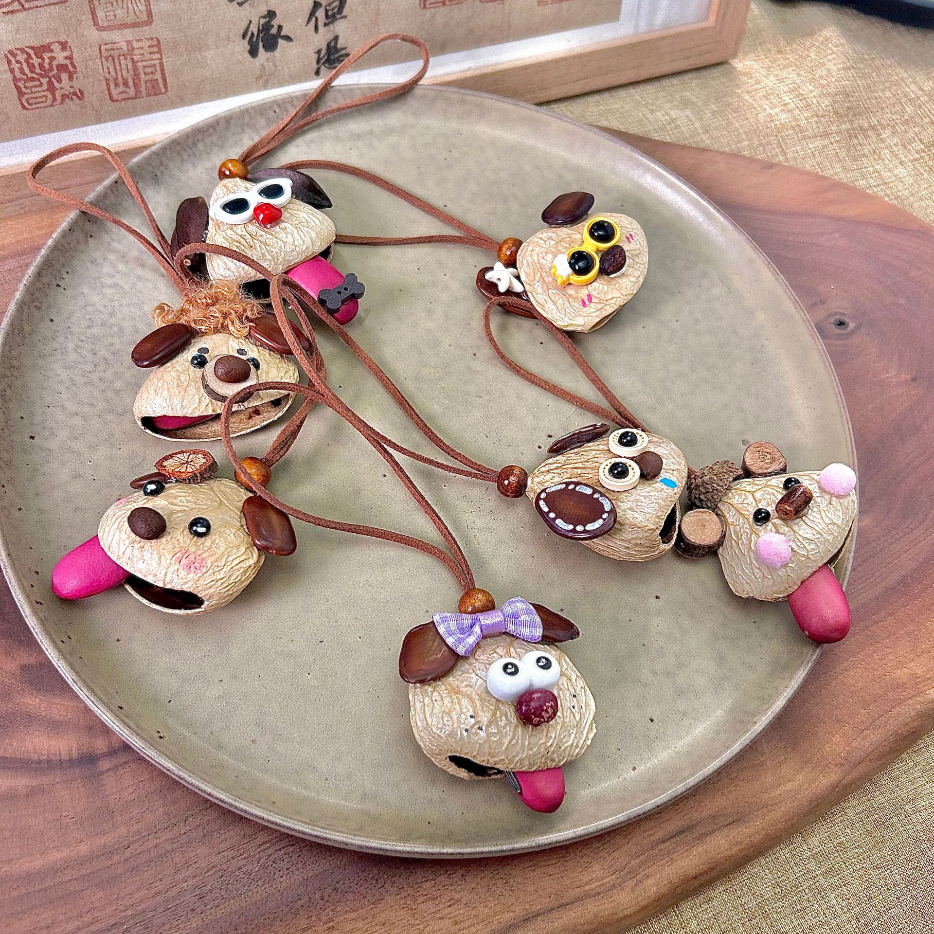 可爱小狗吐舌包挂天然卡通挂件疗愈系音疗种子景区热卖趣萌包挂