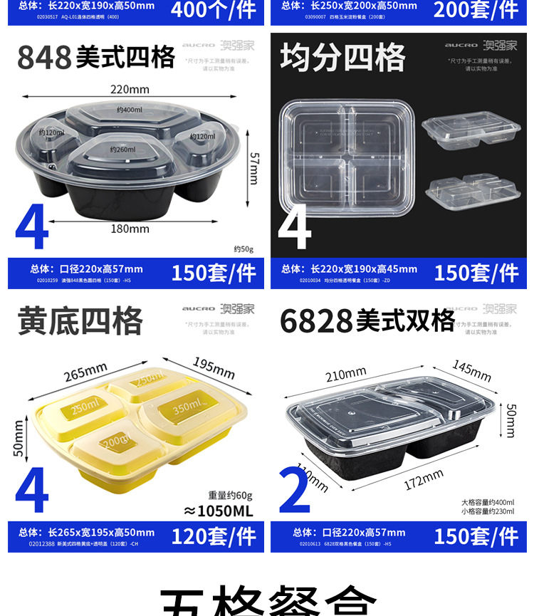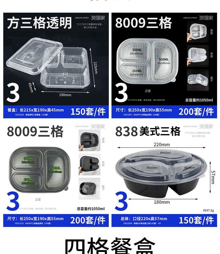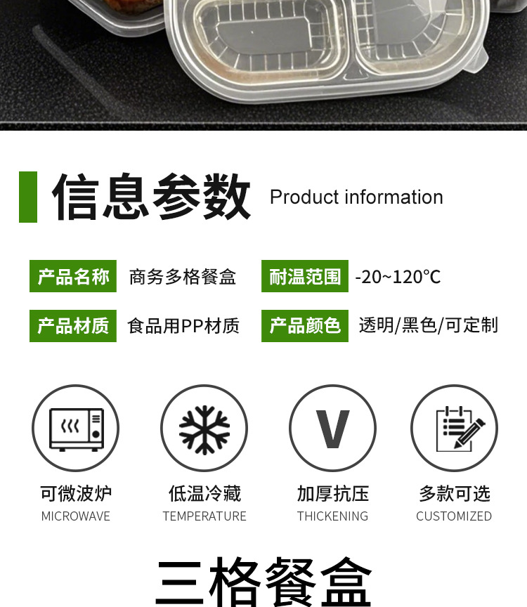 一次性饭盒透明分格餐盒可降解多格外卖打包盒pp快餐盒一次性餐盒