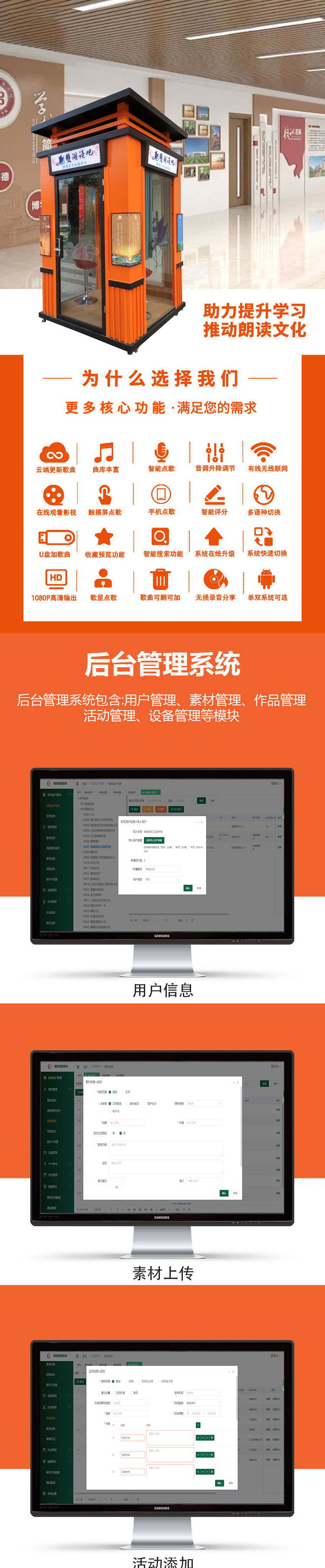 AI数字人朗读亭唱歌机校园党建图书馆朗读亭军营唱吧机迷你KTV房