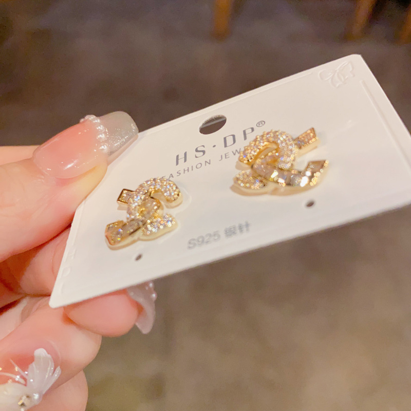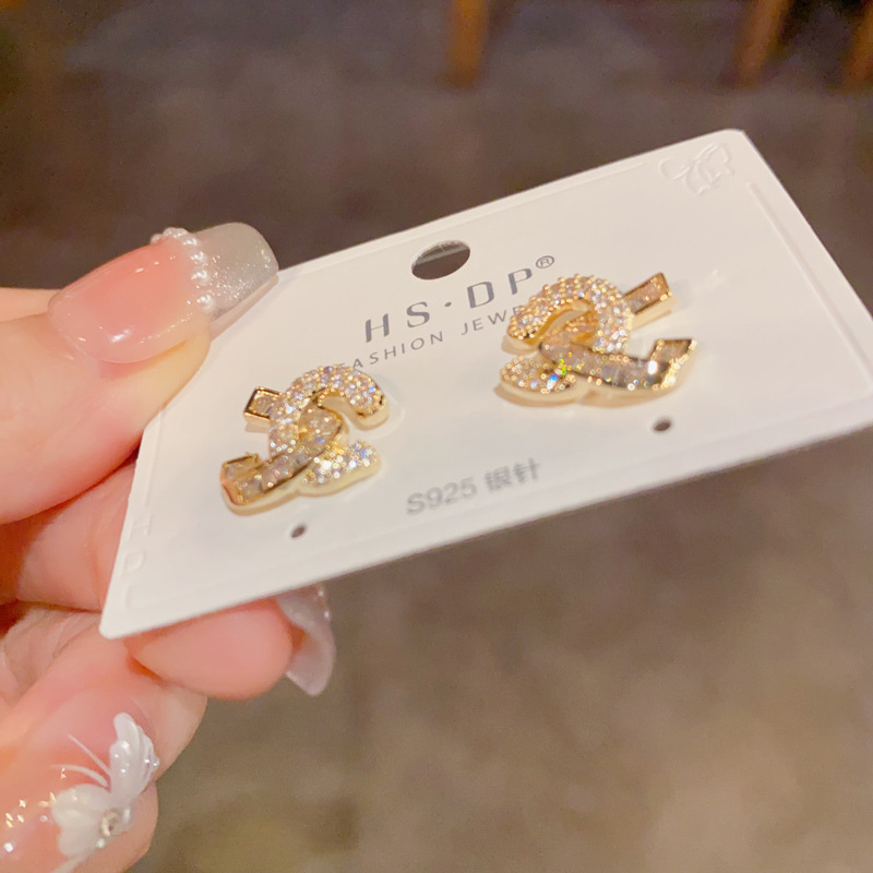 s925银针微镶锆石交叉耳钉气质名媛精致耳环时尚轻奢独特百搭耳饰