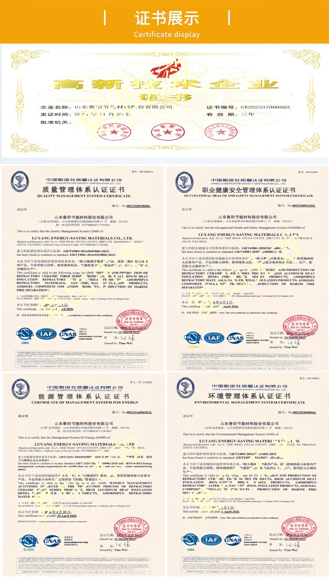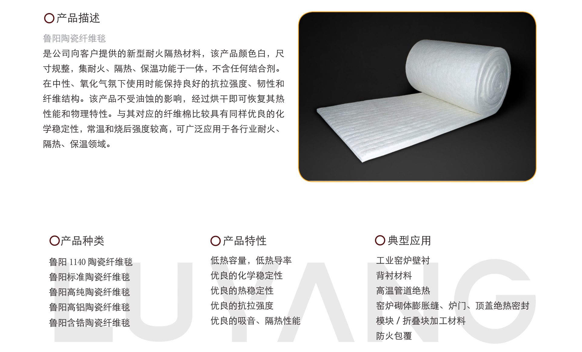 山东鲁阳耐火保温隔热酸铝针刺毯陶瓷纤维毯低渣球抗拉强度杂质低