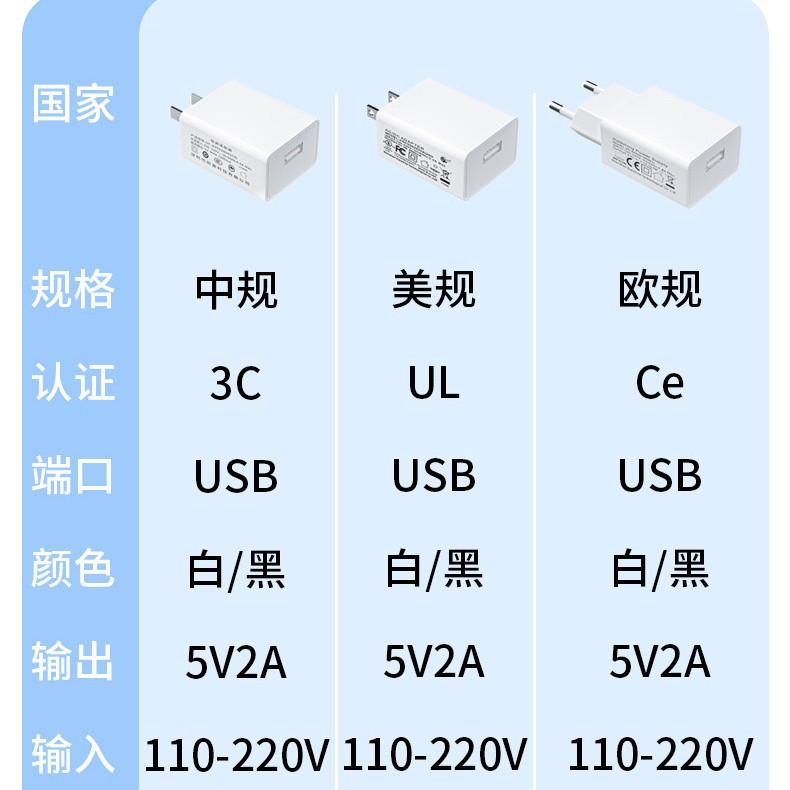 定制5V2A电源适配器中美欧USB口小家电电源适配器5V1A手机充电头