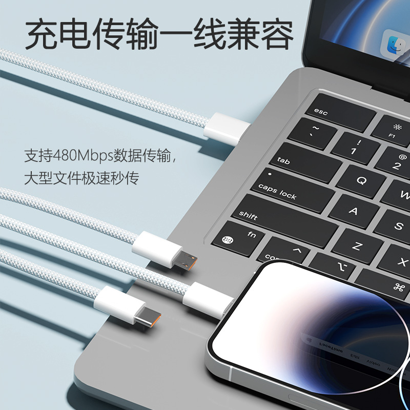 三合一快充数据线6A闪充一拖三100W适用苹果安卓华为小米OPPO手机