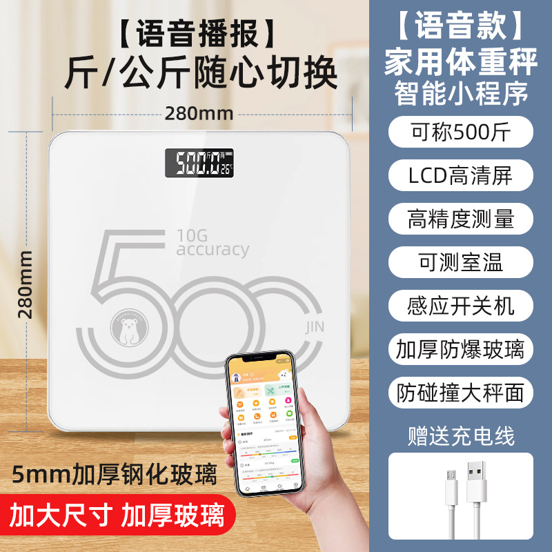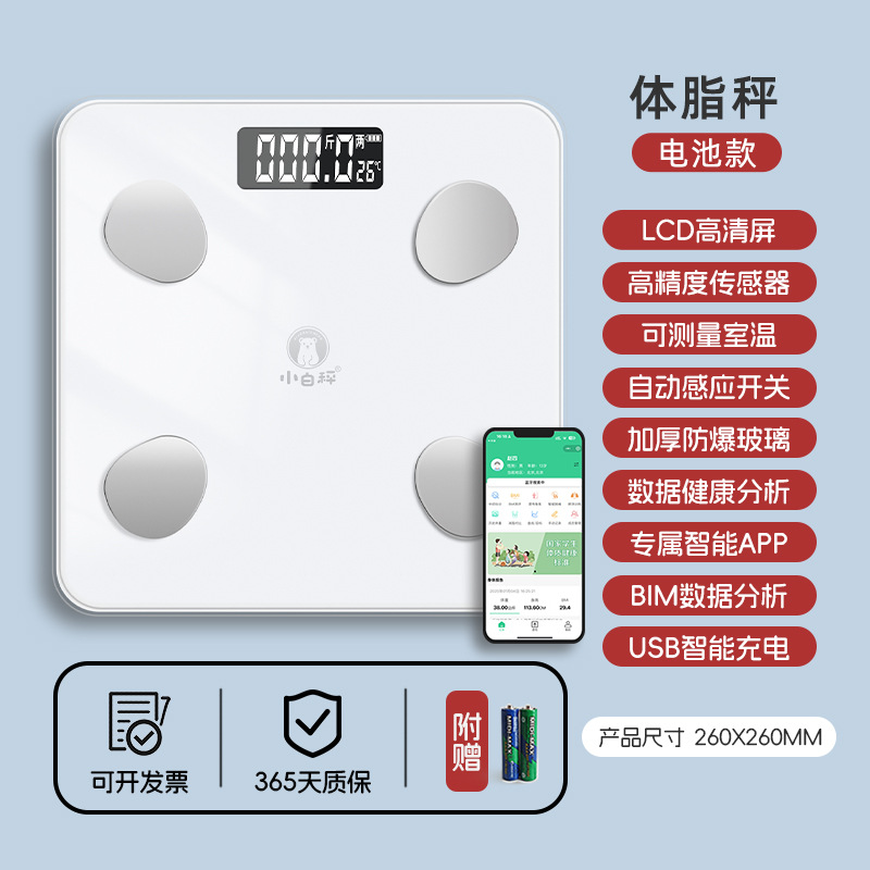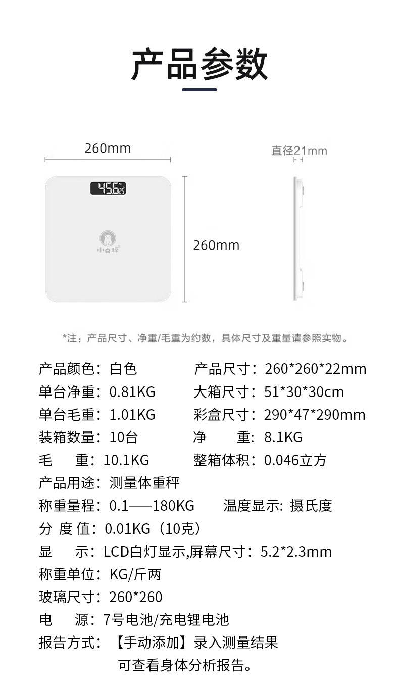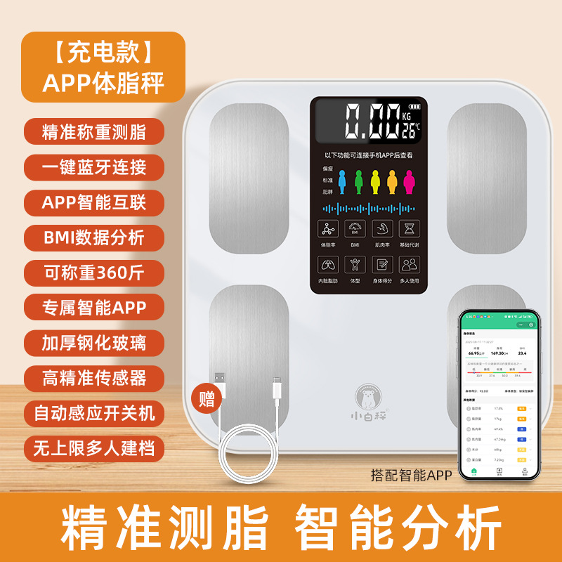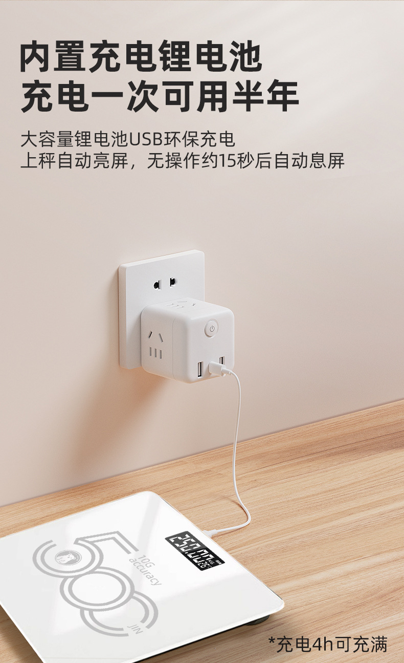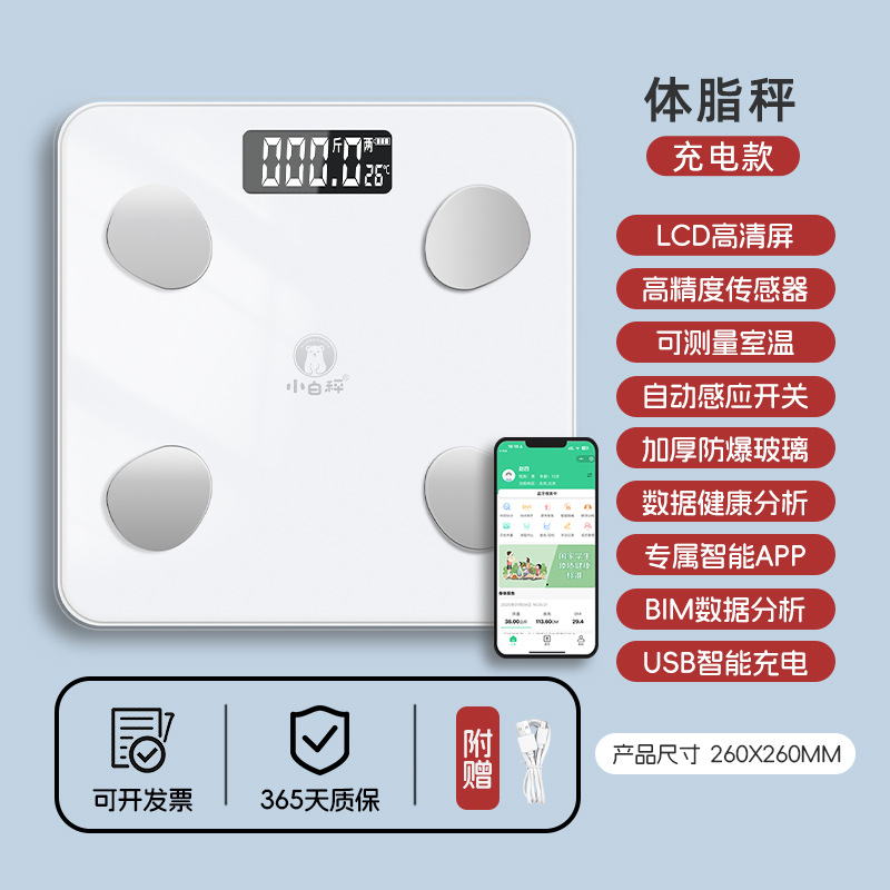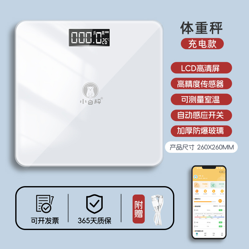跨境小白秤体重秤家用称重电子称减重人体秤充电款体重称代发批发