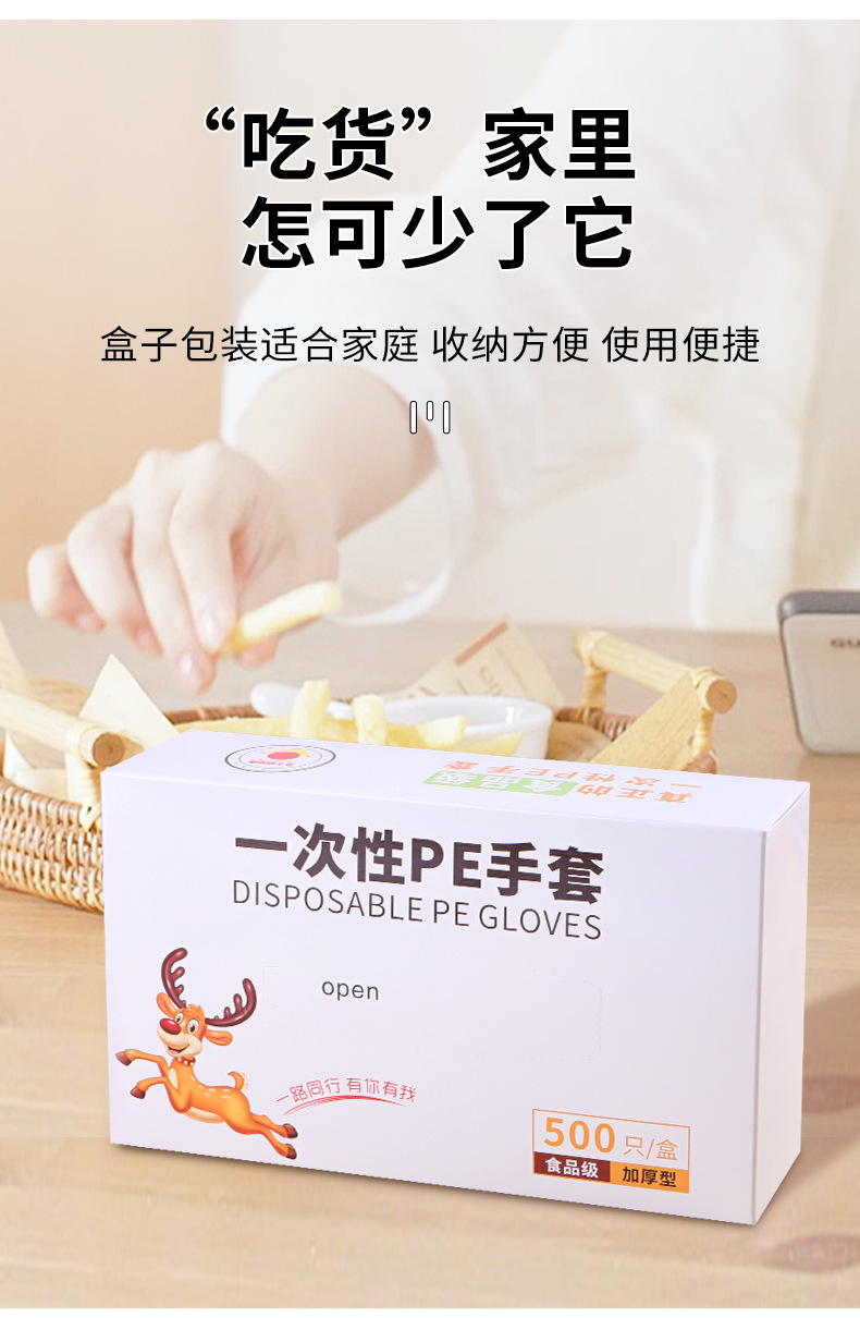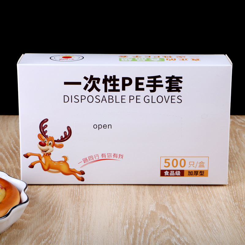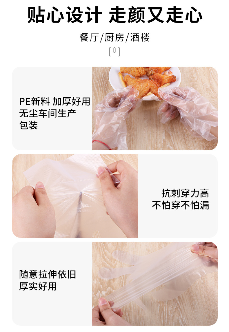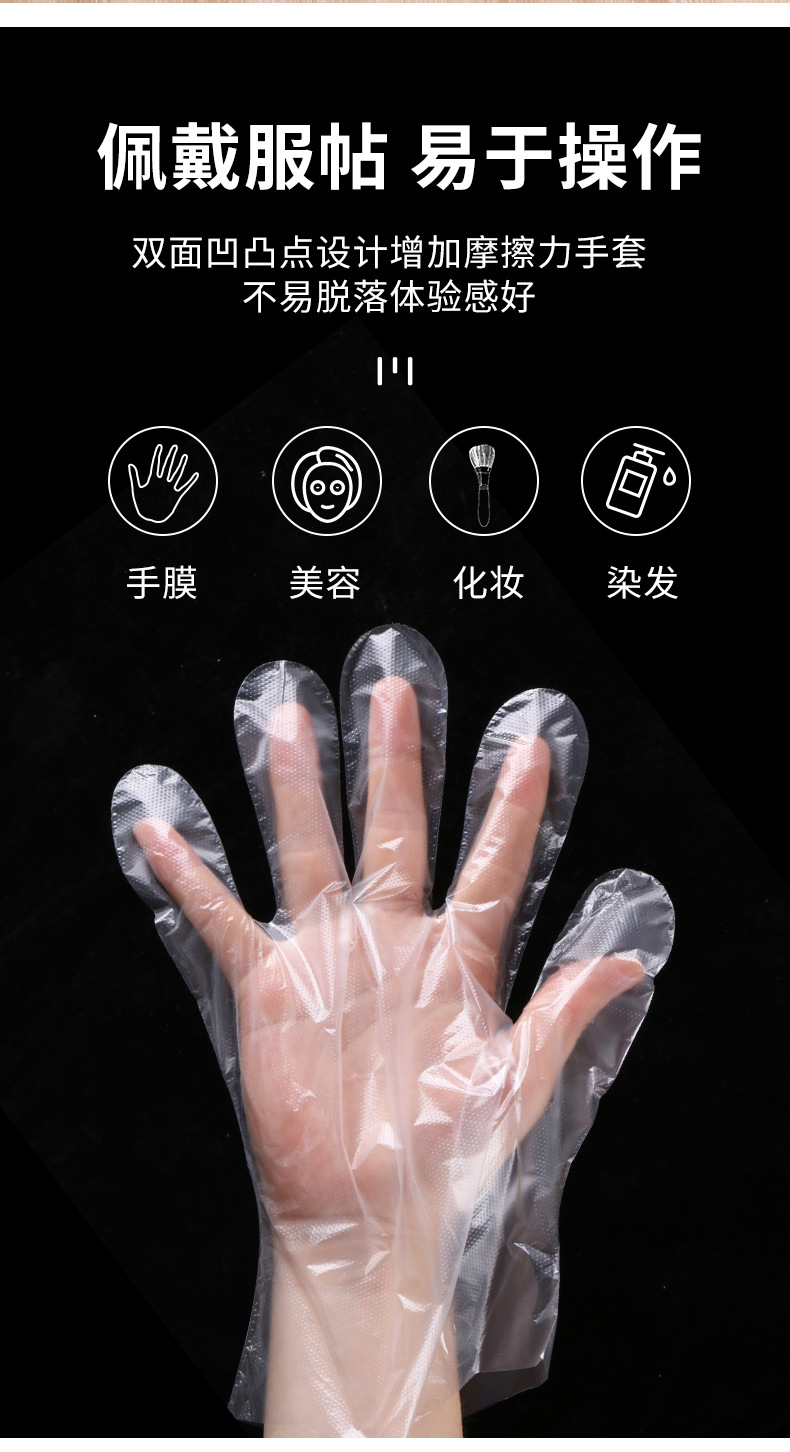 一次性手套盒装抽取式餐饮食品级塑料透明薄膜家用厨房500只防滑