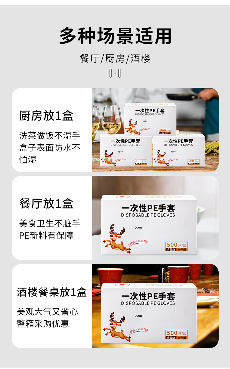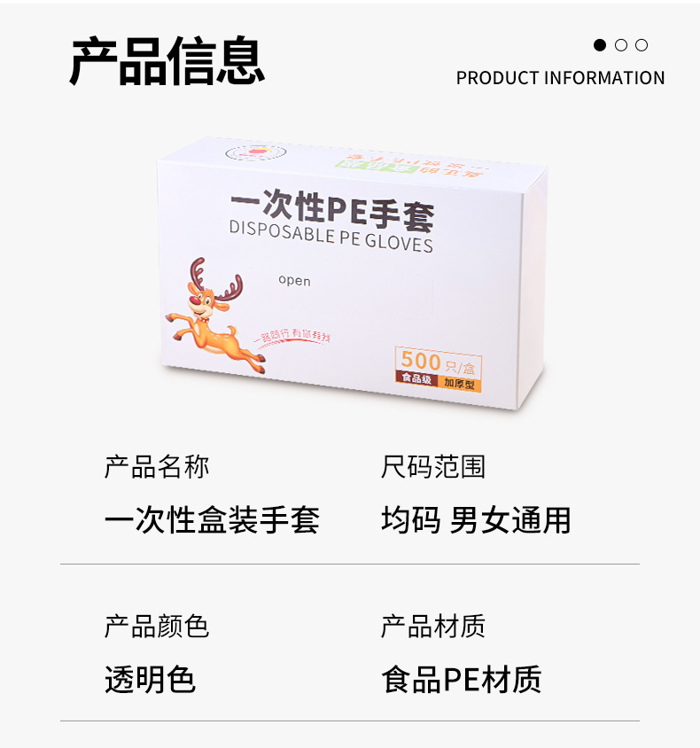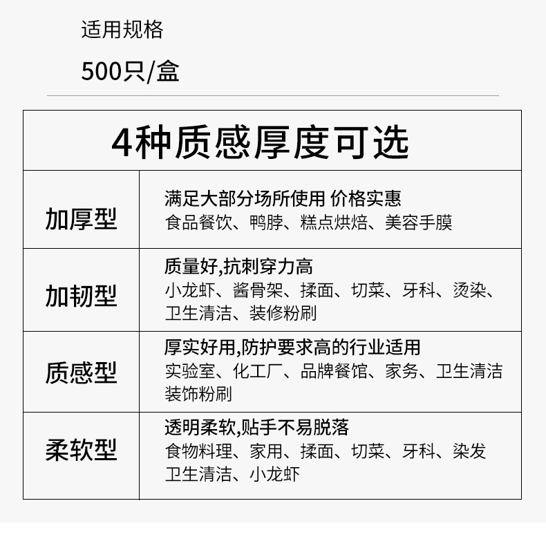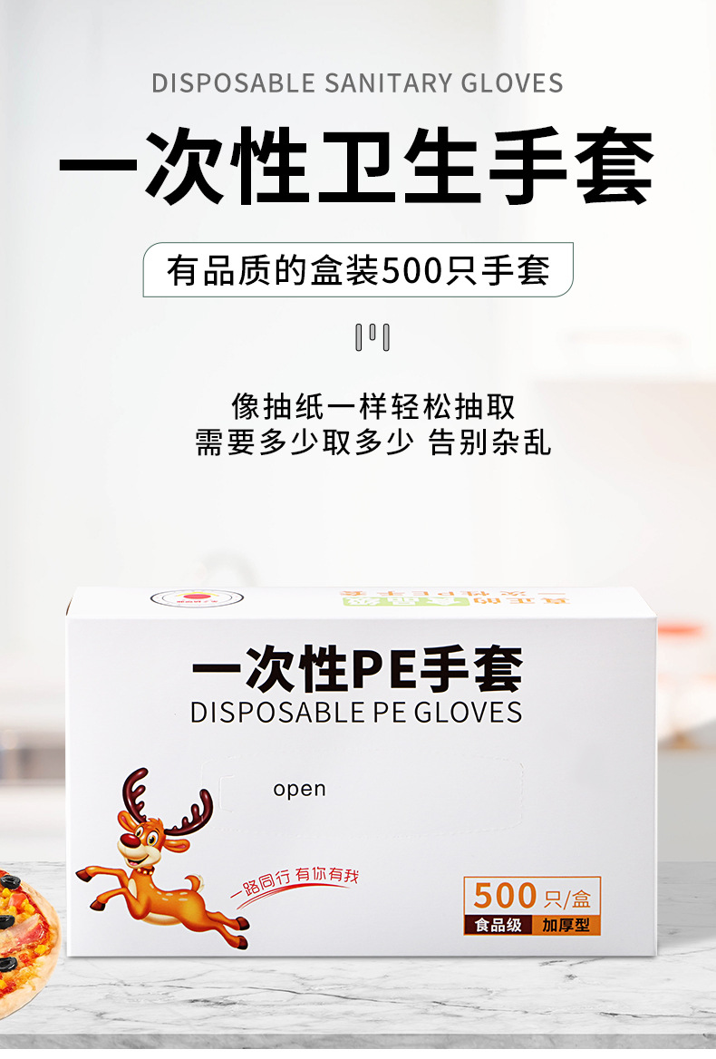 一次性手套盒装抽取式餐饮食品级塑料透明薄膜家用厨房500只防滑