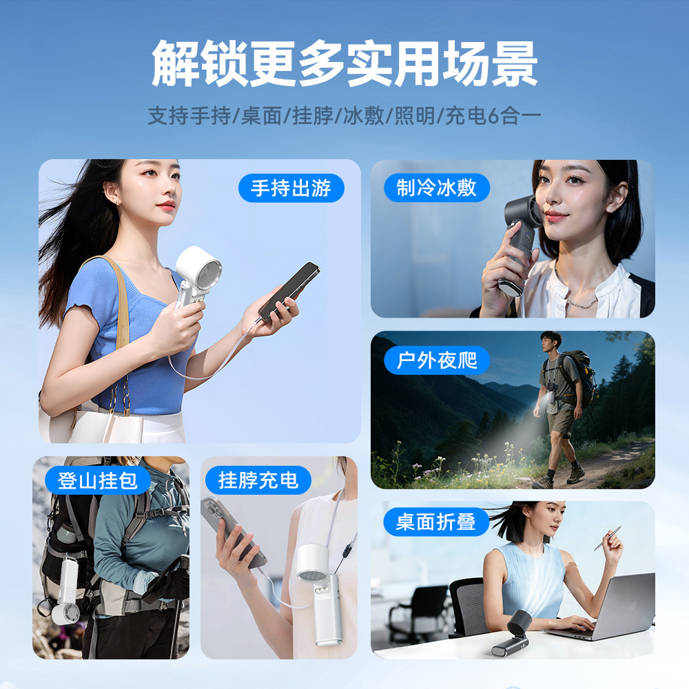 2026新款高速手持风扇冰敷折叠便携式户外照明USB迷你小风扇快充