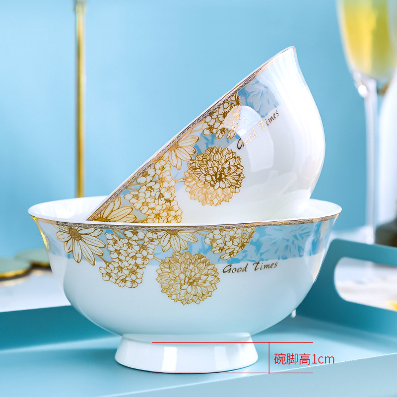 餐具套装28/56/60头现代轻奢碗盘景德镇陶瓷餐具金边碗碟套装家用
