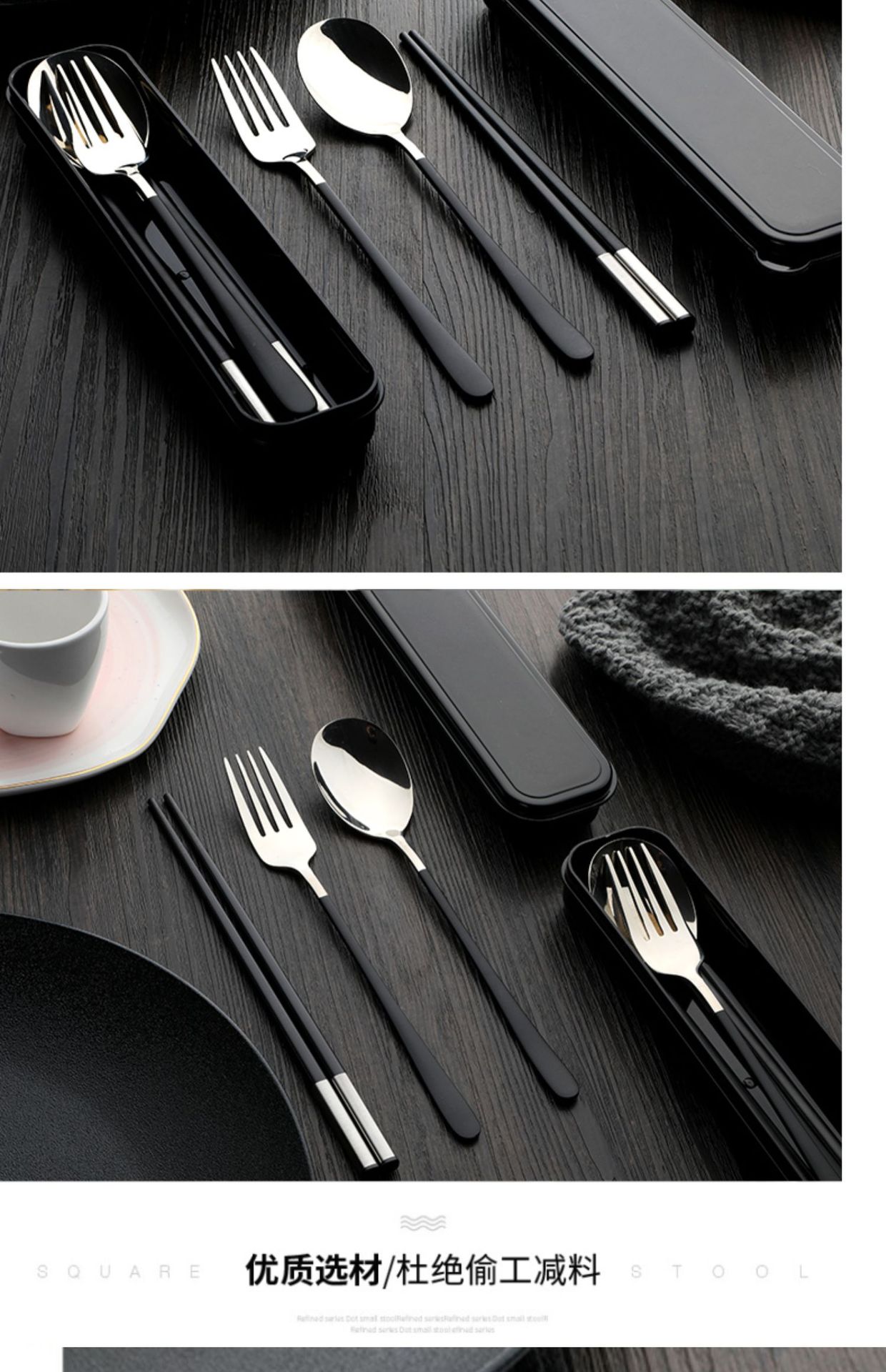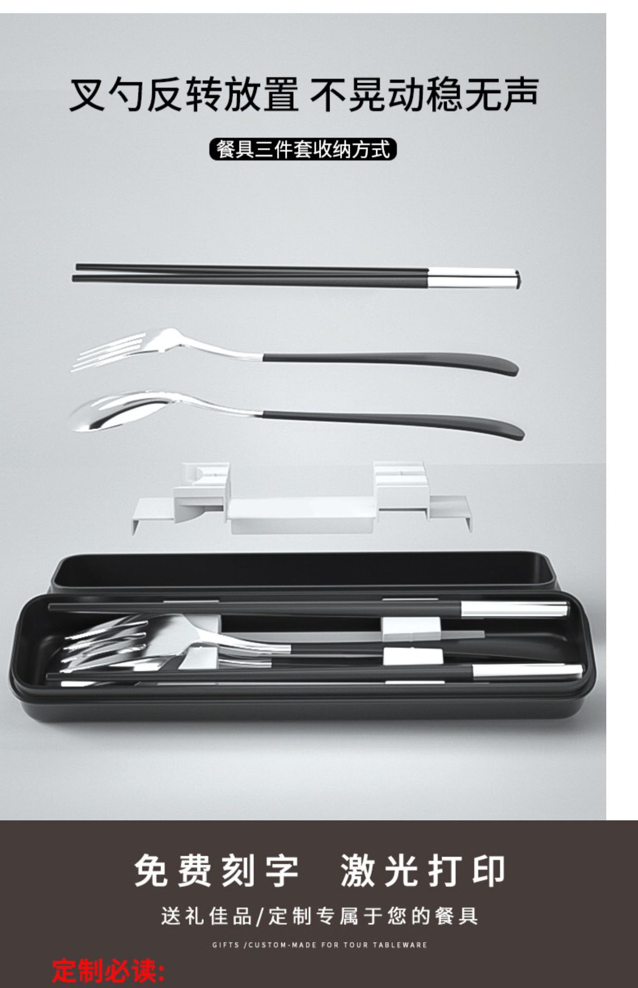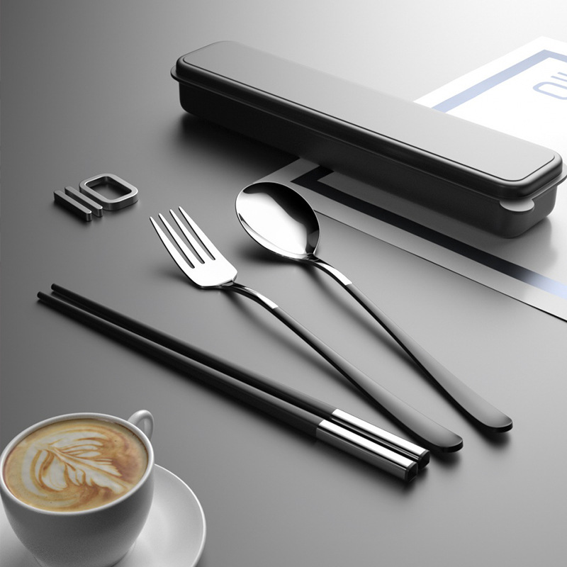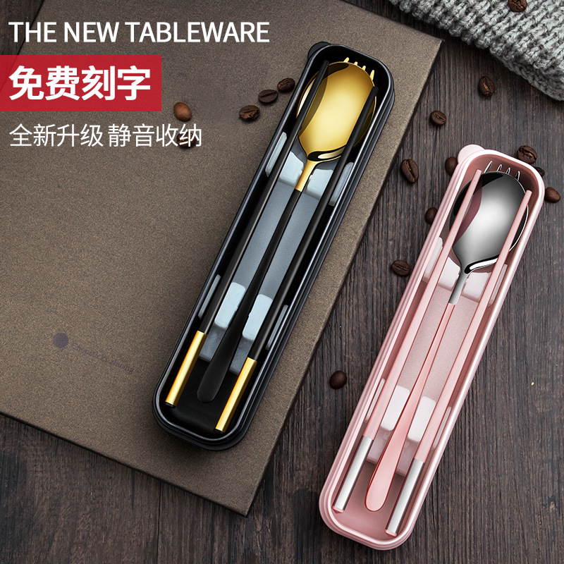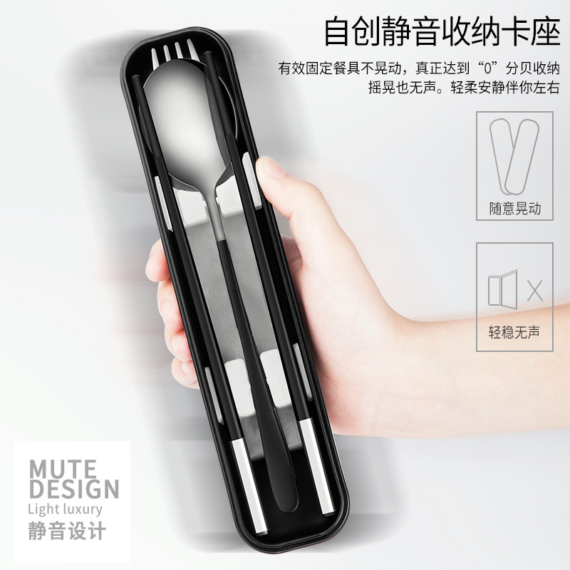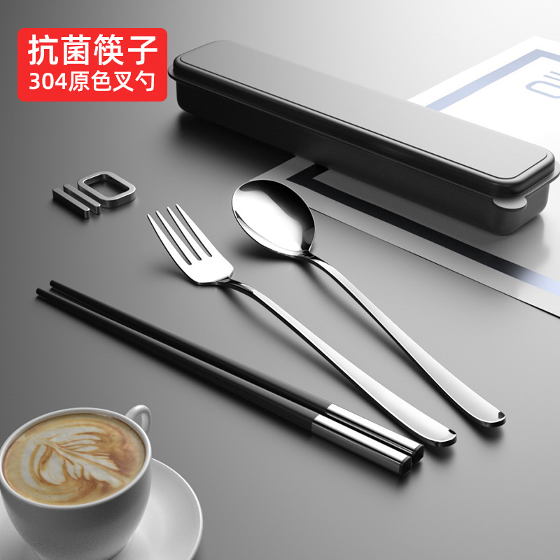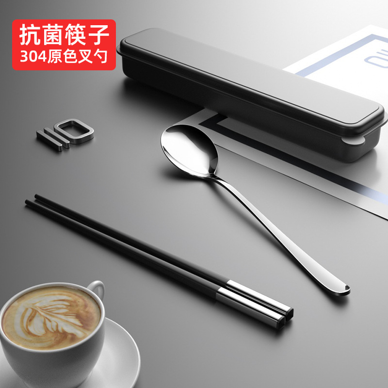 筷子勺子套装便携式学生上学食单人装一人用三件套高颜值餐具
