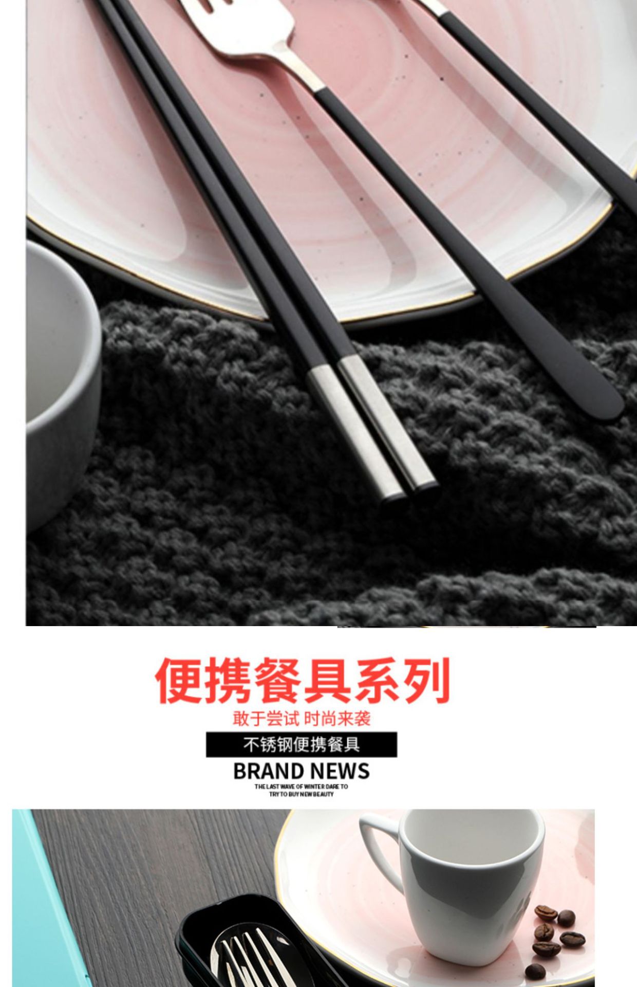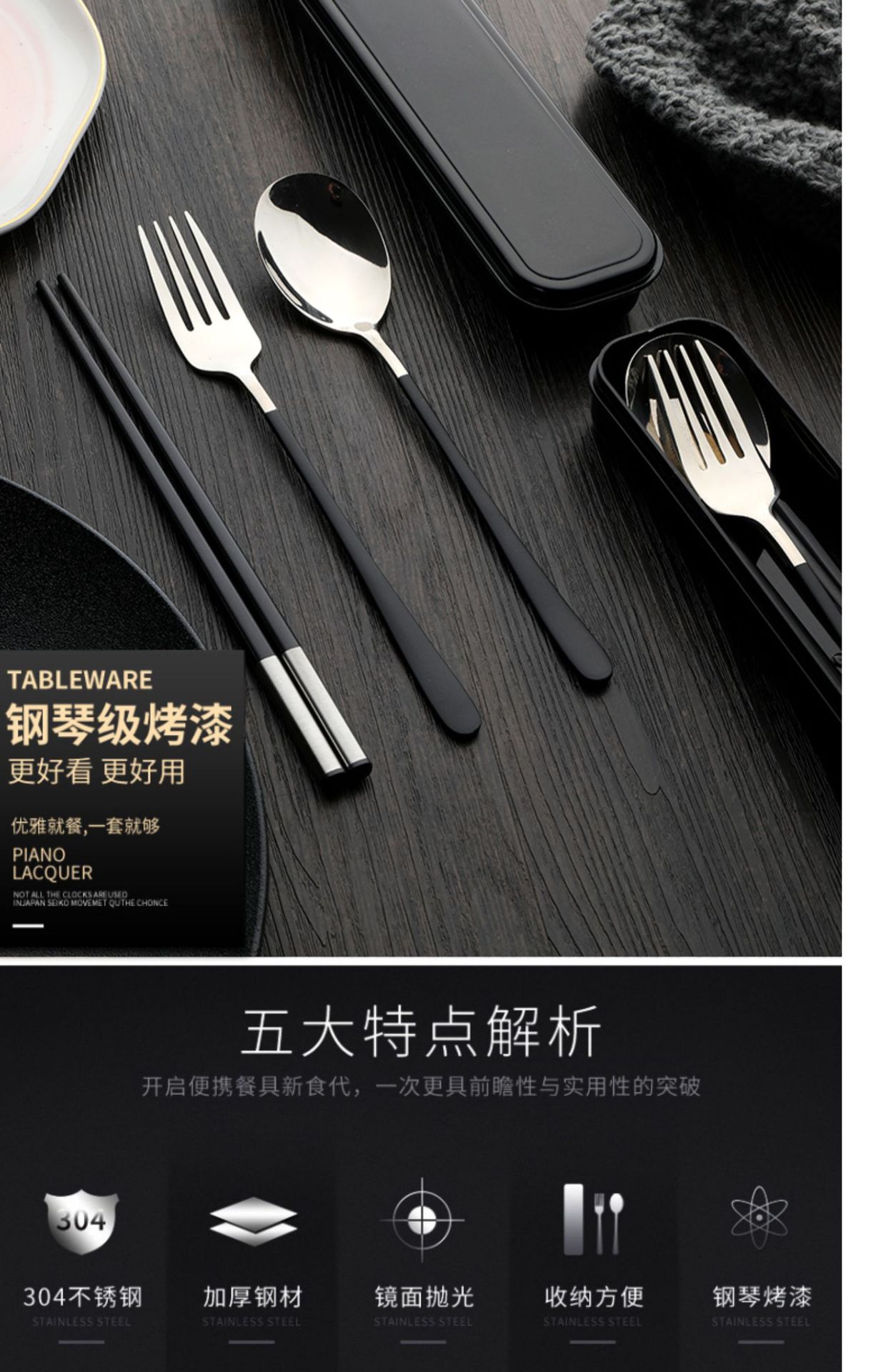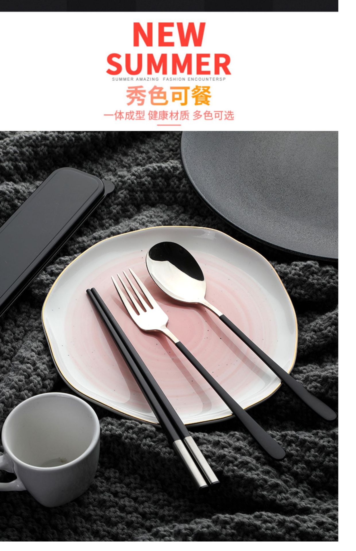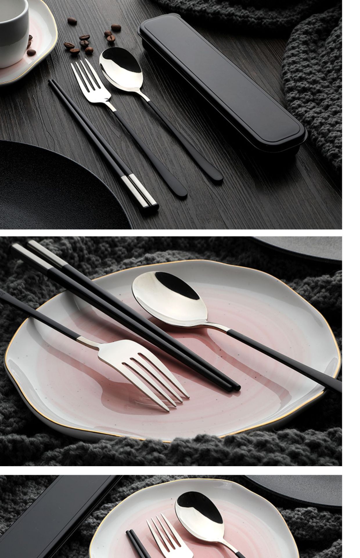 筷子勺子套装便携式学生上学食单人装一人用三件套高颜值餐具