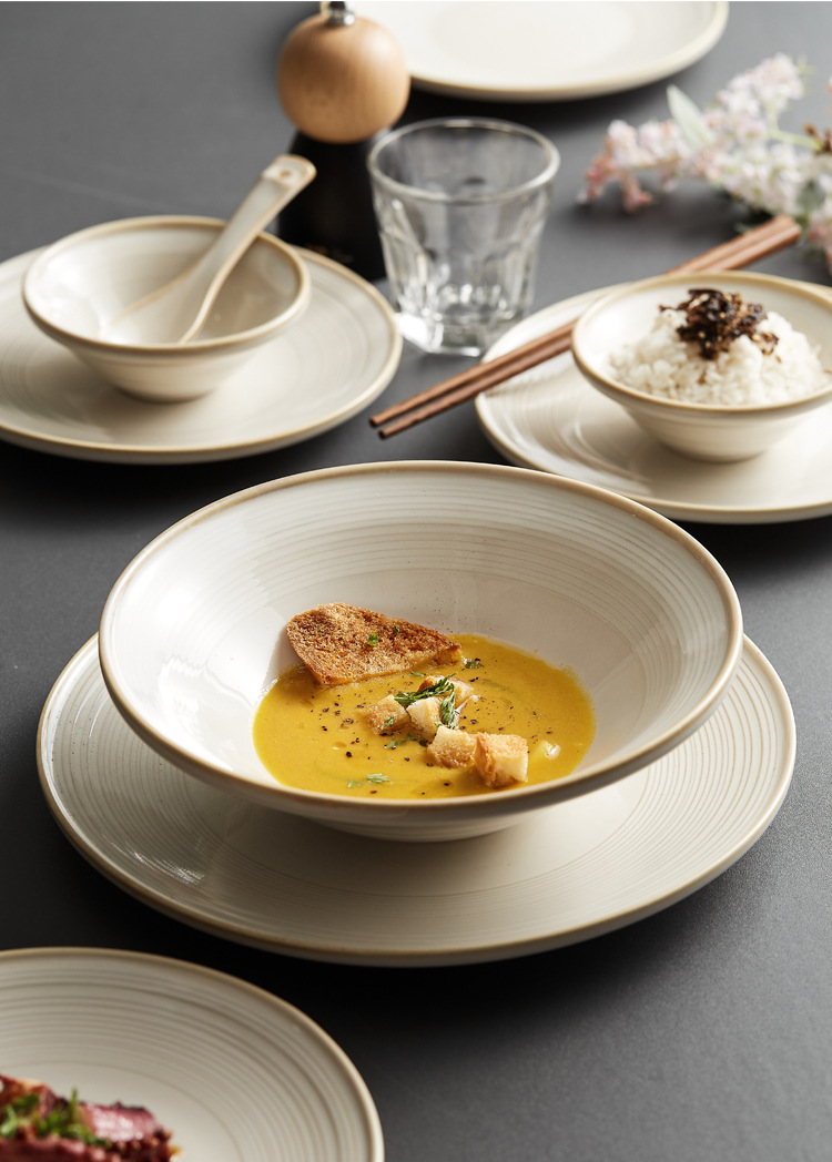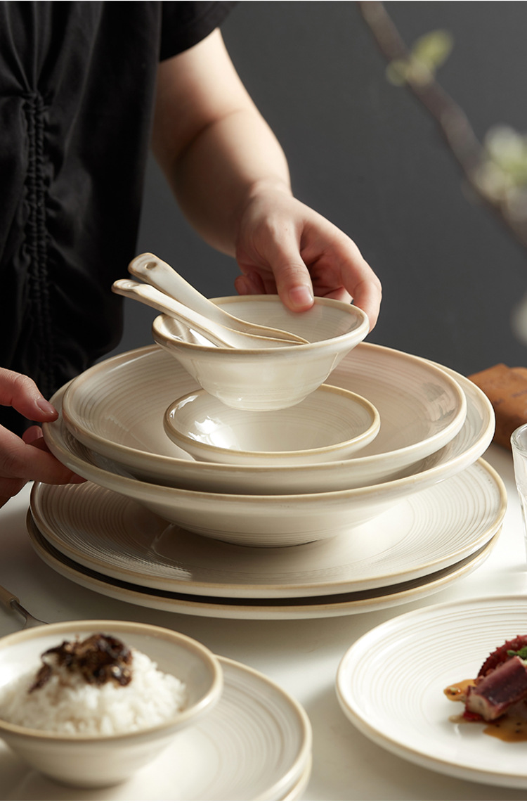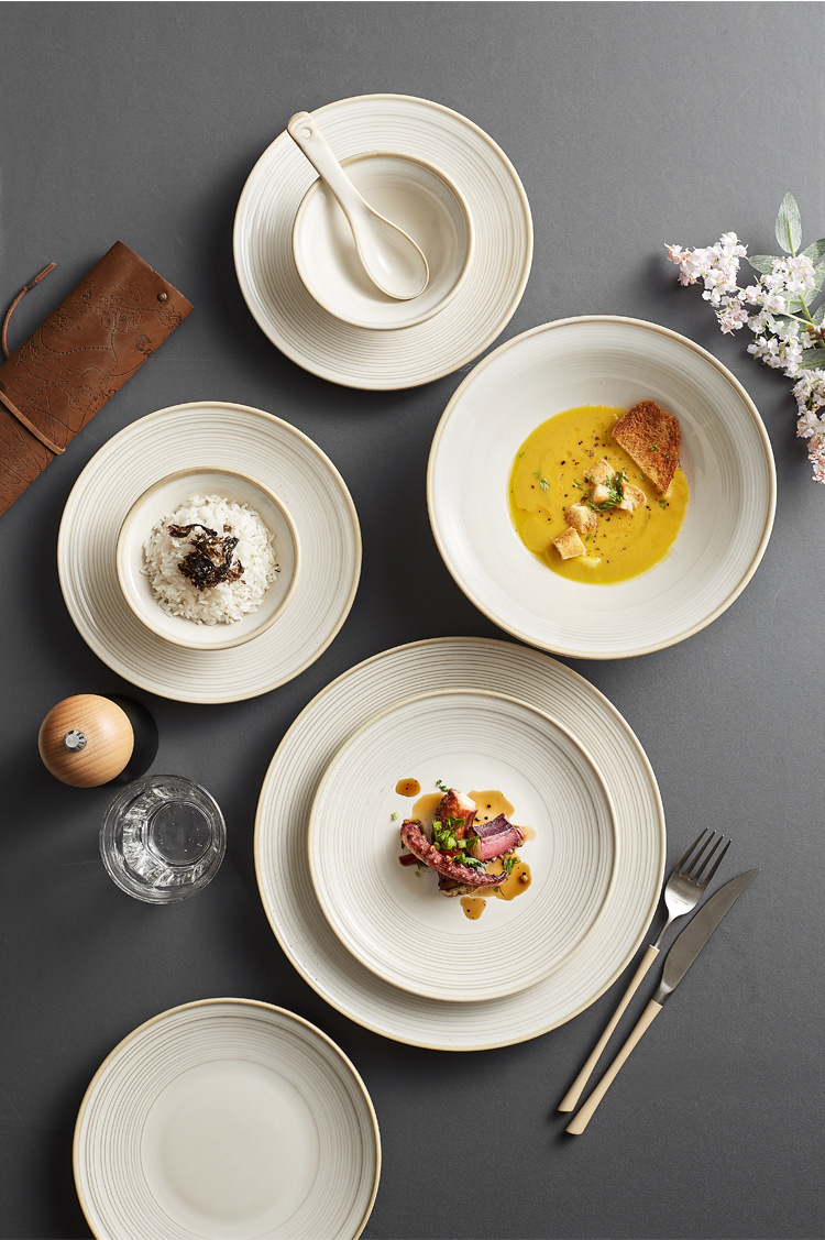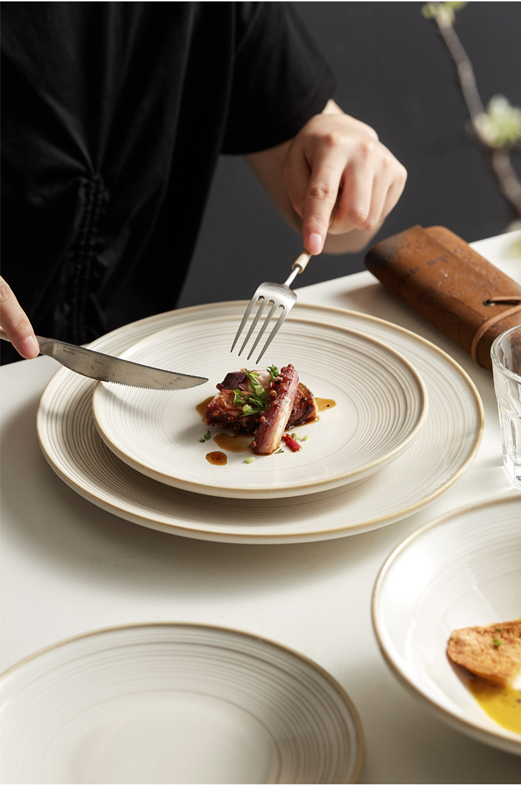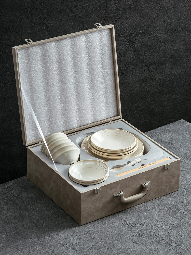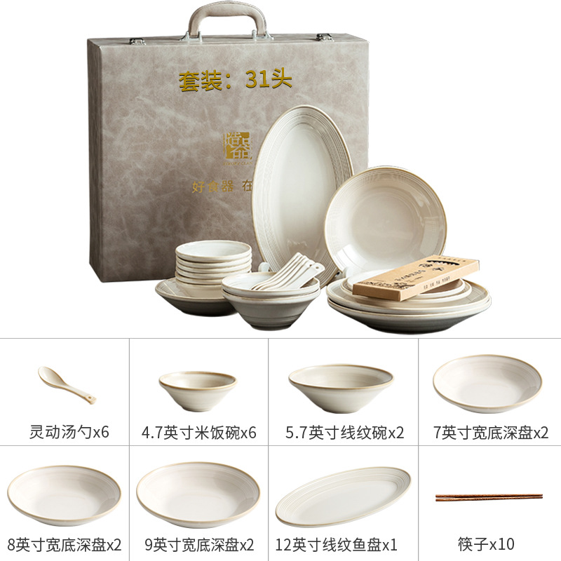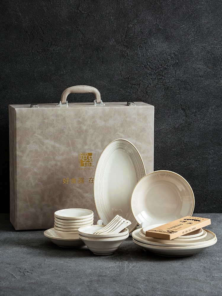 日式轻奢线纹陶瓷餐具礼盒现代简约乔迁新居送礼碗盘组合餐具批发