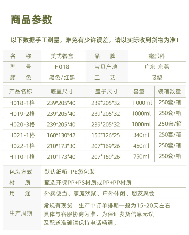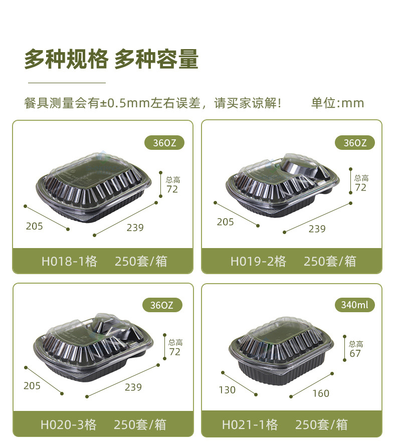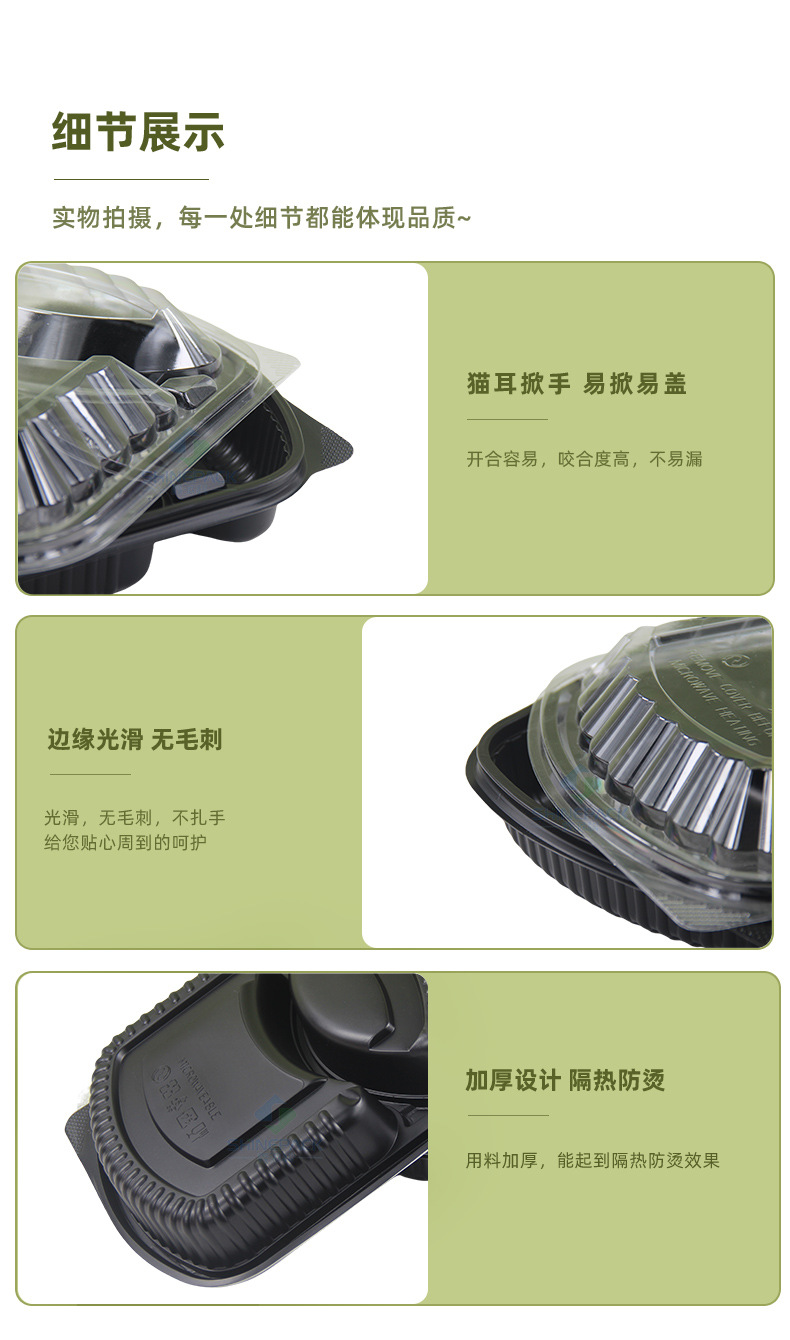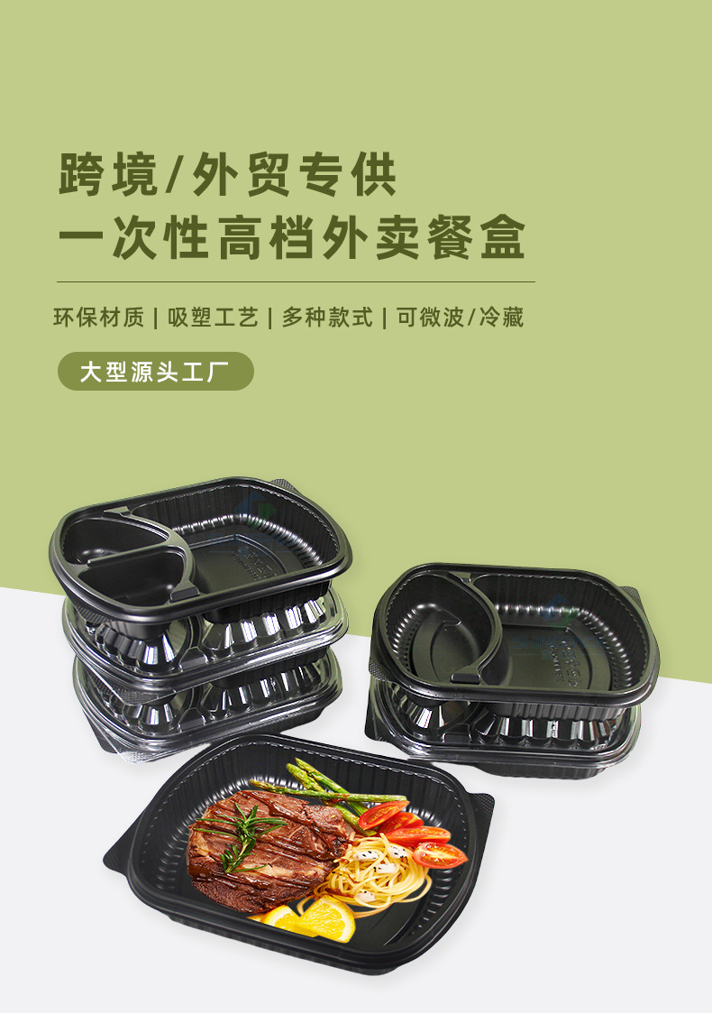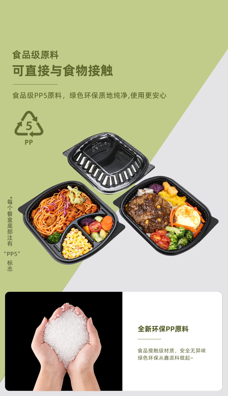 一次性打包盒美式两格三格塑料饭盒外卖餐盒可微波炉水果切盒商用