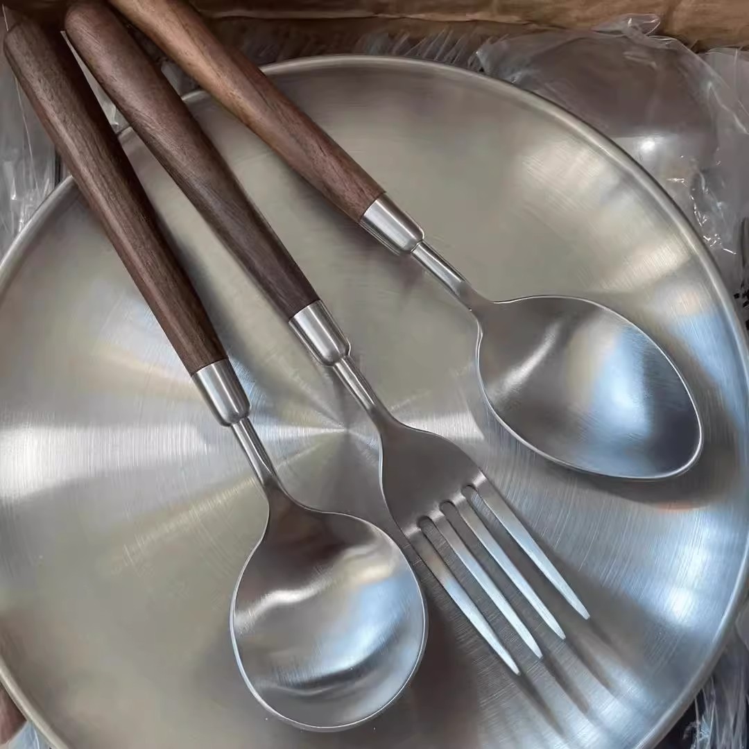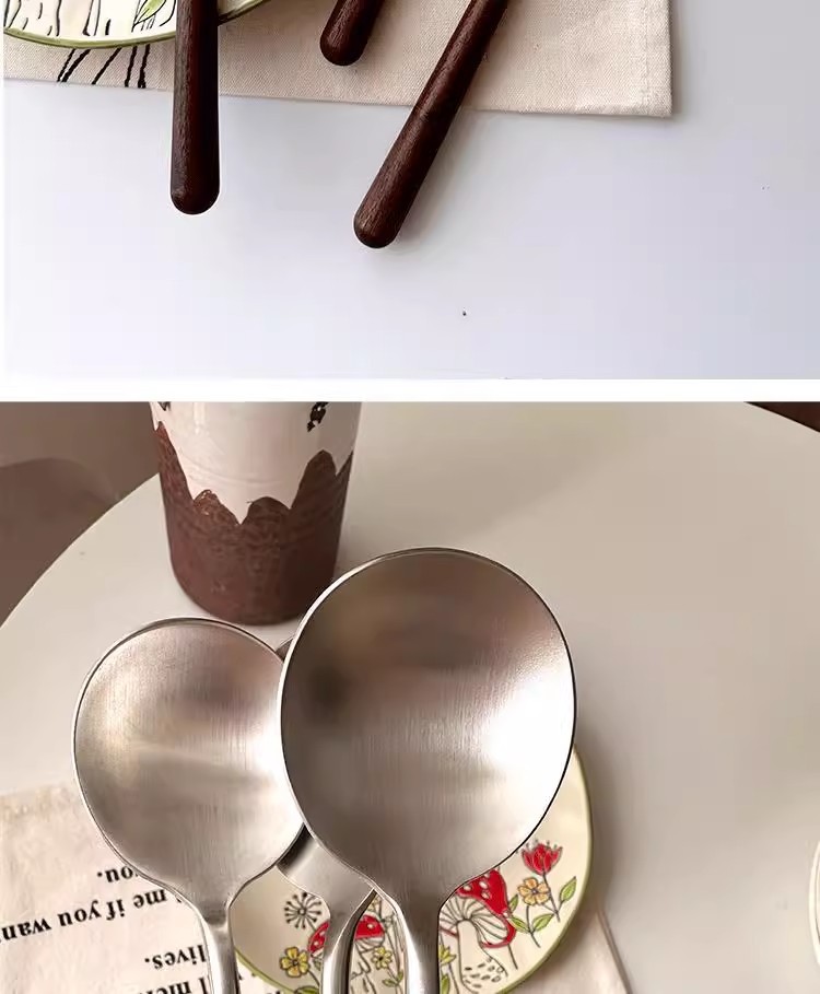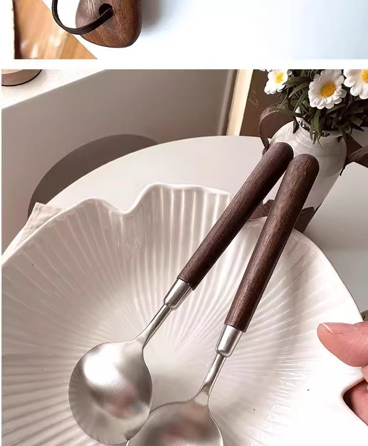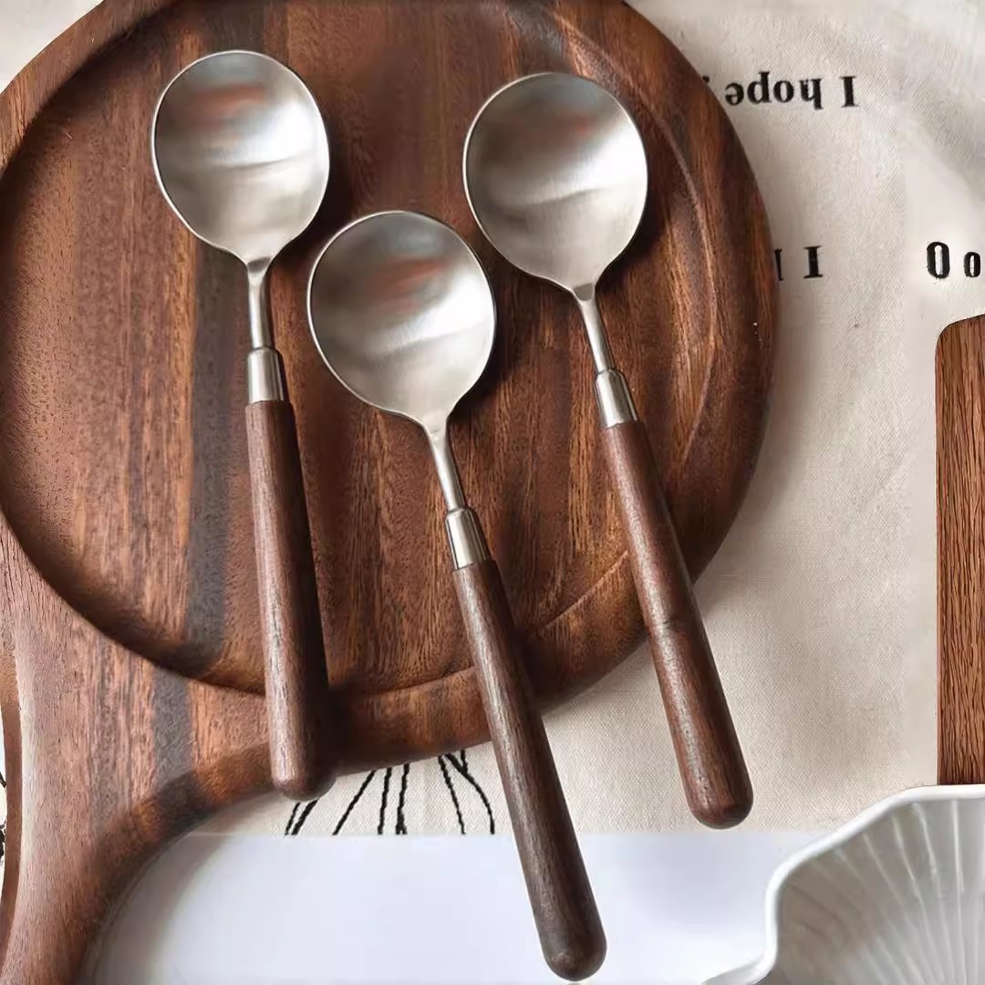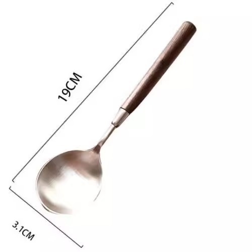新款仿胡桃木纹木柄勺西餐勺不锈钢圆勺汤勺吃饭勺汤勺汤更大勺