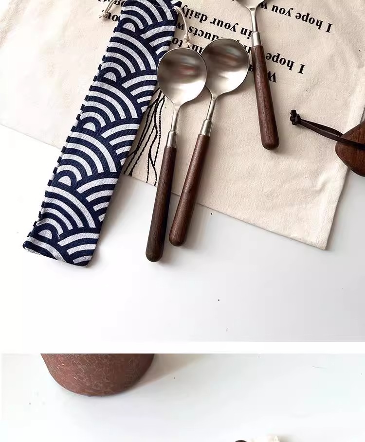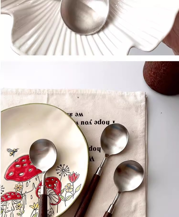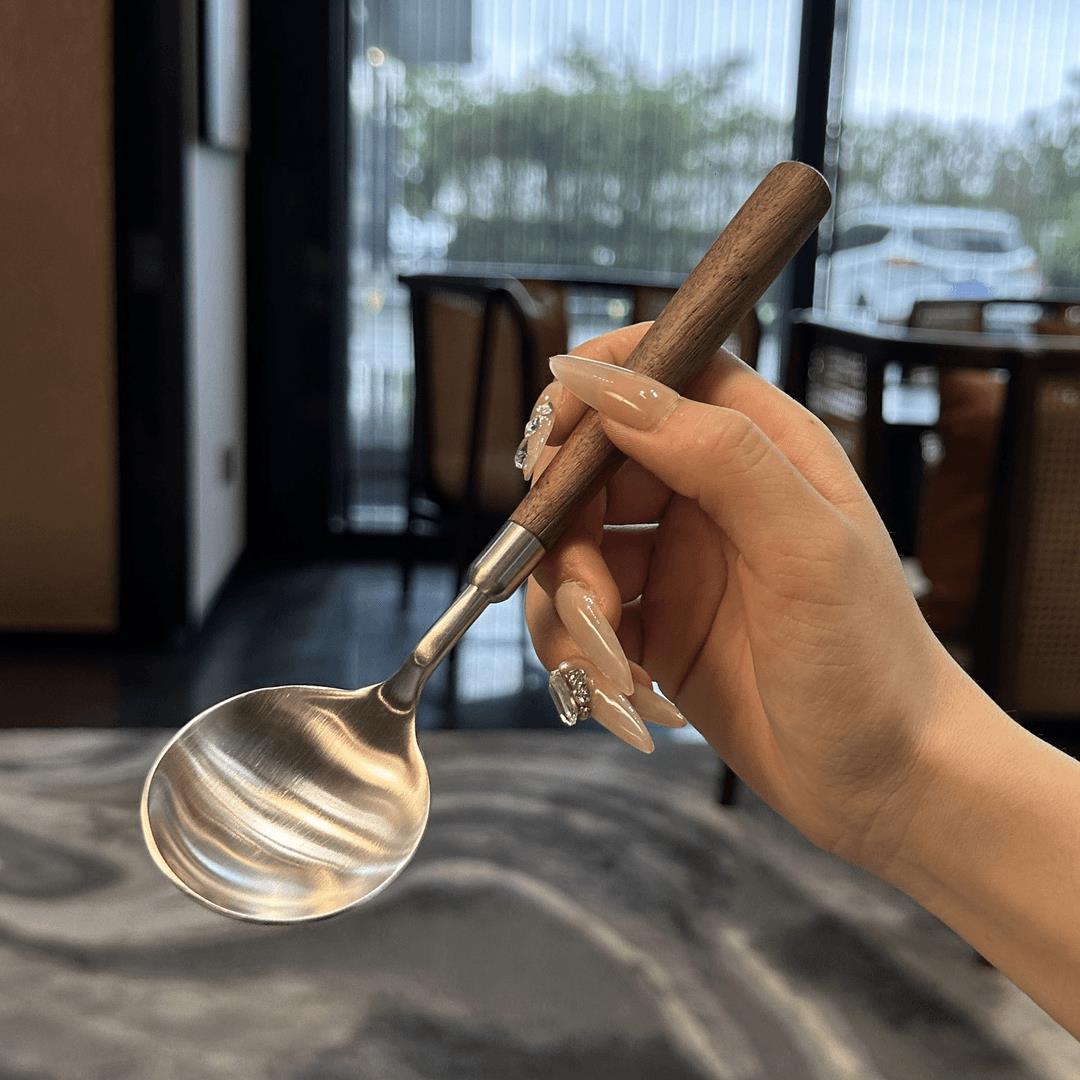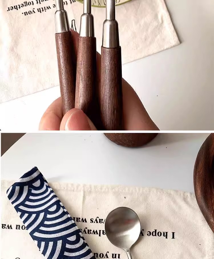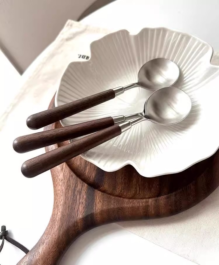 新款仿胡桃木纹木柄勺西餐勺不锈钢圆勺汤勺吃饭勺汤勺汤更大勺