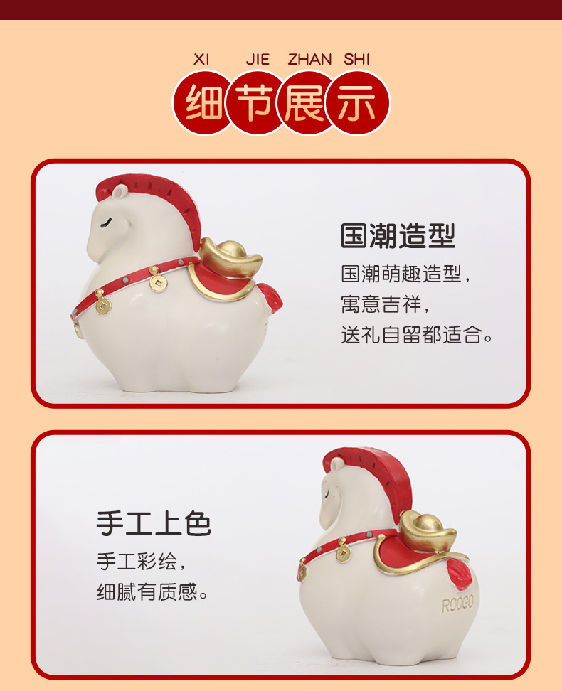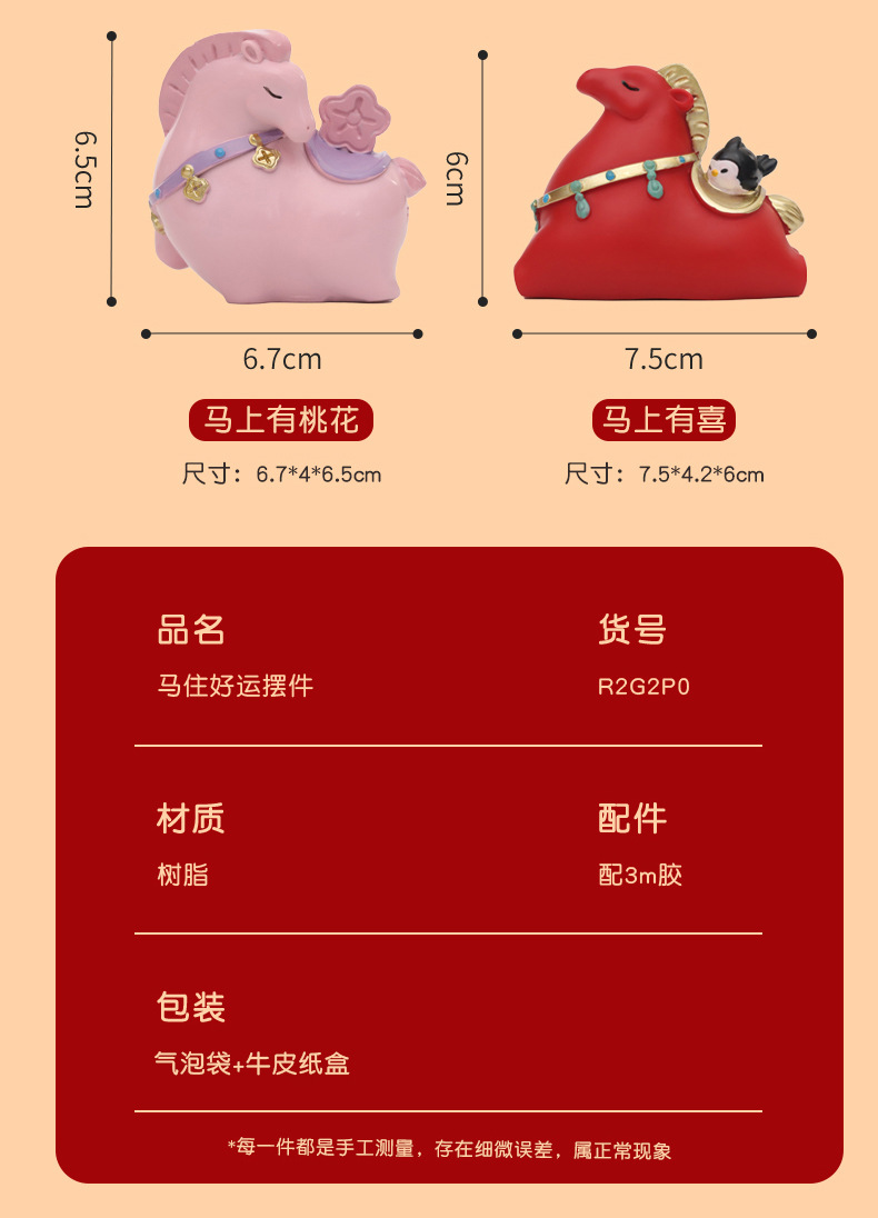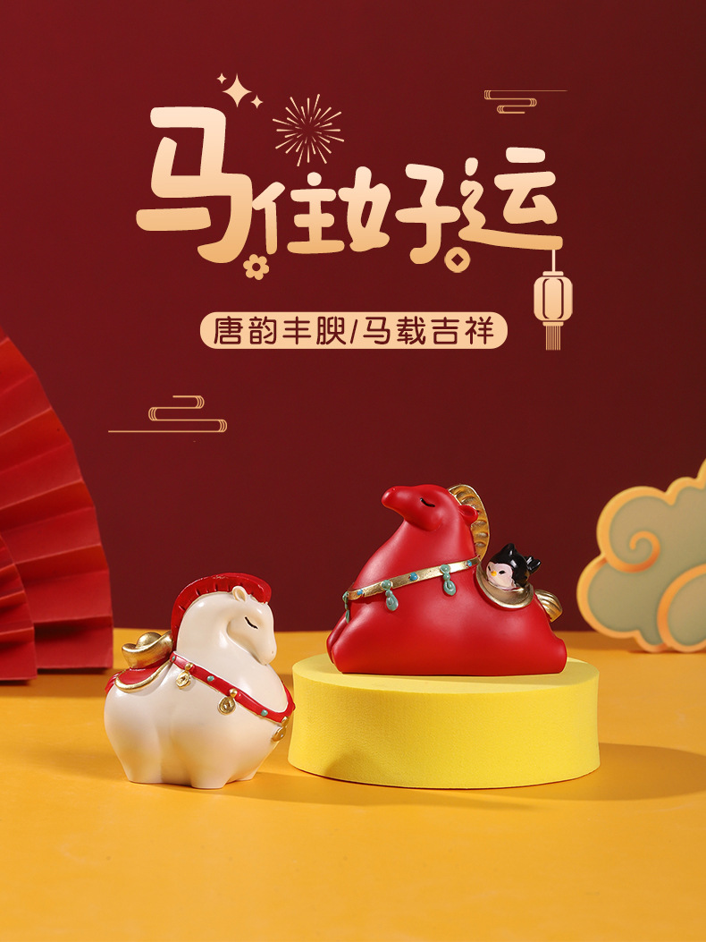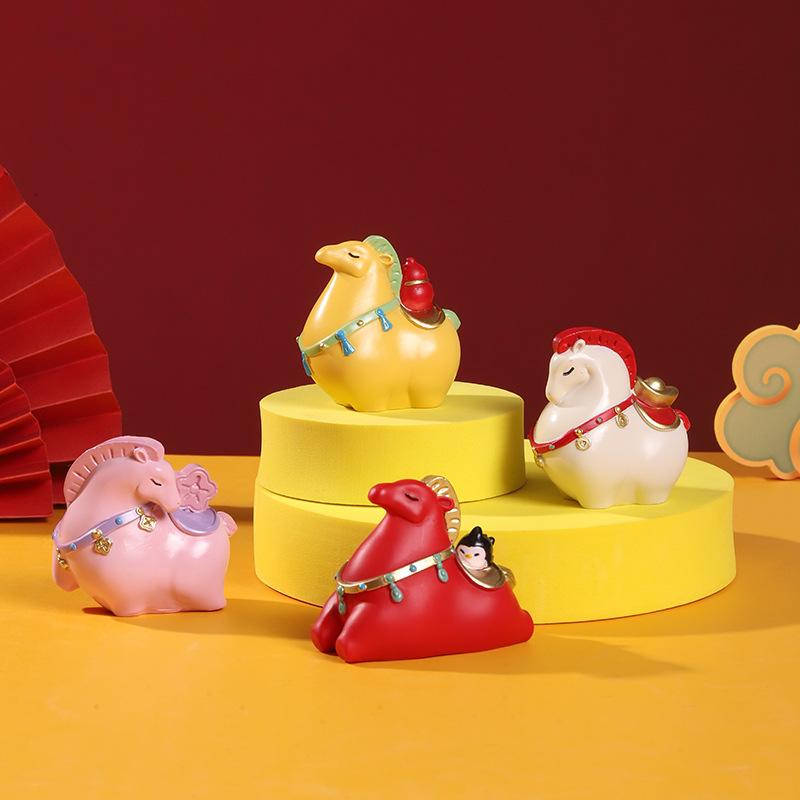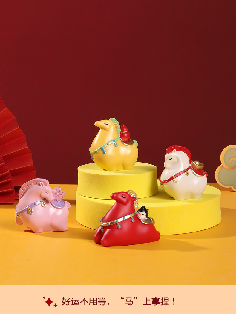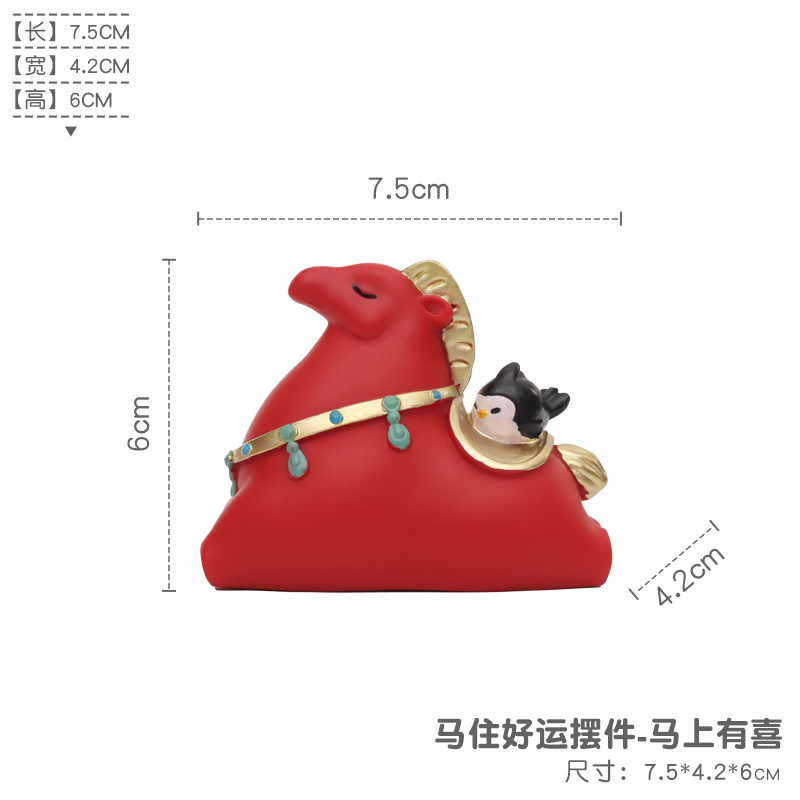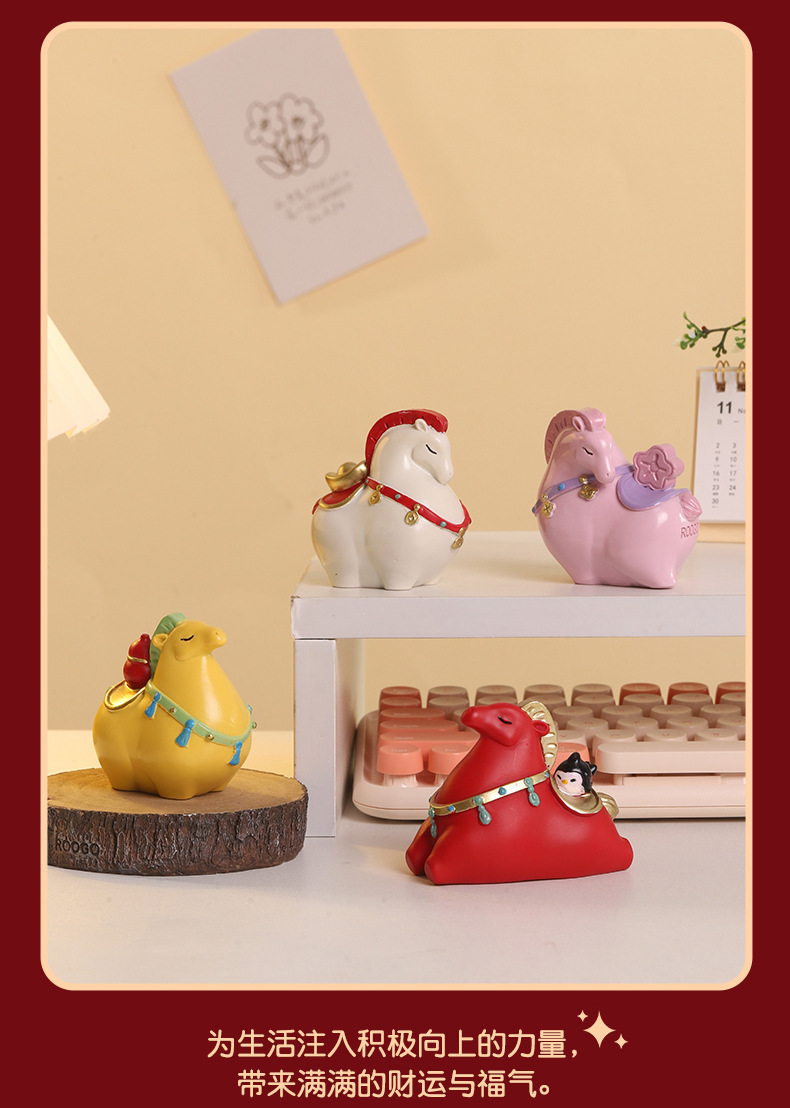 生肖马树脂小摆件马年吉祥物车载桌面装饰摆件新年马公仔礼物现货