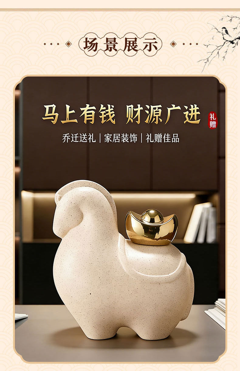 2026马上有钱摆件客厅轻奢高档吉祥物装饰品马年新年乔迁新居礼品