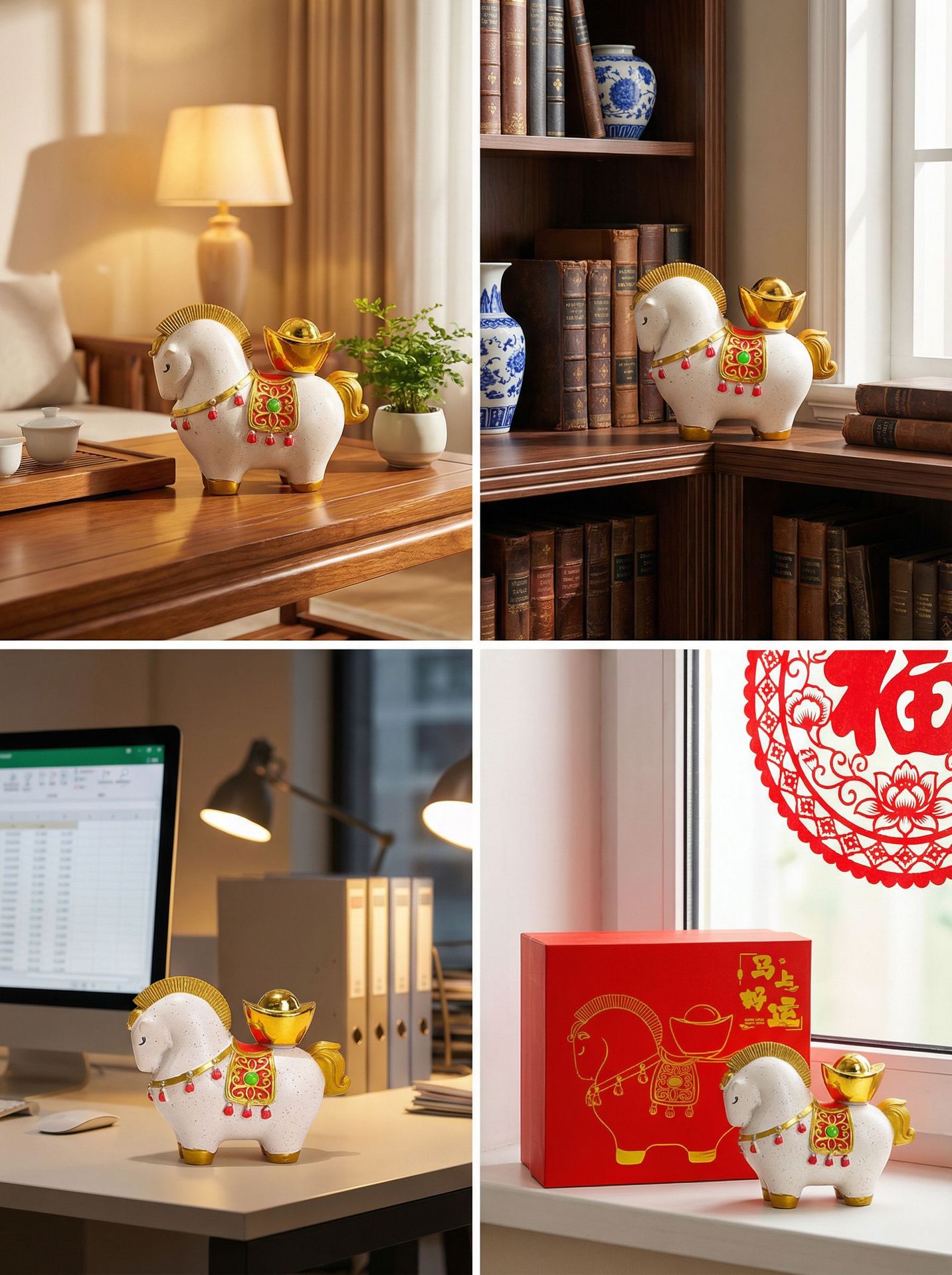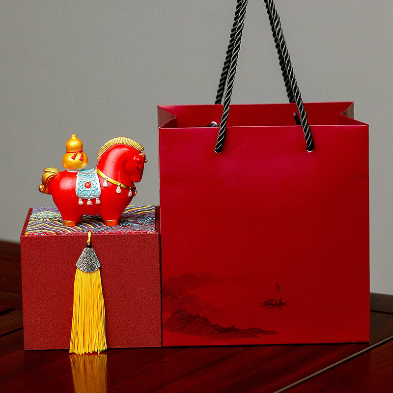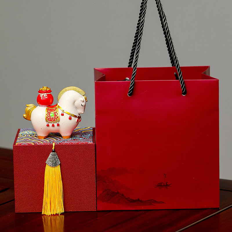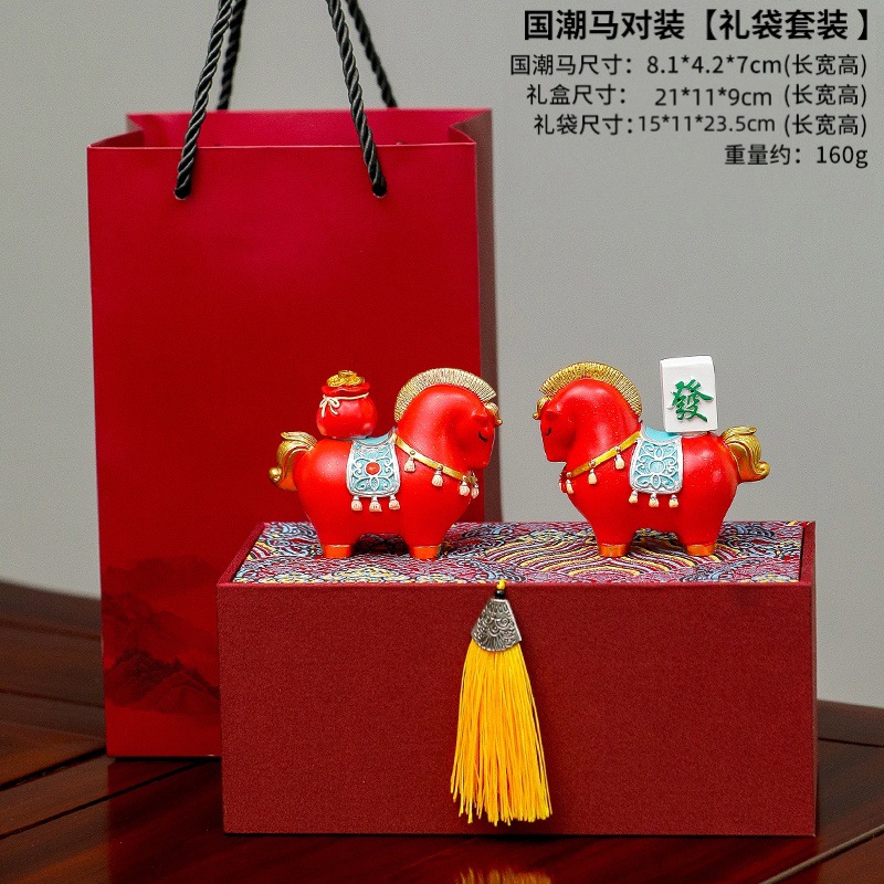 新年马年摆件国潮礼品公司年会礼品马上有钱摆件工艺品创意摆件
