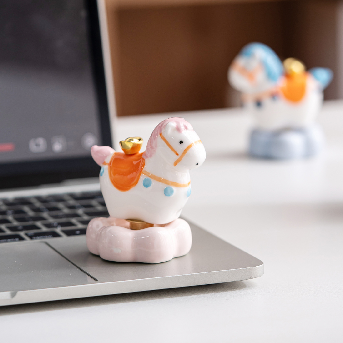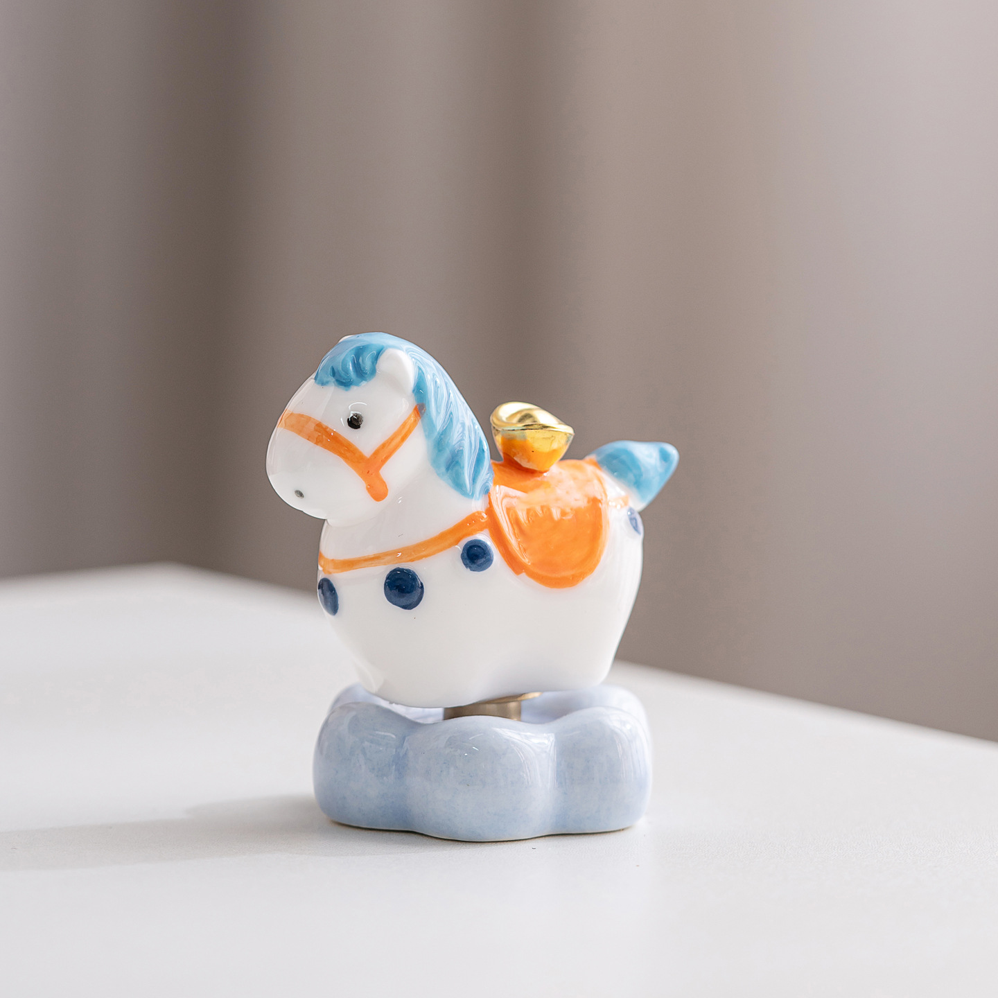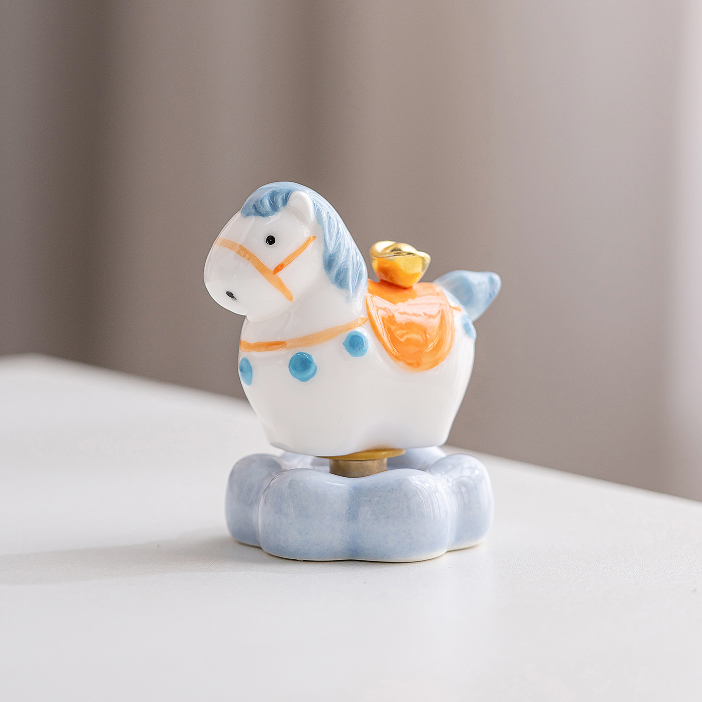 景德镇创意唐马小摆件新年伴手礼可爱陶瓷小马转转乐摆件马年礼物