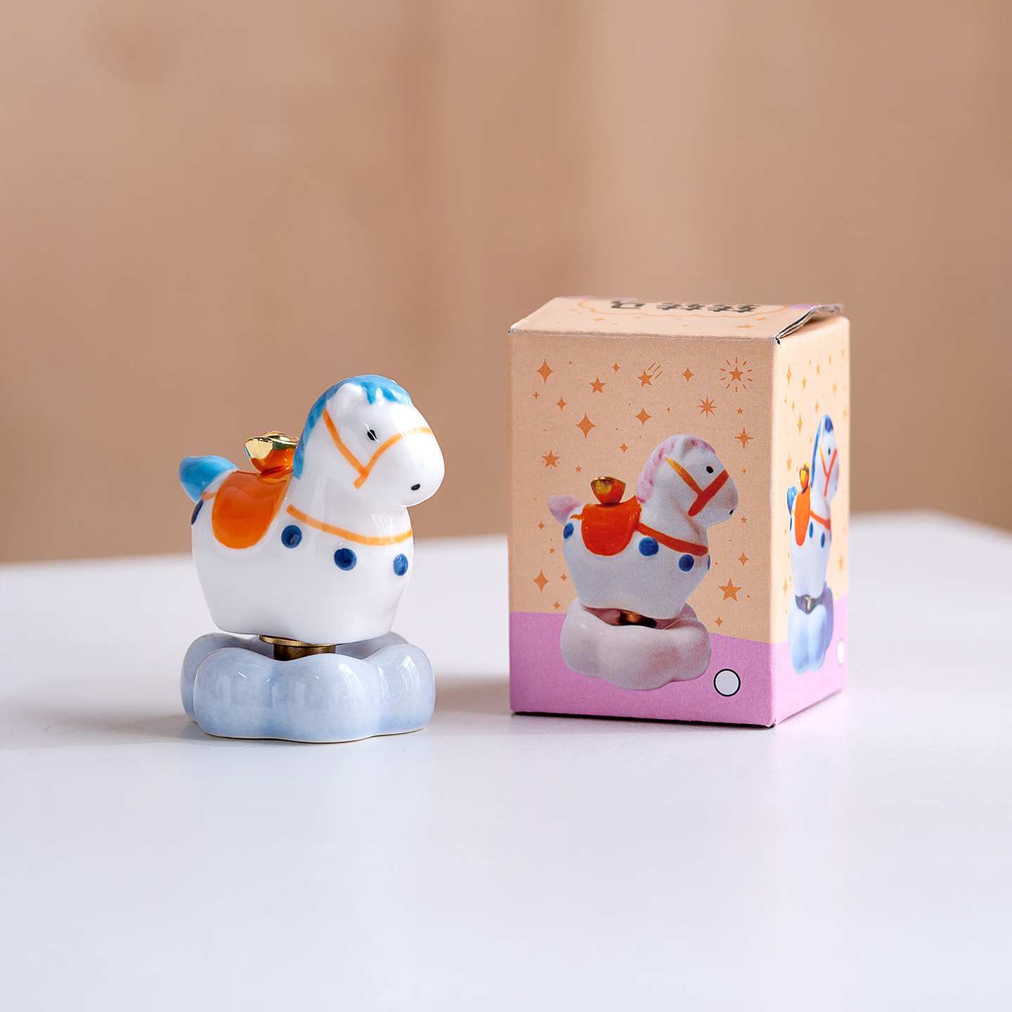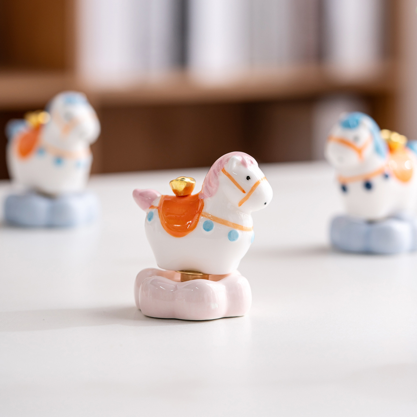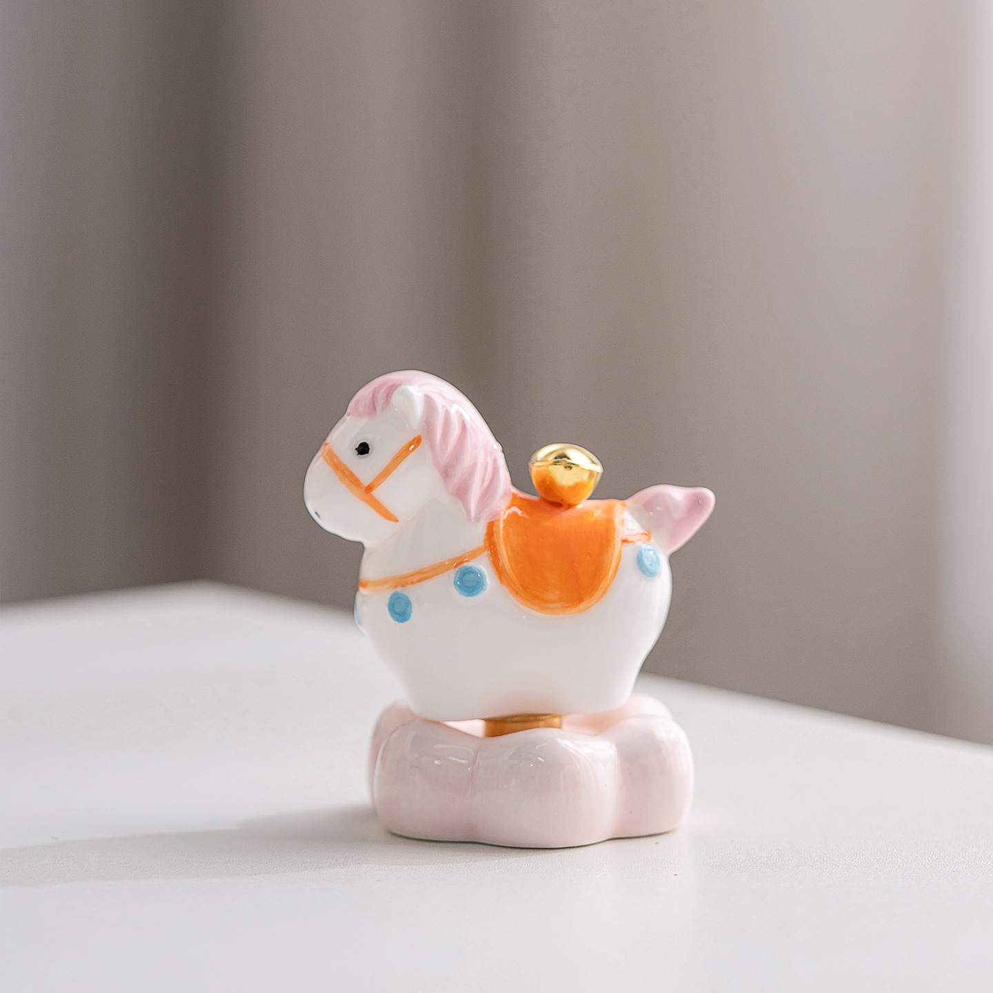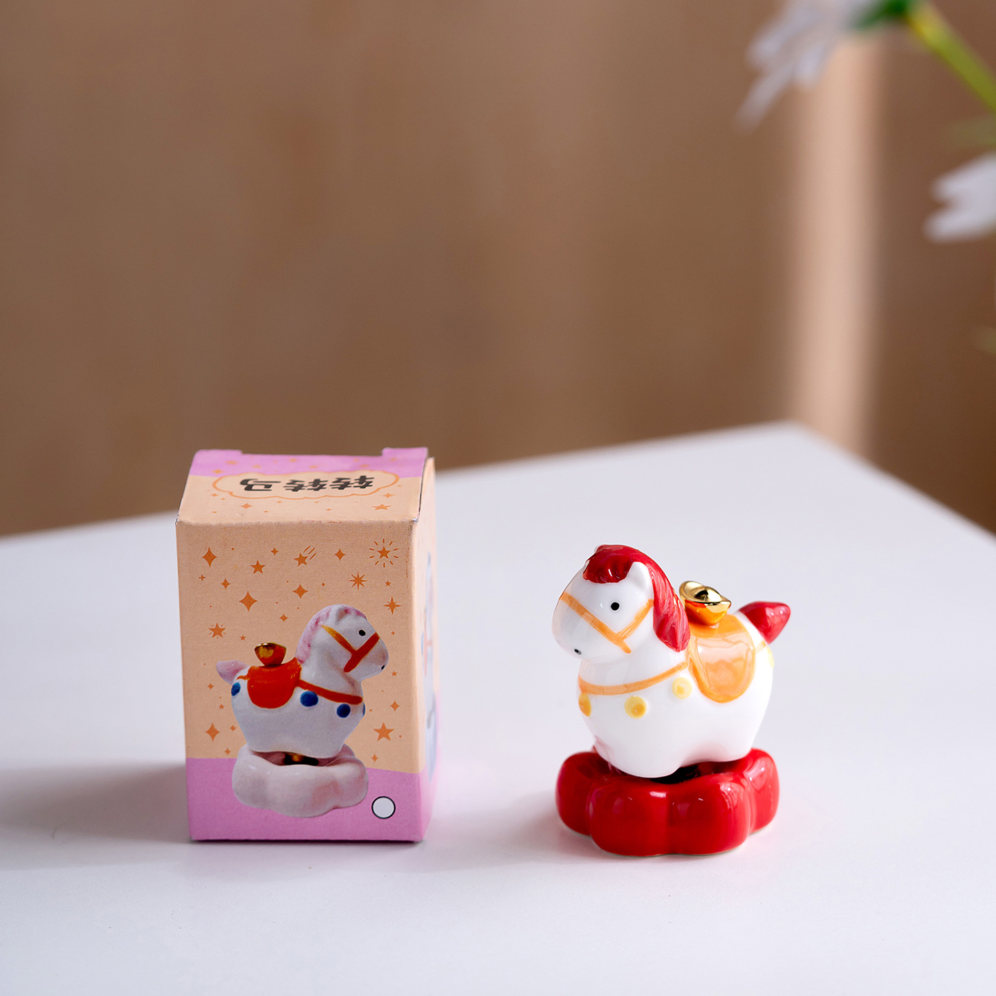 景德镇创意唐马小摆件新年伴手礼可爱陶瓷小马转转乐摆件马年礼物
