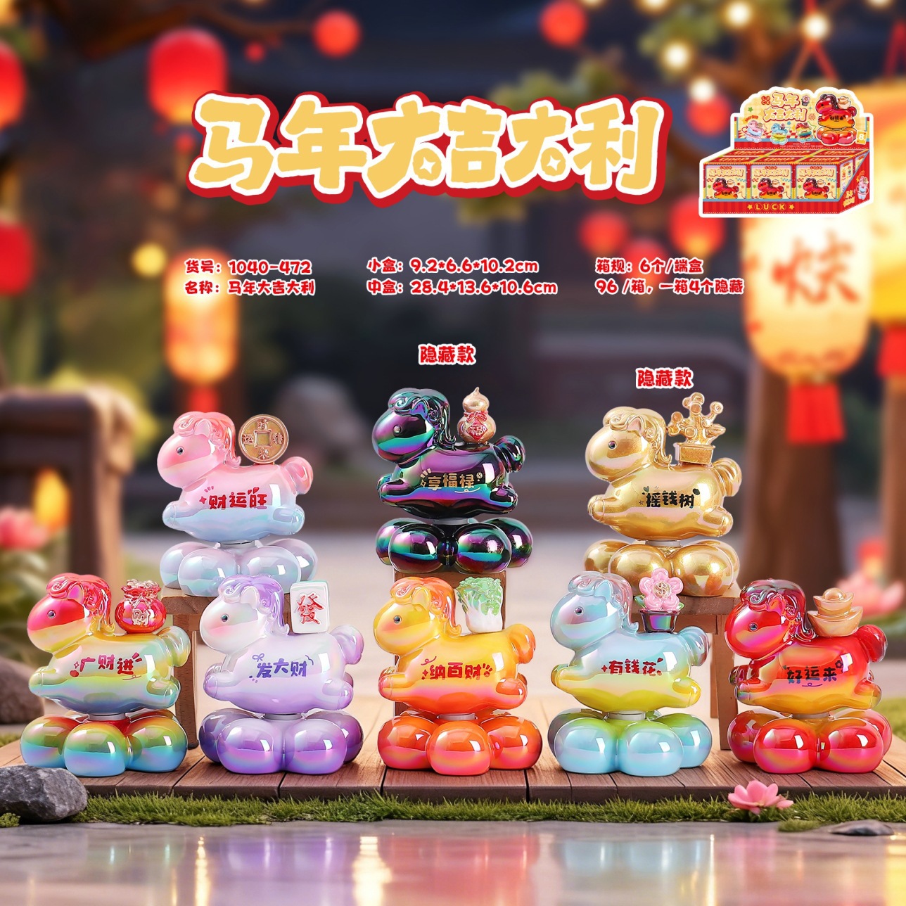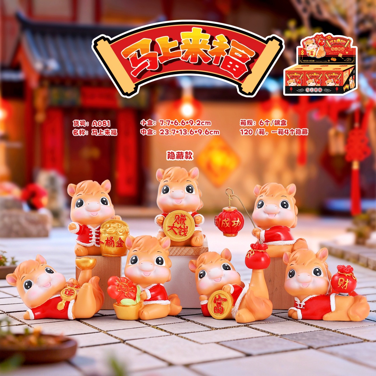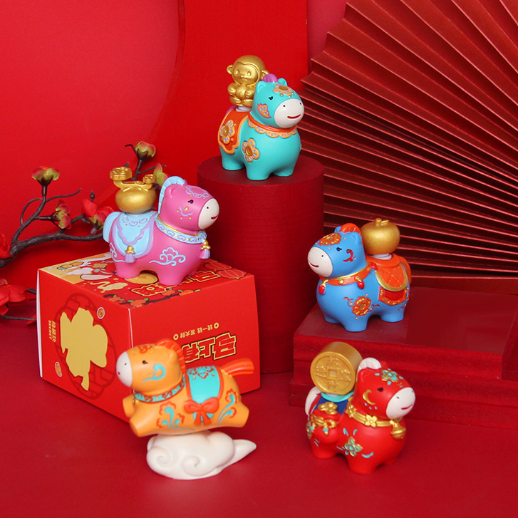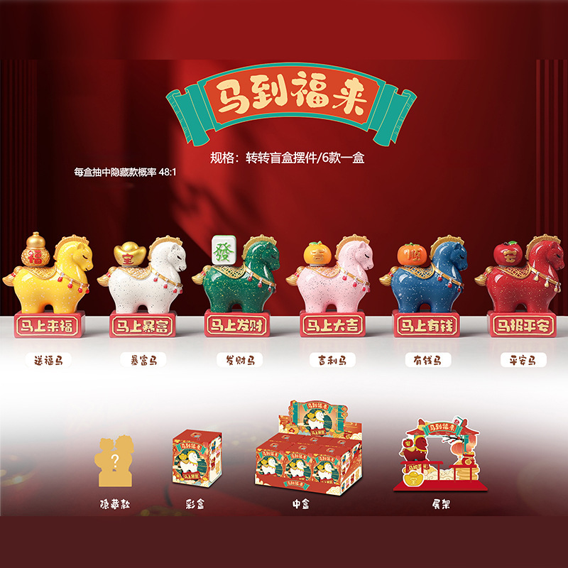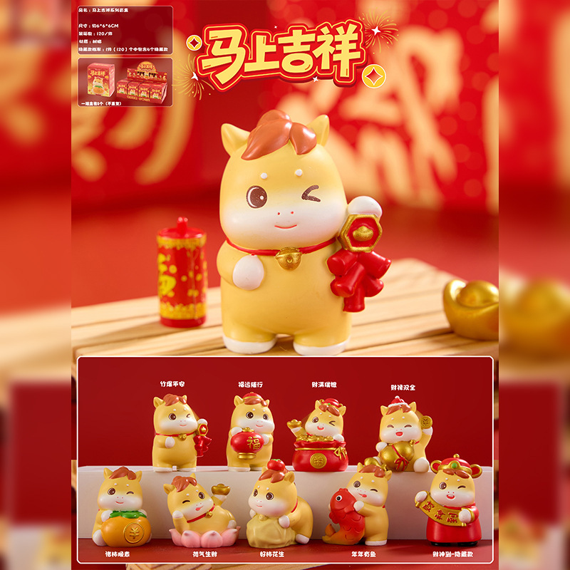 网红爆款盲盒马年大吉大利摆件树脂工艺品潮流摆件桌面装饰品马年
