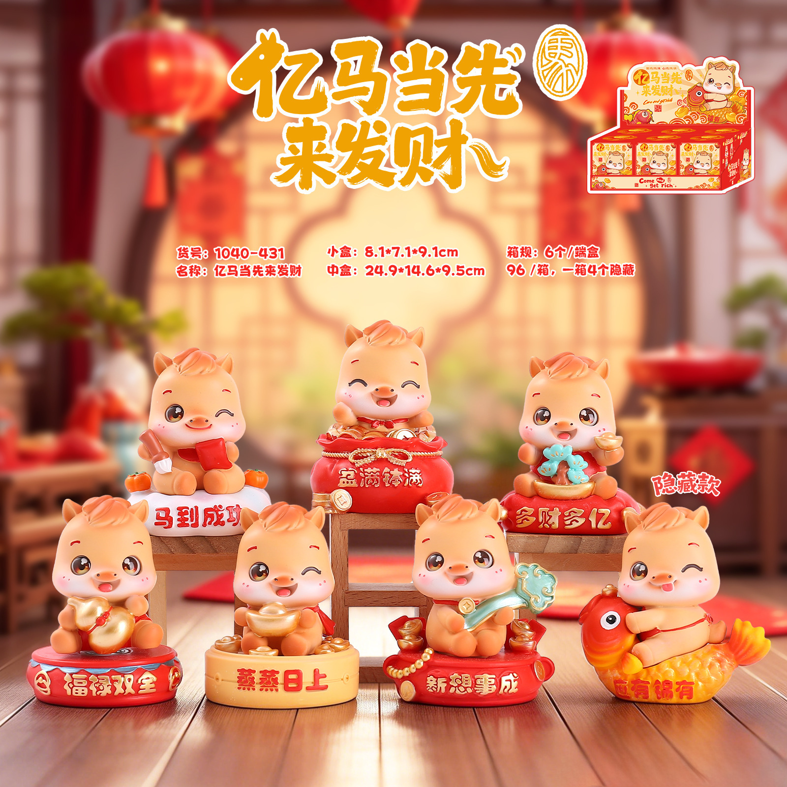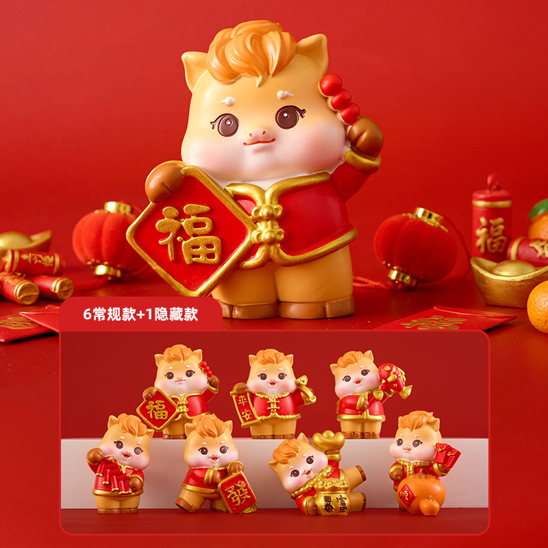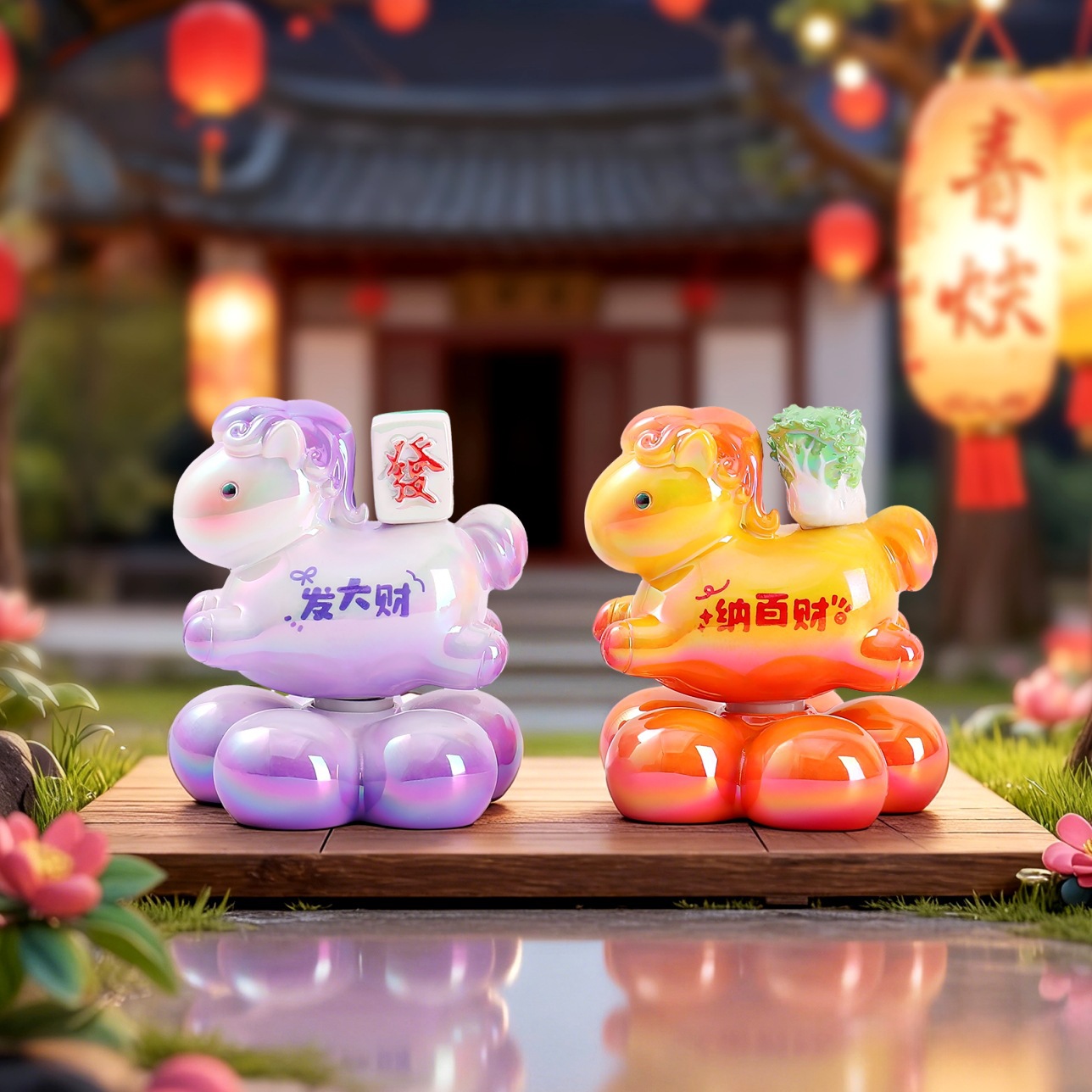 网红爆款盲盒马年大吉大利摆件树脂工艺品潮流摆件桌面装饰品马年