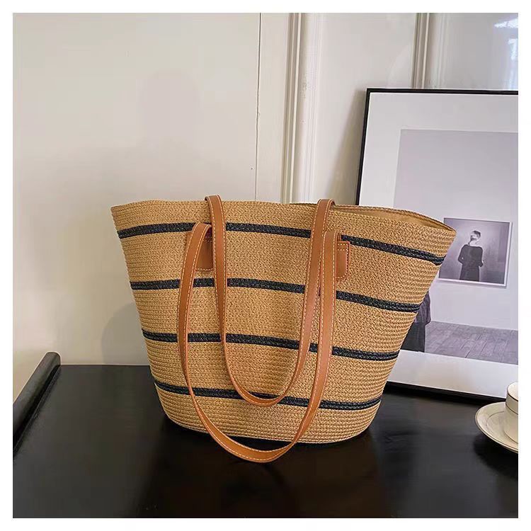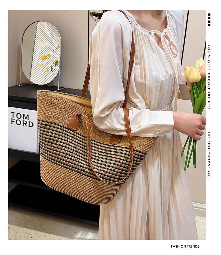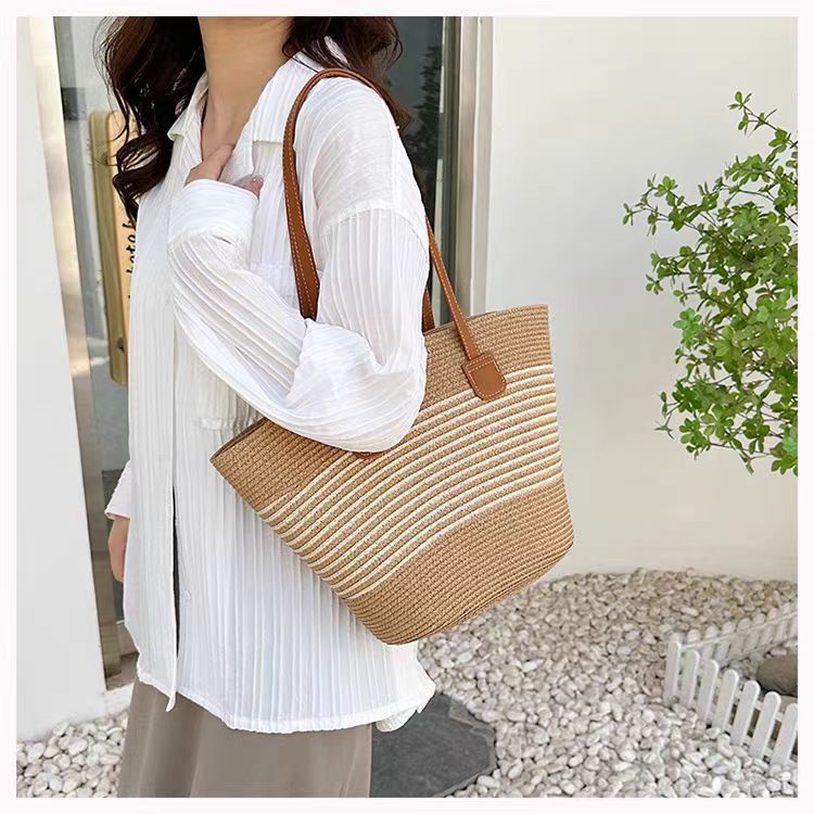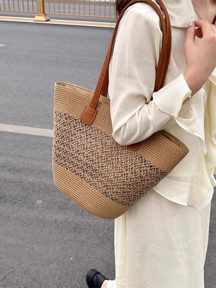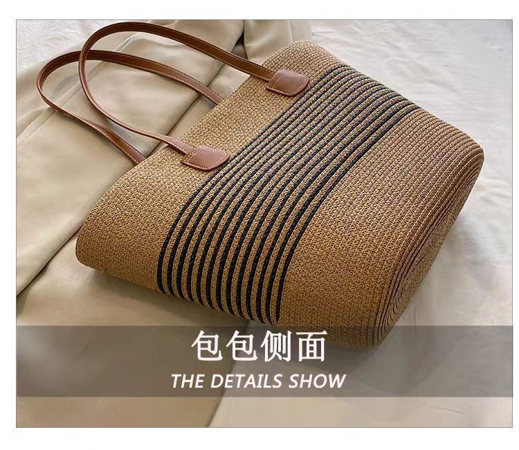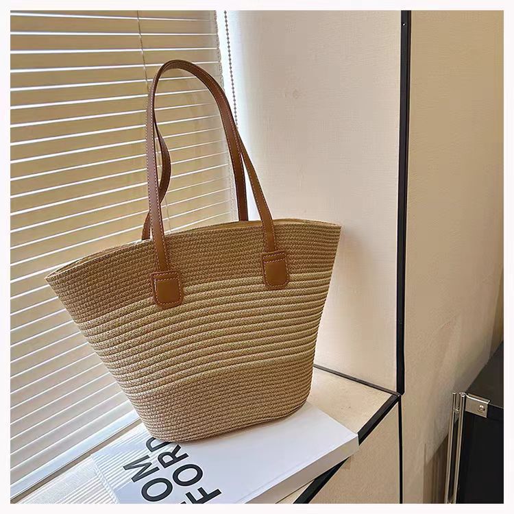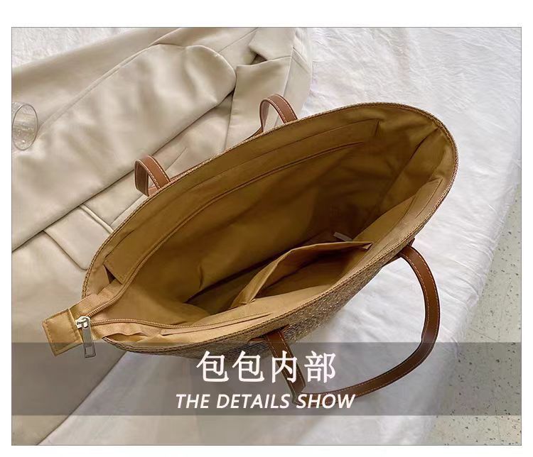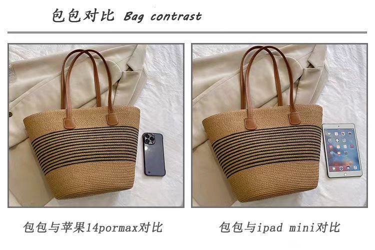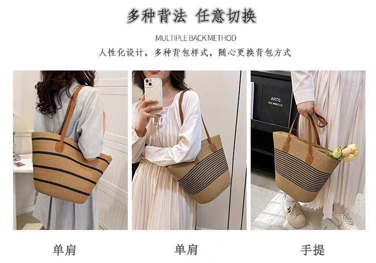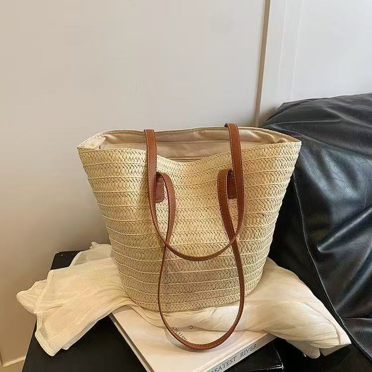 手提包草草编包女夏季包水桶包编织单肩包藤编托特包大容量潮海边