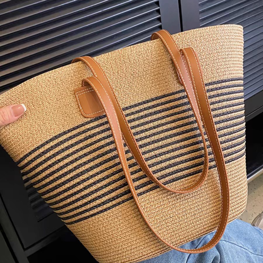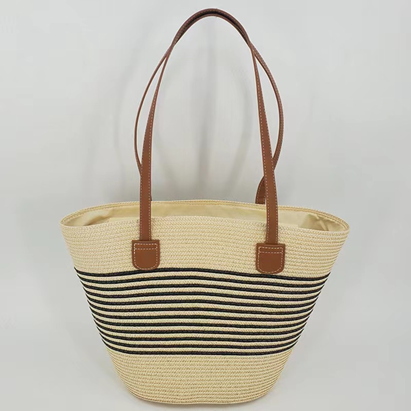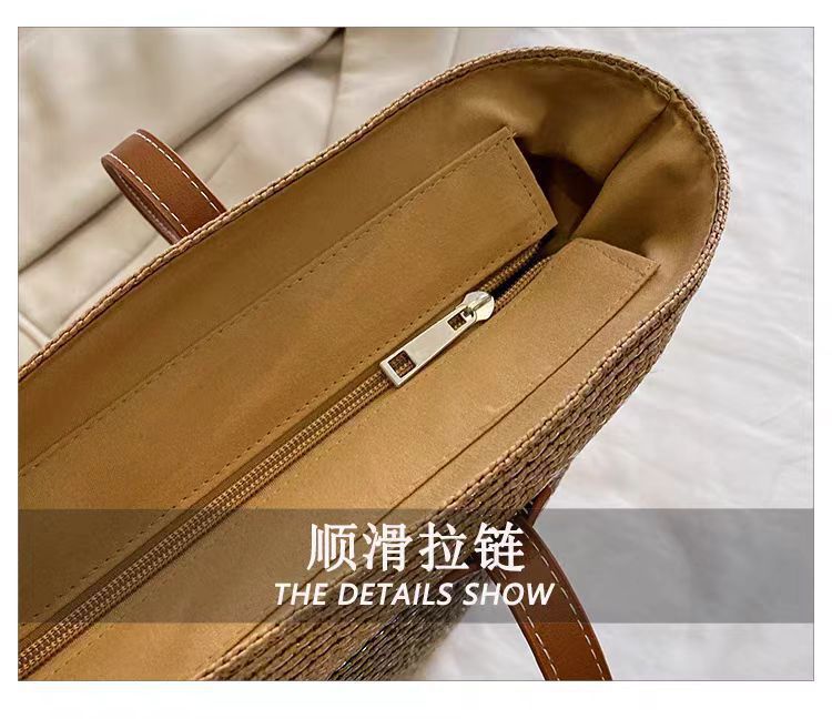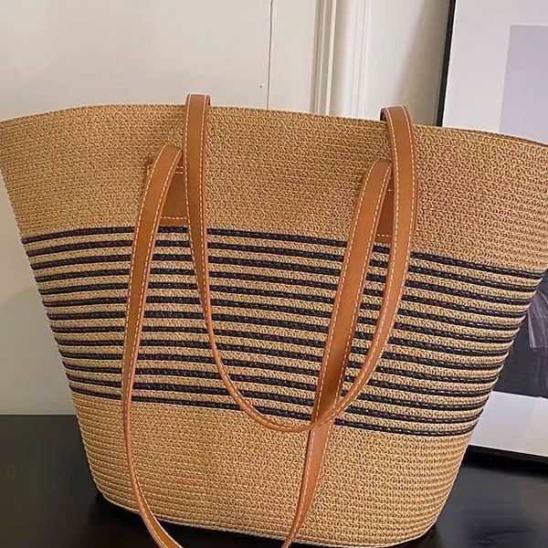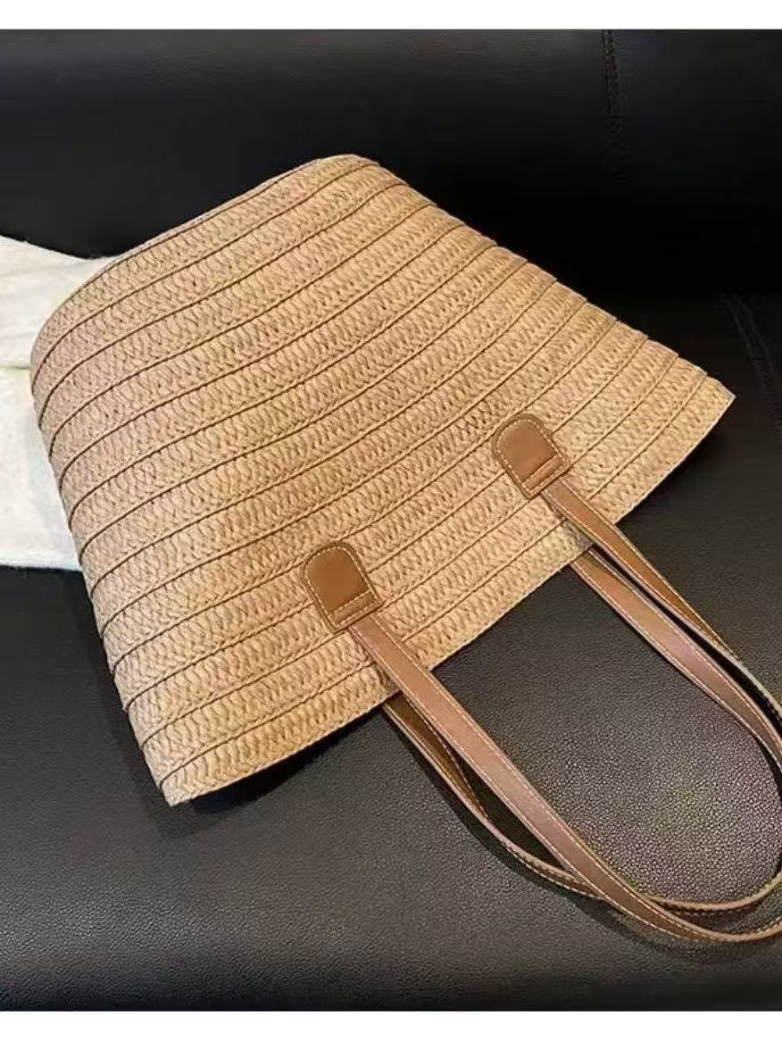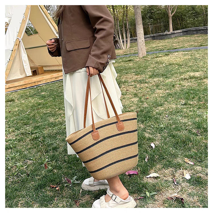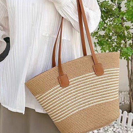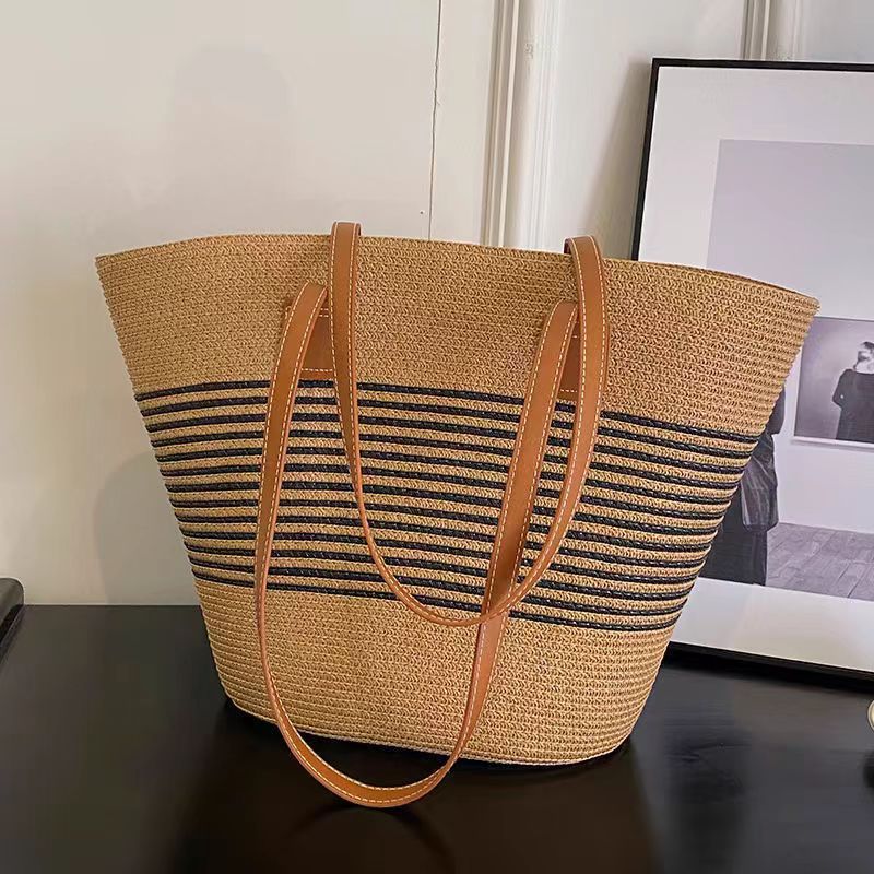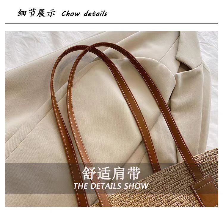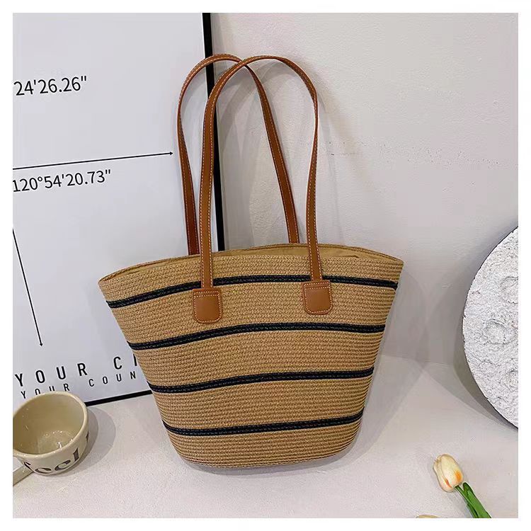 手提包草草编包女夏季包水桶包编织单肩包藤编托特包大容量潮海边
