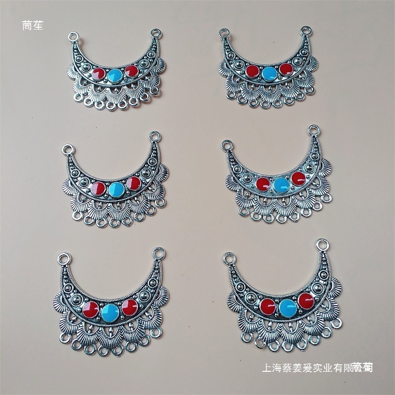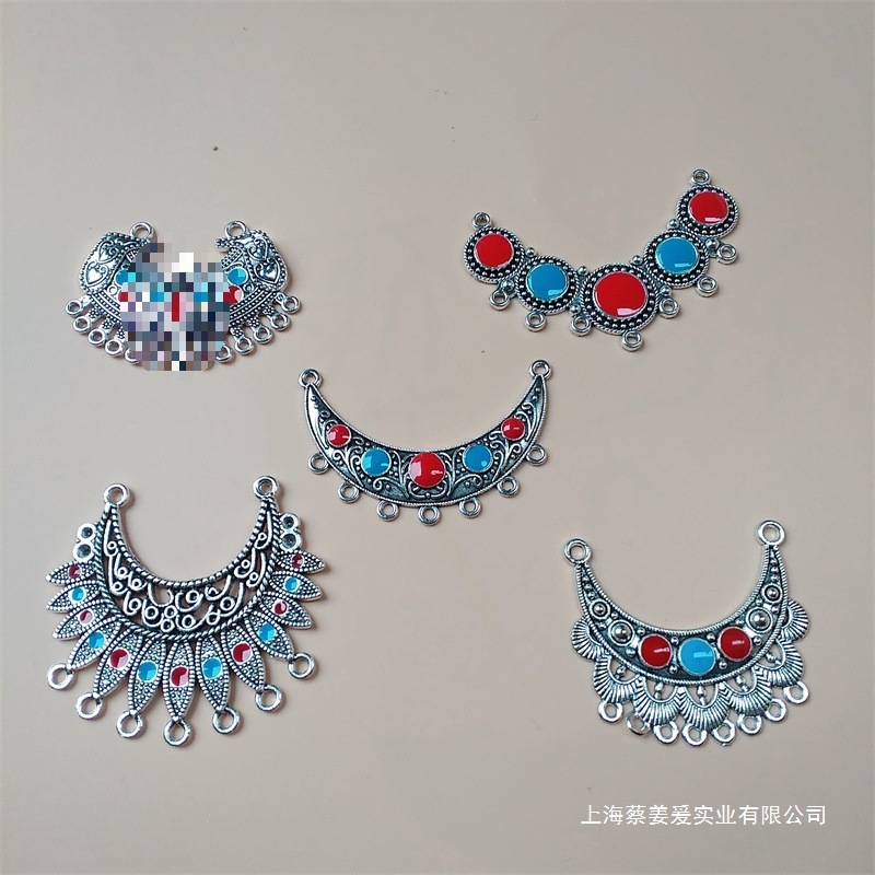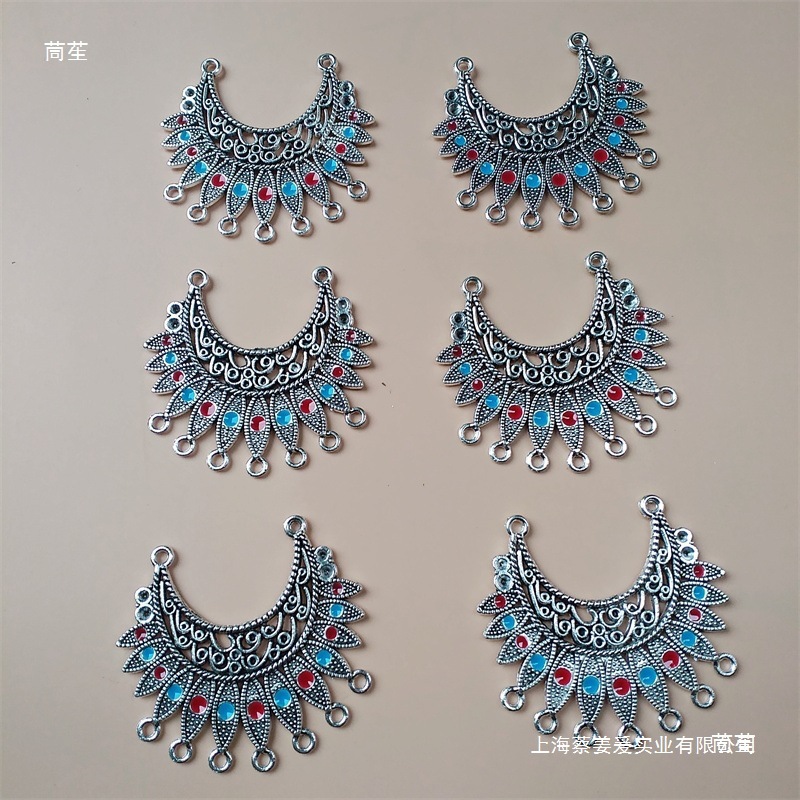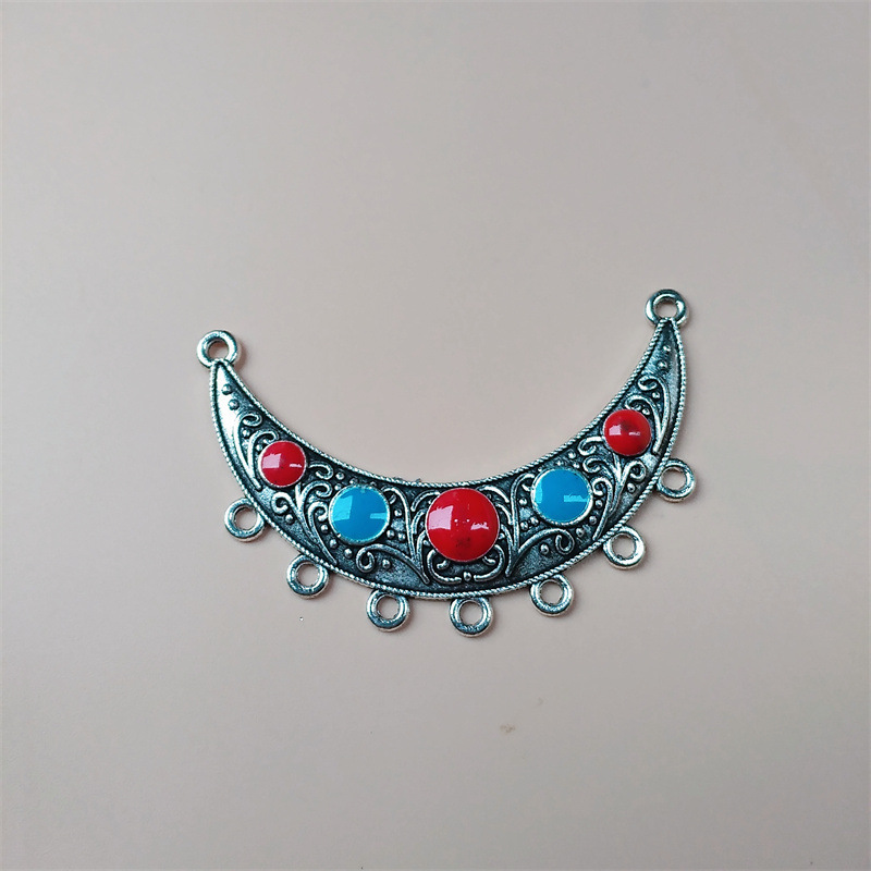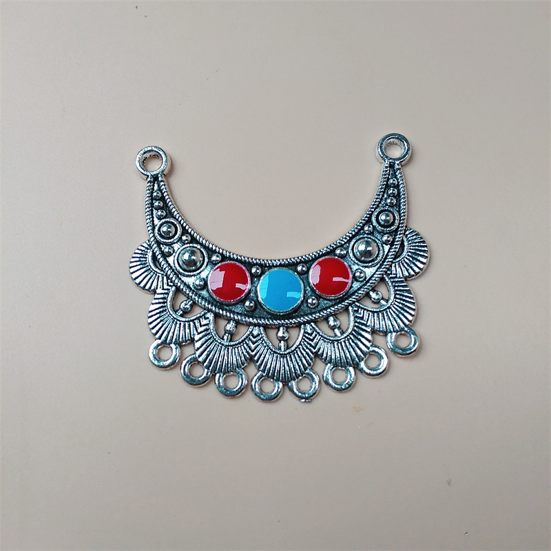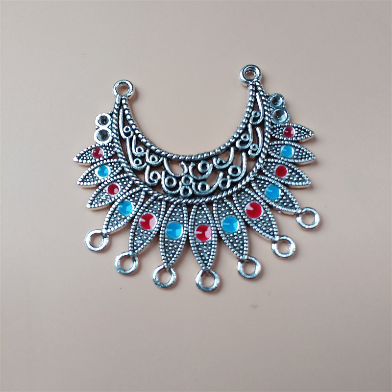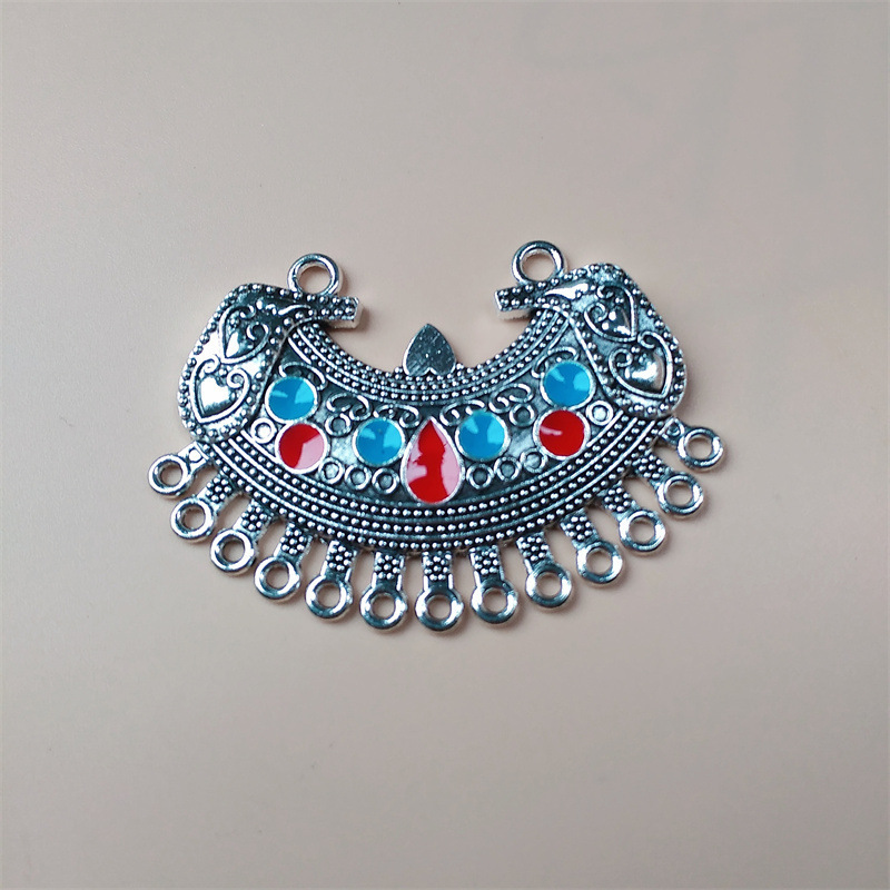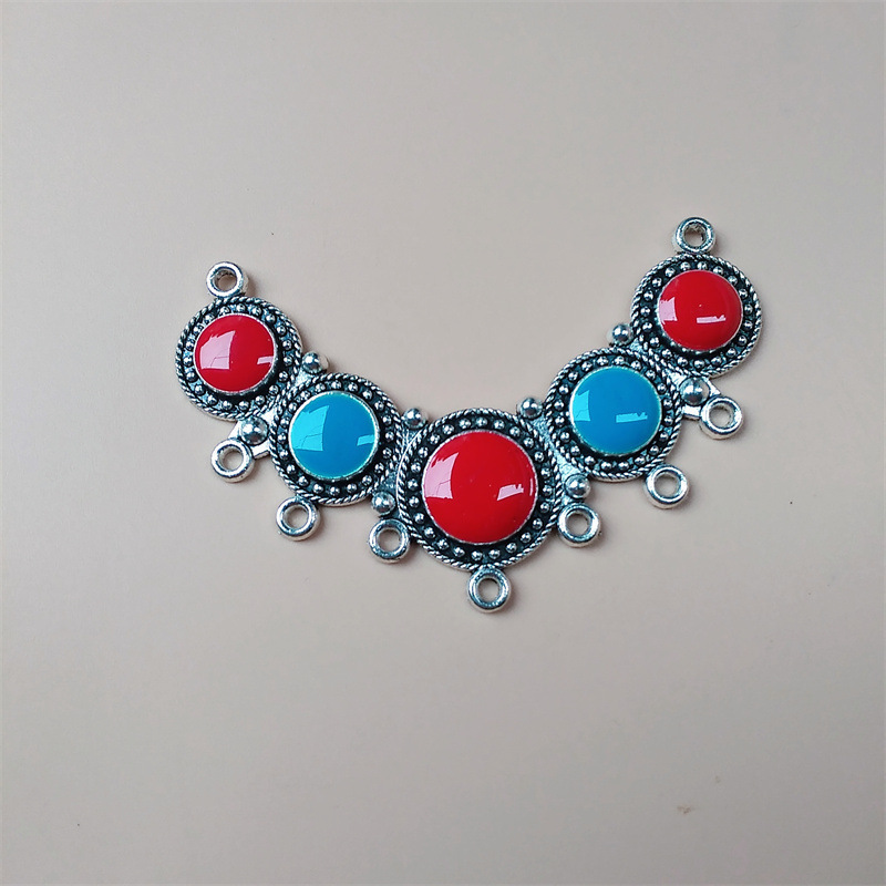 饰品配件diy苗银民族风藏银彩色滴油合金吊坠 多孔挂饰演出服装饰