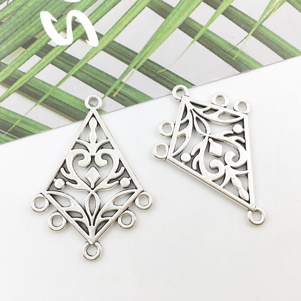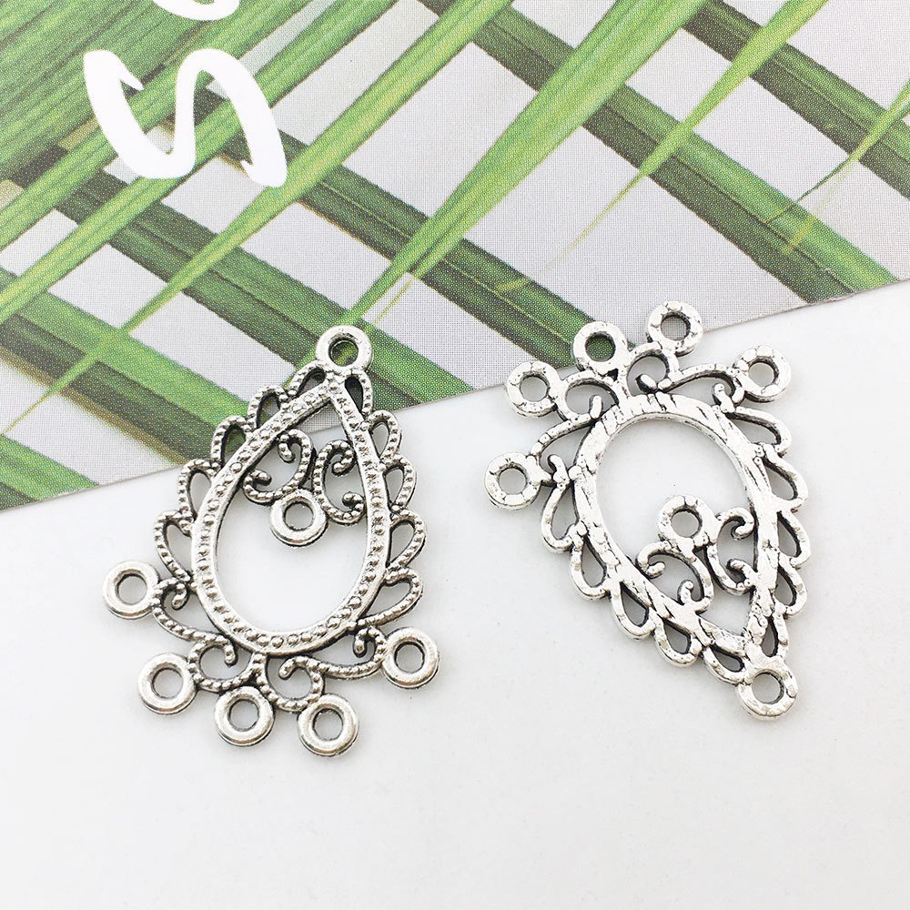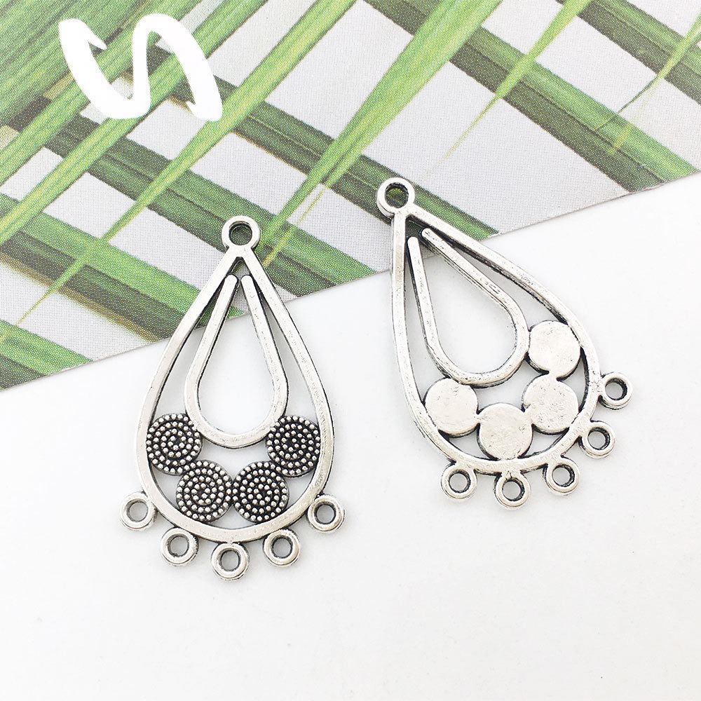 DIY饰品配件复古民族风合金多吊水滴挂件多孔耳挂爱心花型挂头