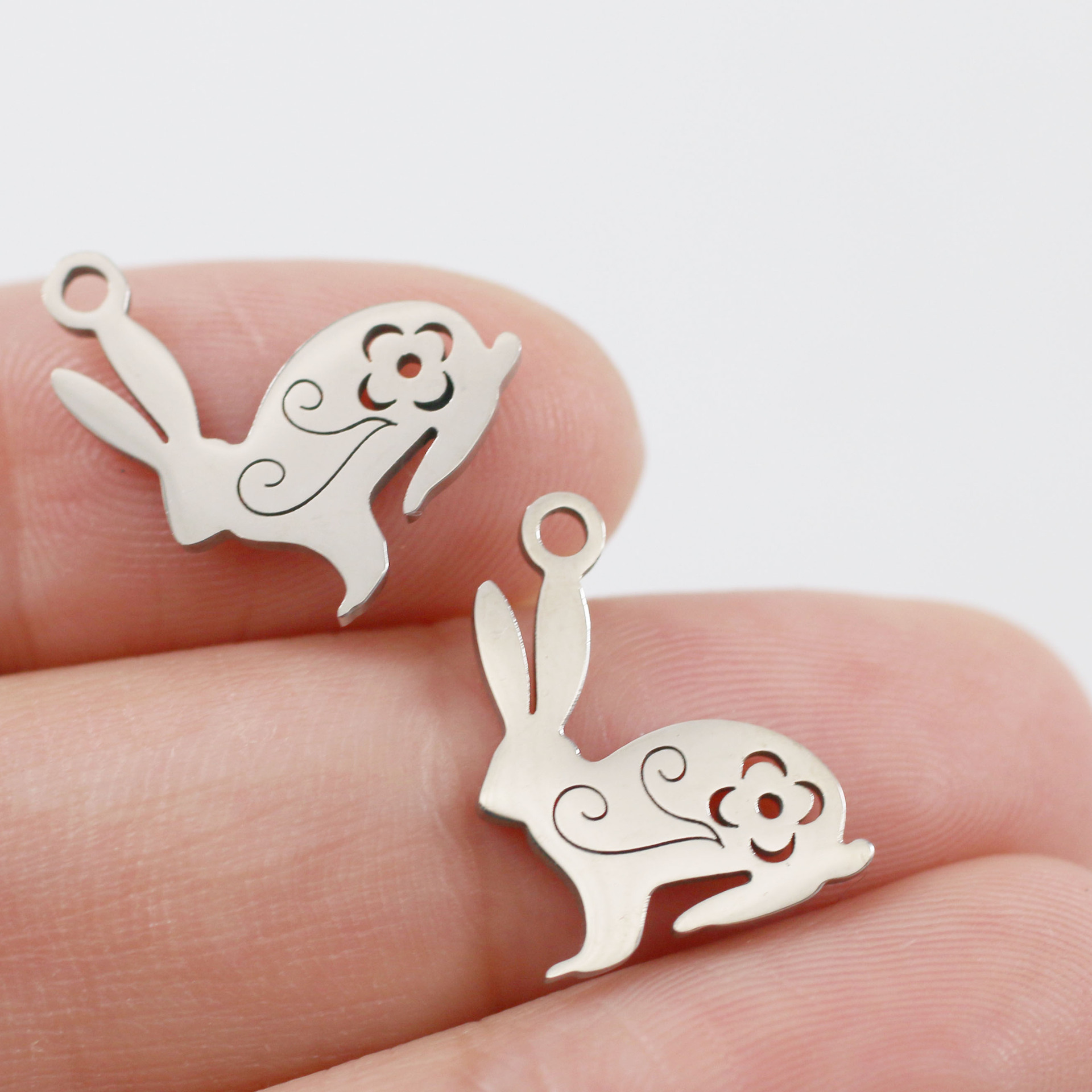 钛钢激光切割全抛光镂空兔子吊坠 diy不锈钢饰品配件挂件厂家批发