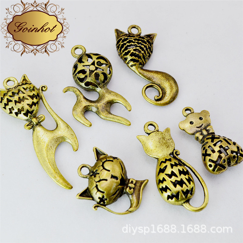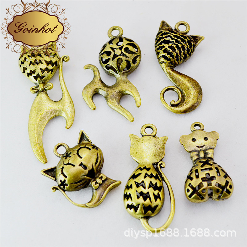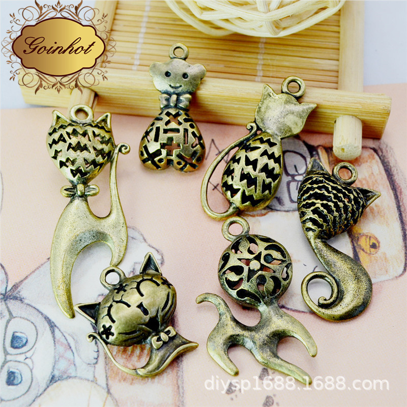 义乌厂家直销 民族风 猫咪立体镂空吊坠 DIY手工饰品配件 批发