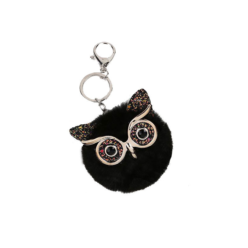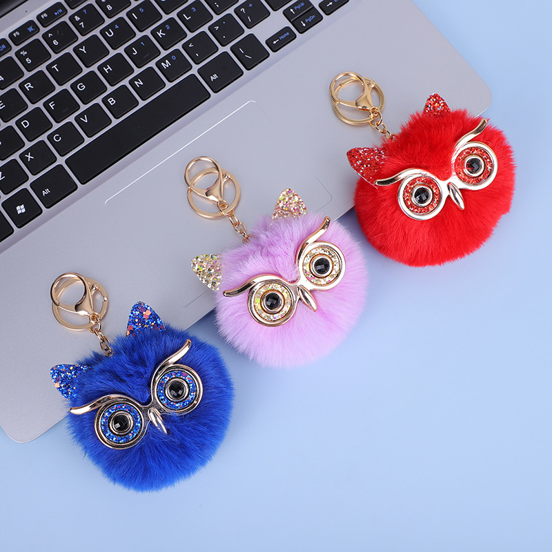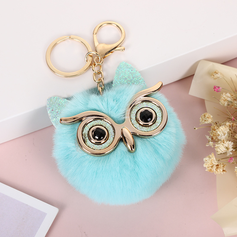 新款金粉亮片猫头鹰仿獭兔毛球钥匙扣挂饰学生书包挂件批发饰品