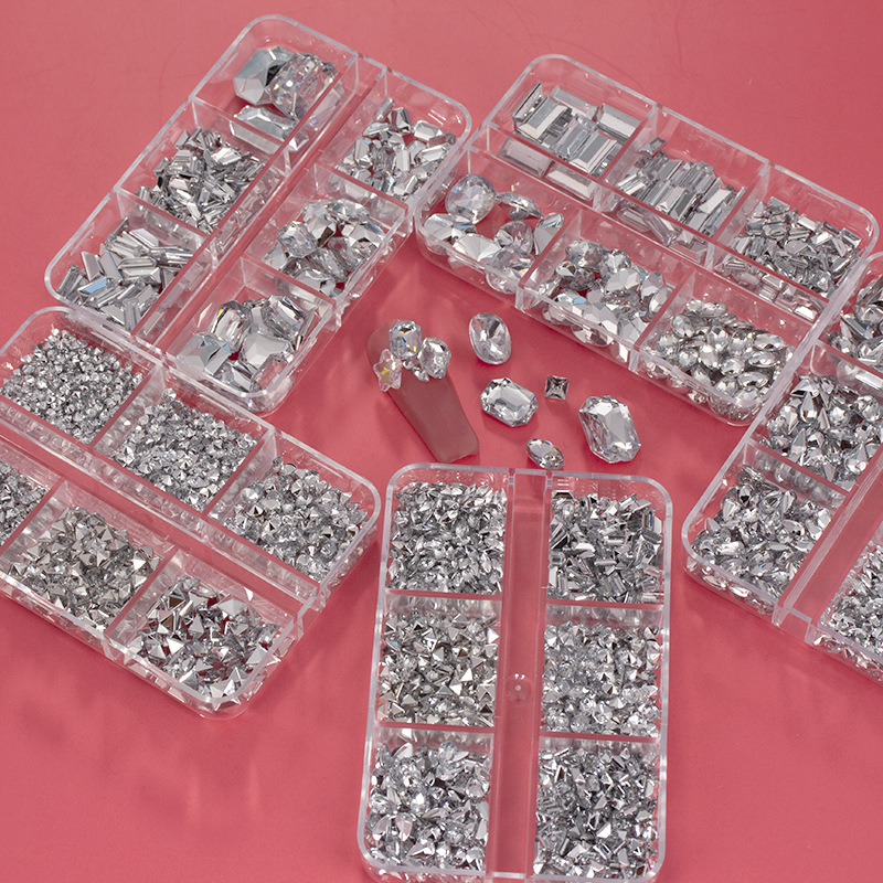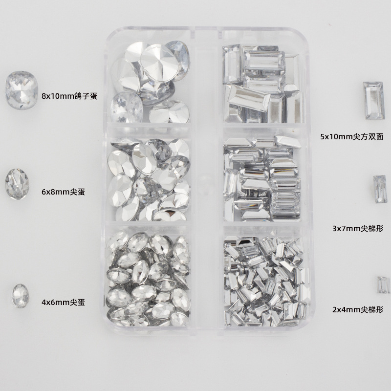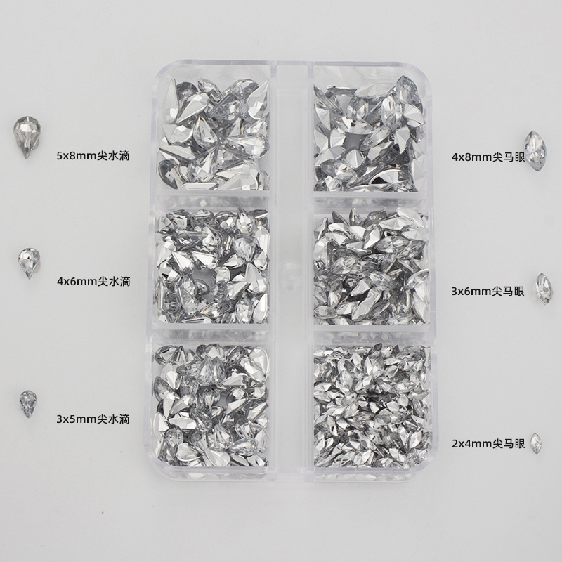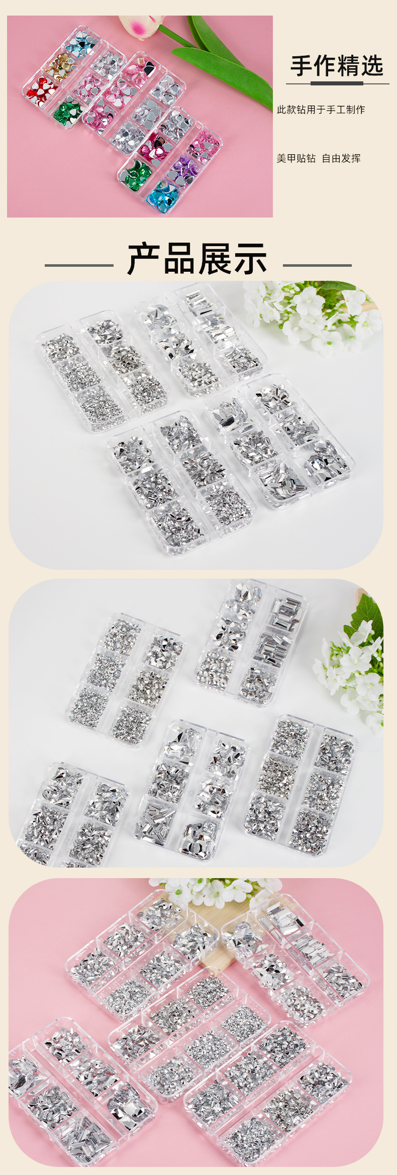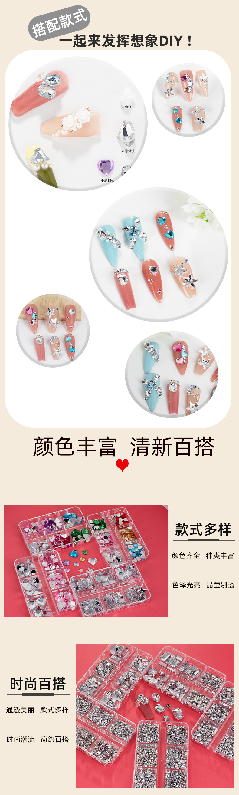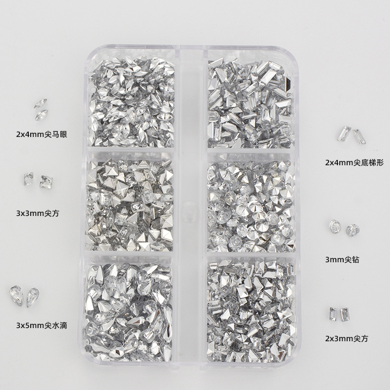亚克力美甲饰品配饰混合装组合6格套盒手工DIY指甲小配饰材料贴钻