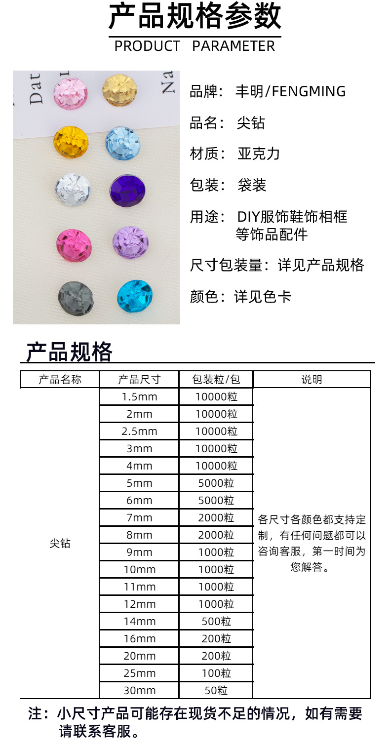 圆形八大八小番石仿水晶压克力尖钻 花式单爪diy手工发饰饰品配件