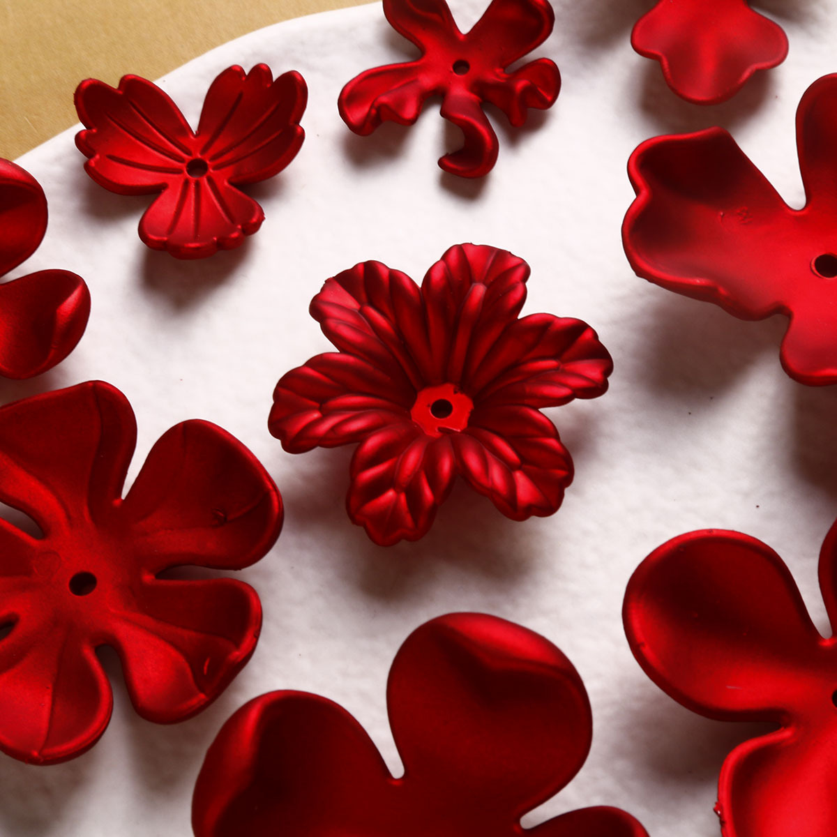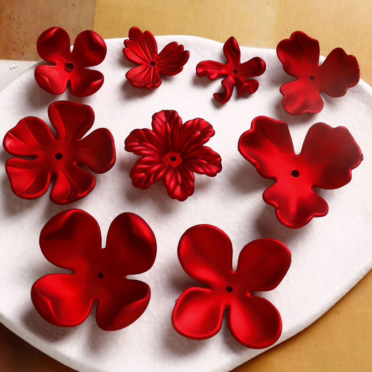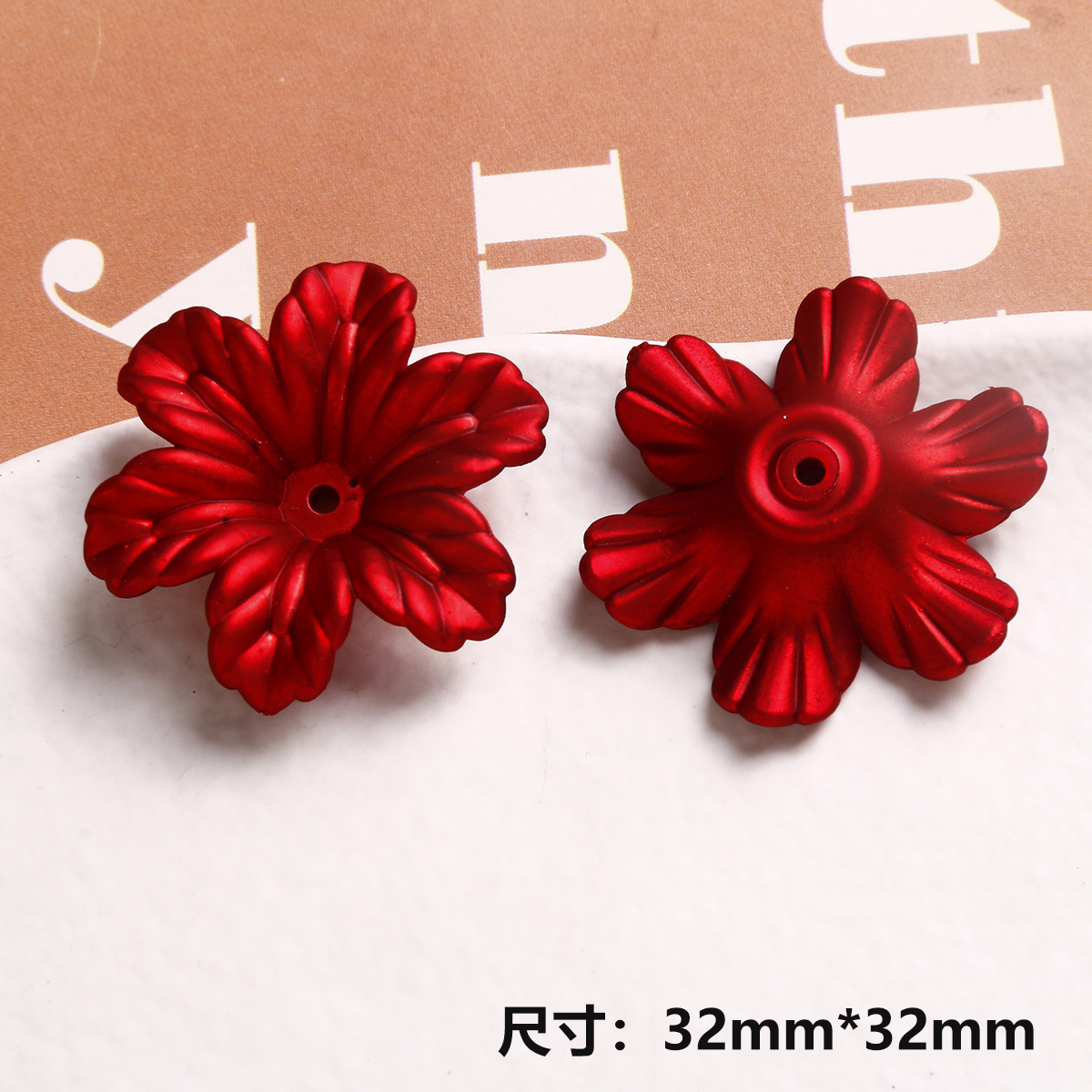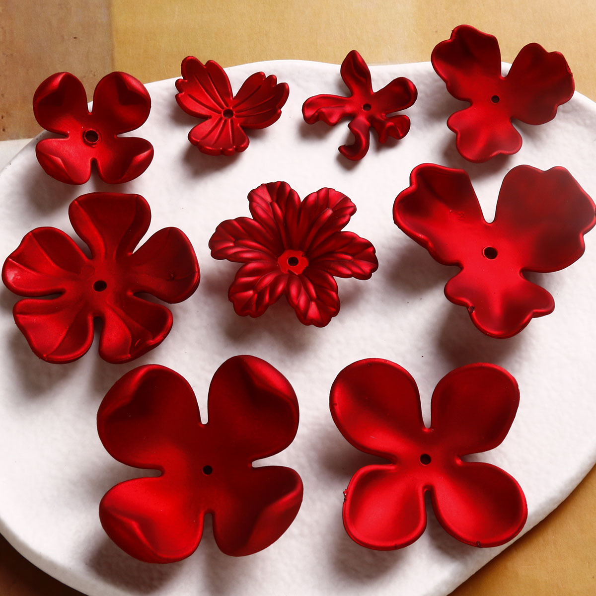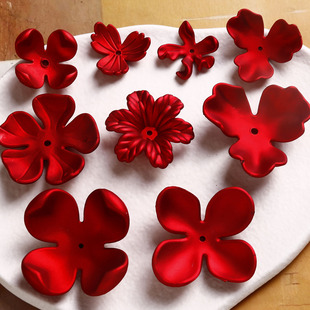 小众酒红色纯色亚克力五瓣花朵diy耳饰头饰贴片饰品手工配件批发