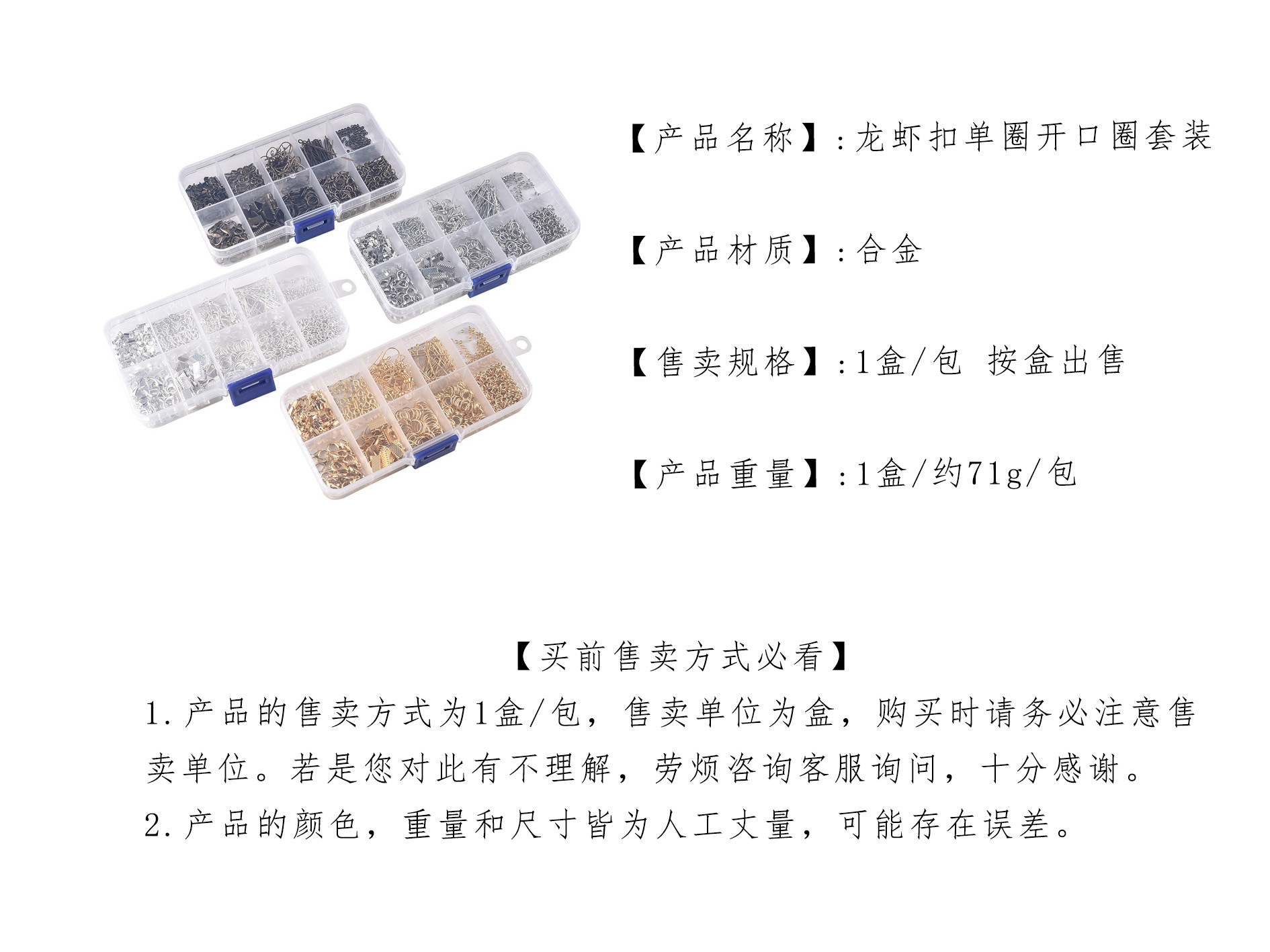 DIY饰品配件 龙虾扣马仔扣单圈开口圈9字针耳钩套装 手工串珠盒装