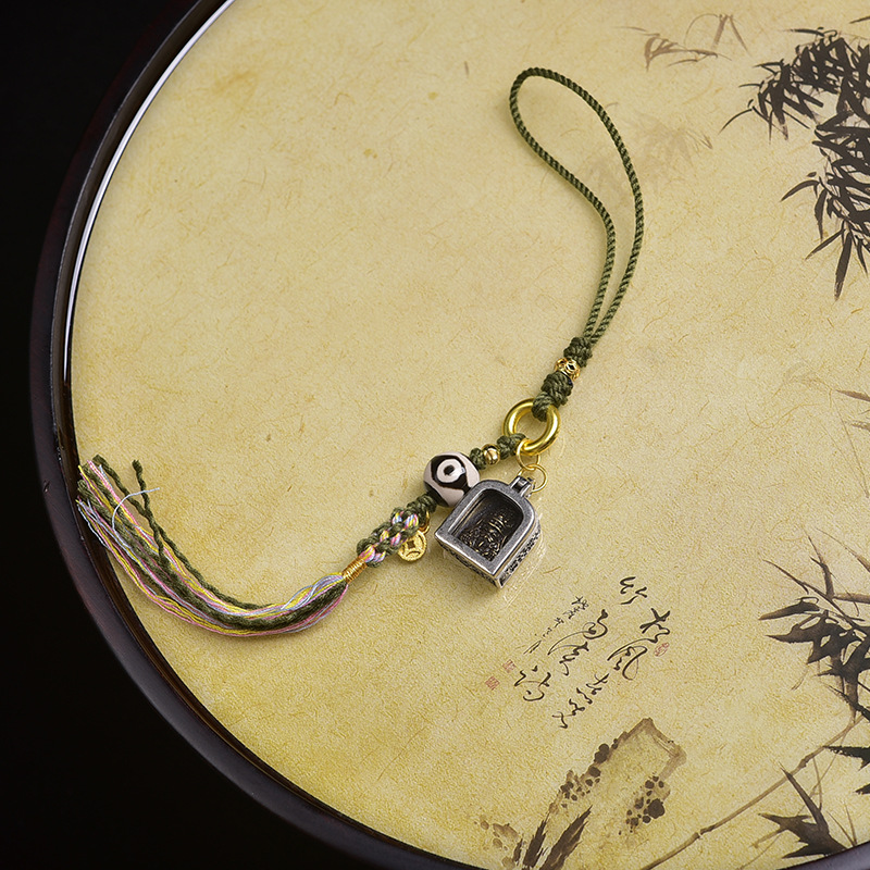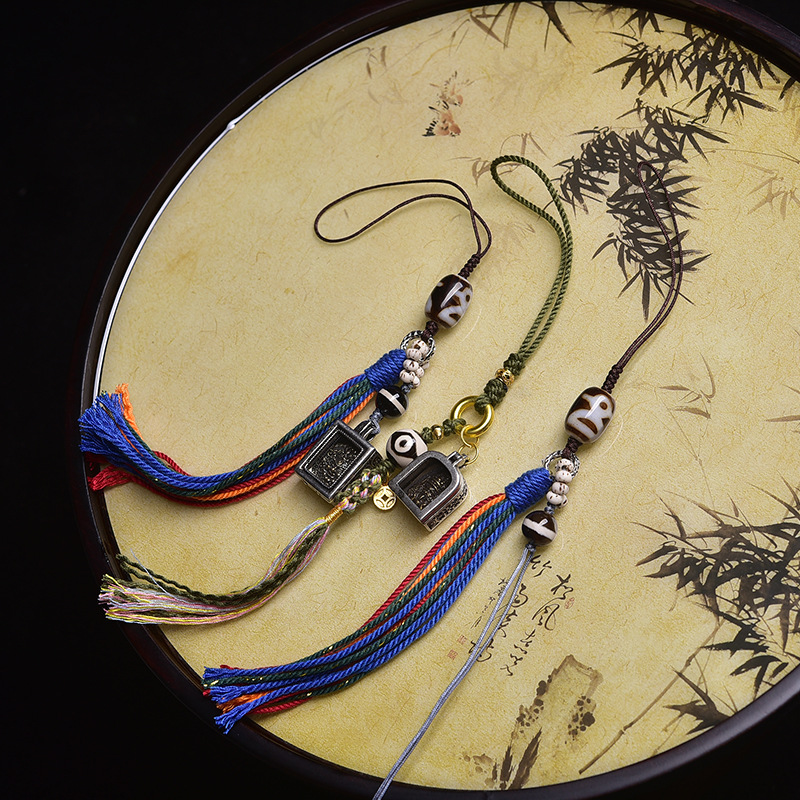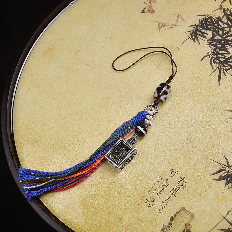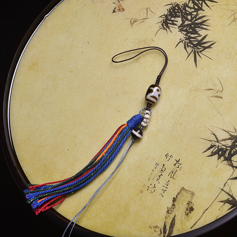 天然西藏唐卡九眼天珠手机挂包挂老矿藏式菩提男女手链挂件手工
