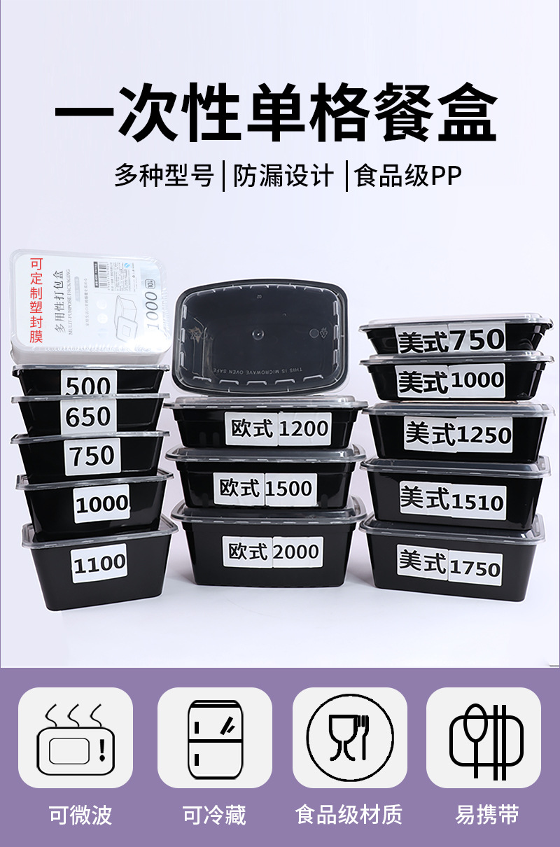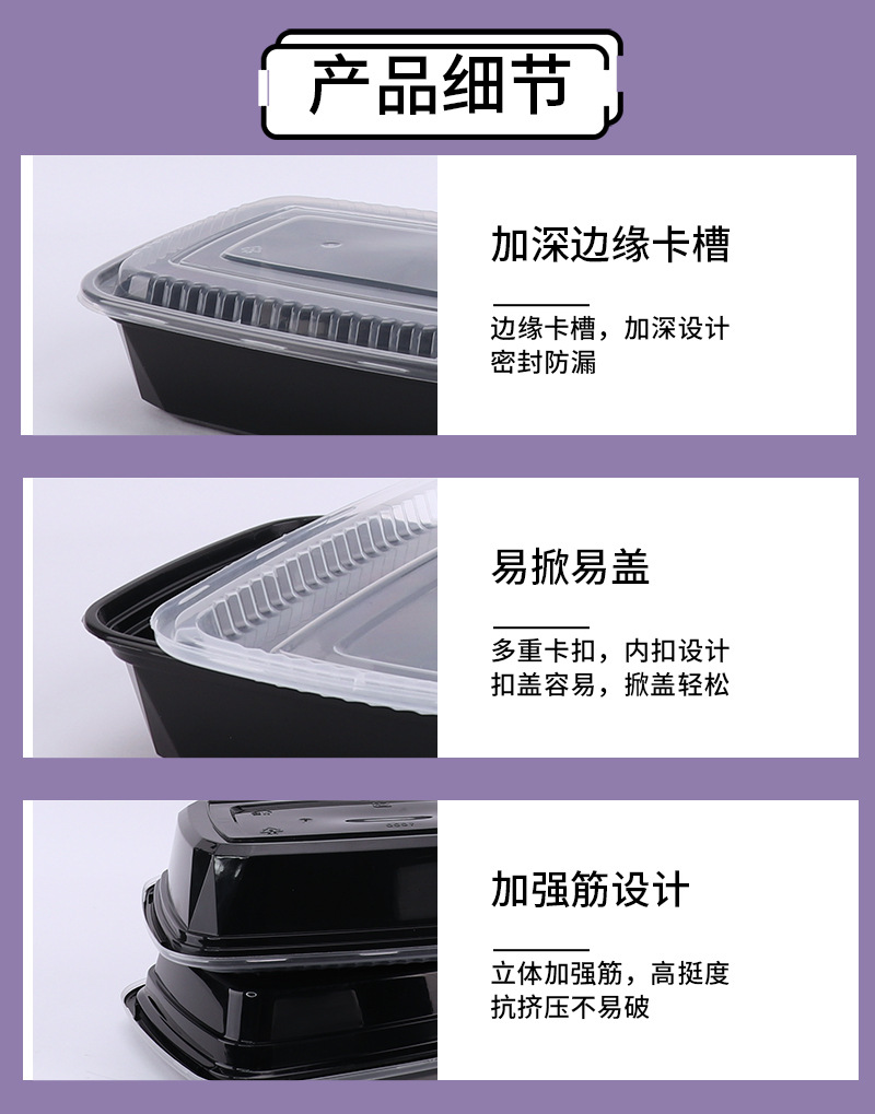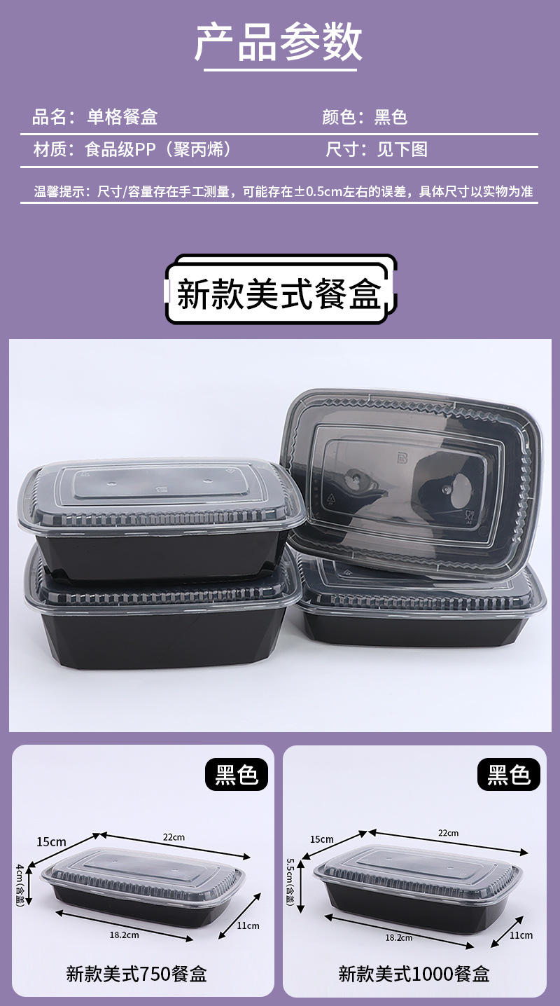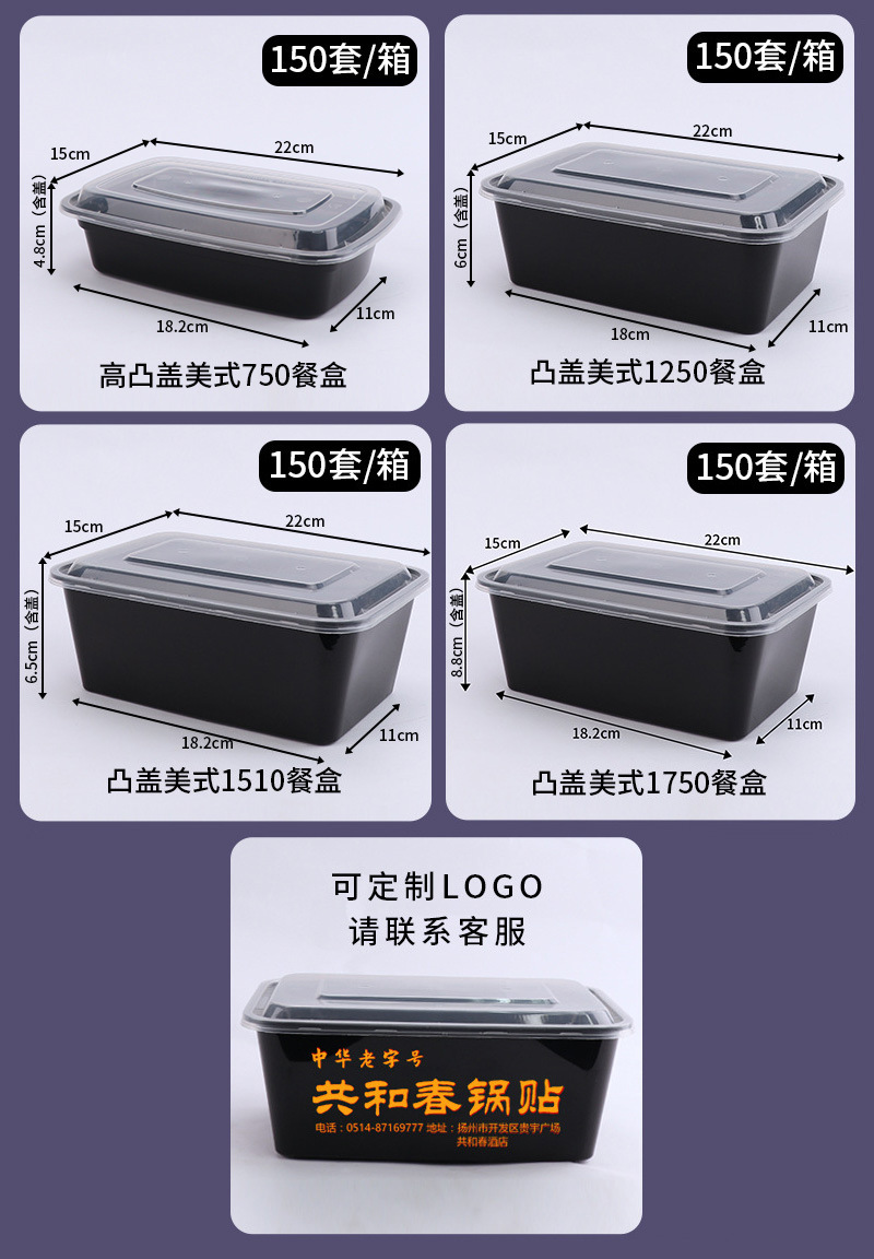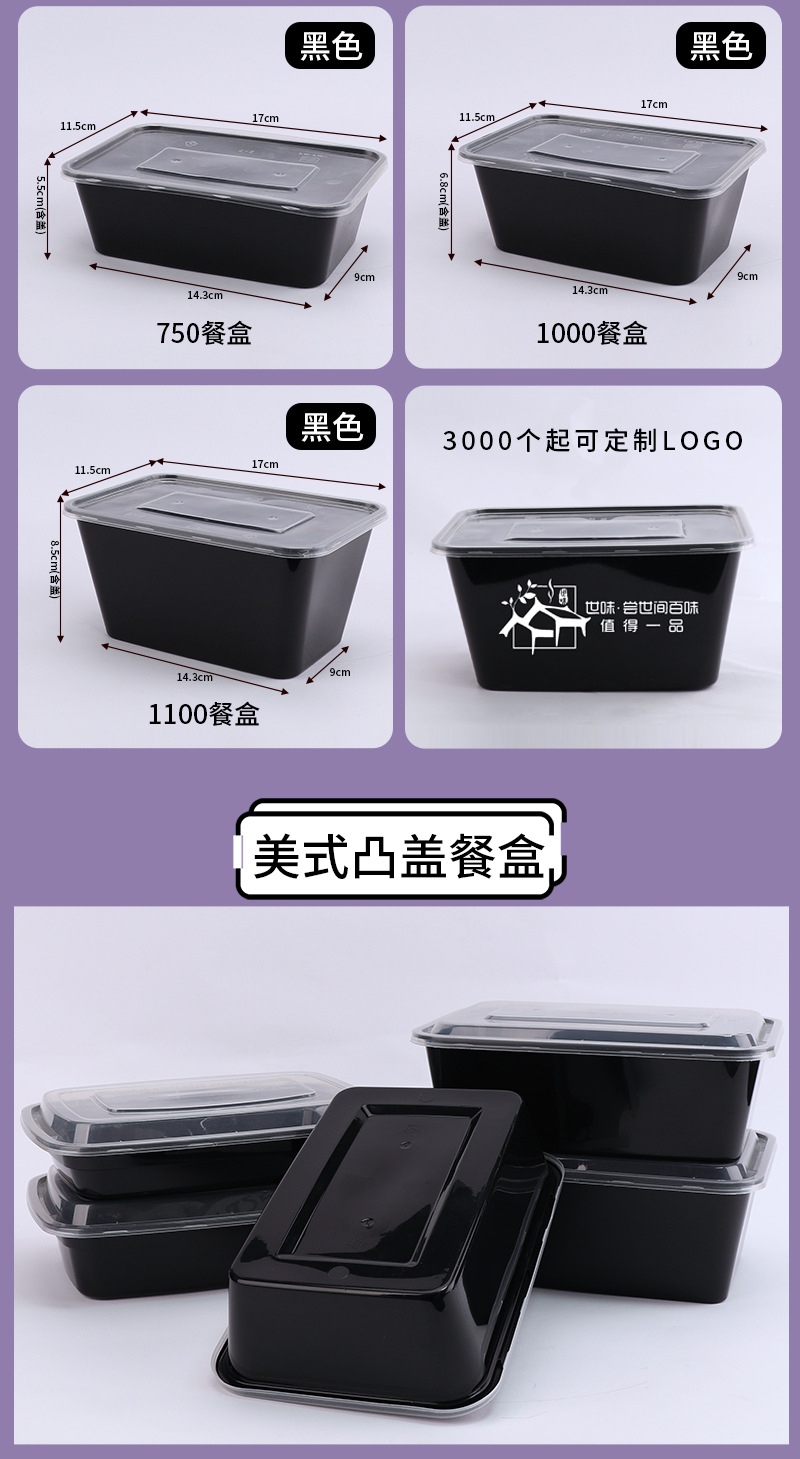 批发美式一次性长方形快餐盒食品级带盖餐盒外卖打包盒加厚饭盒