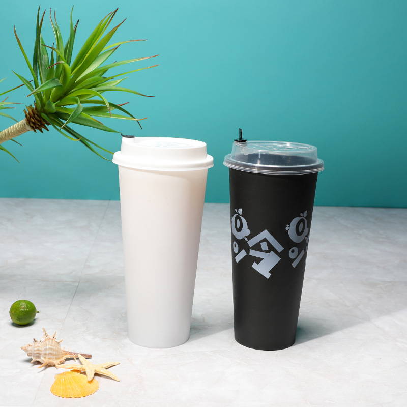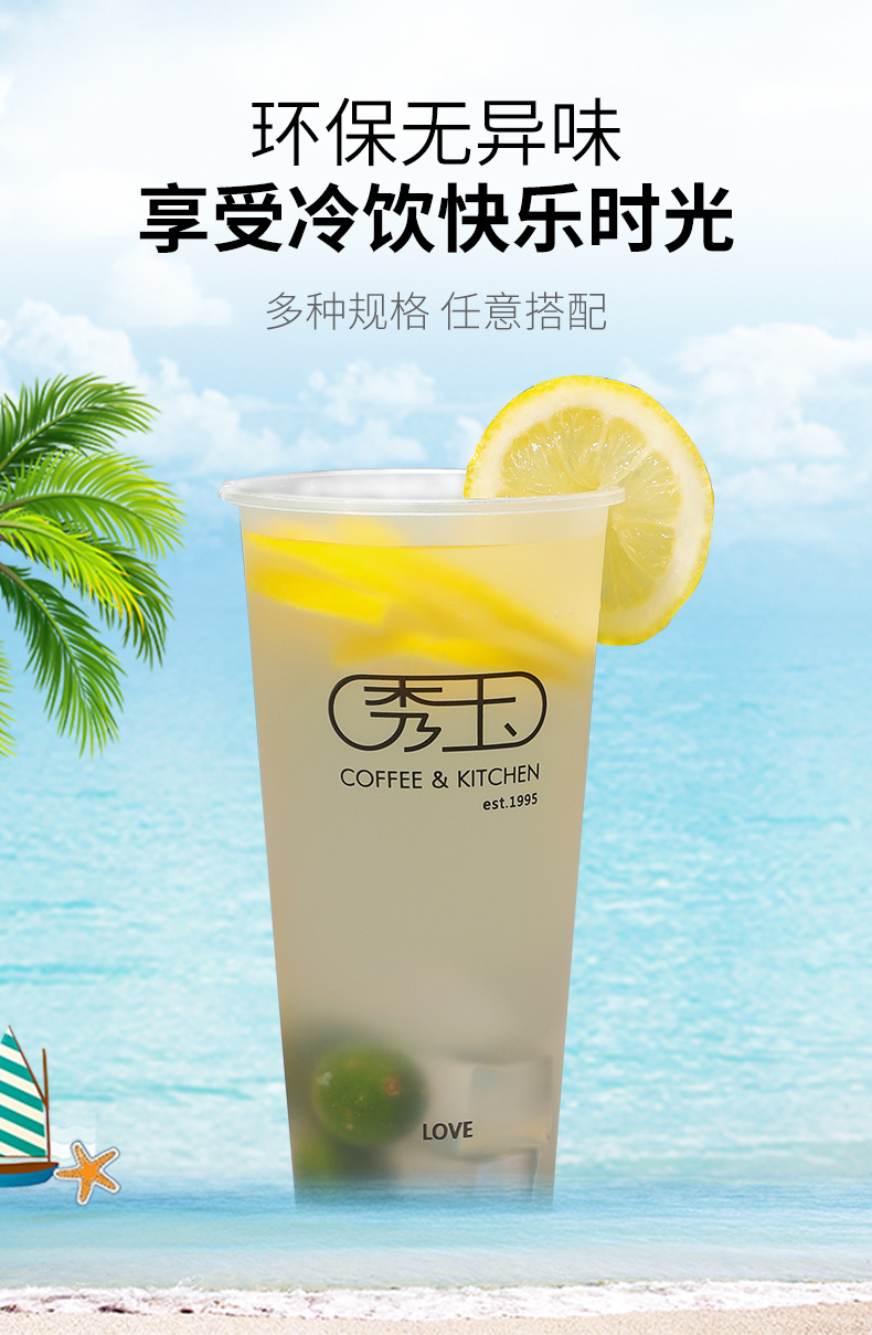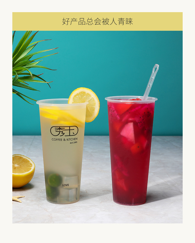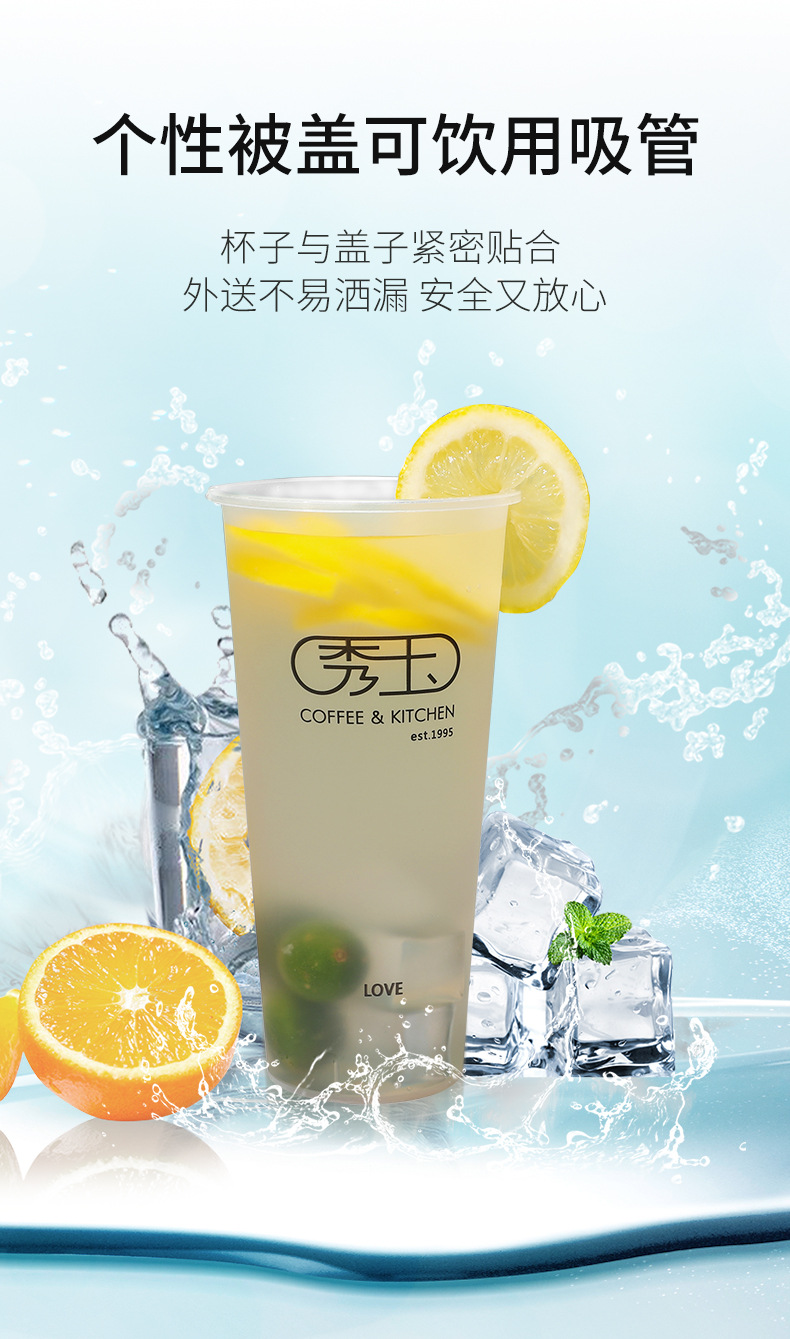 一次性奶茶杯 防烫冷热带盖咖啡杯 加厚透明磨砂印刷logo冷饮杯