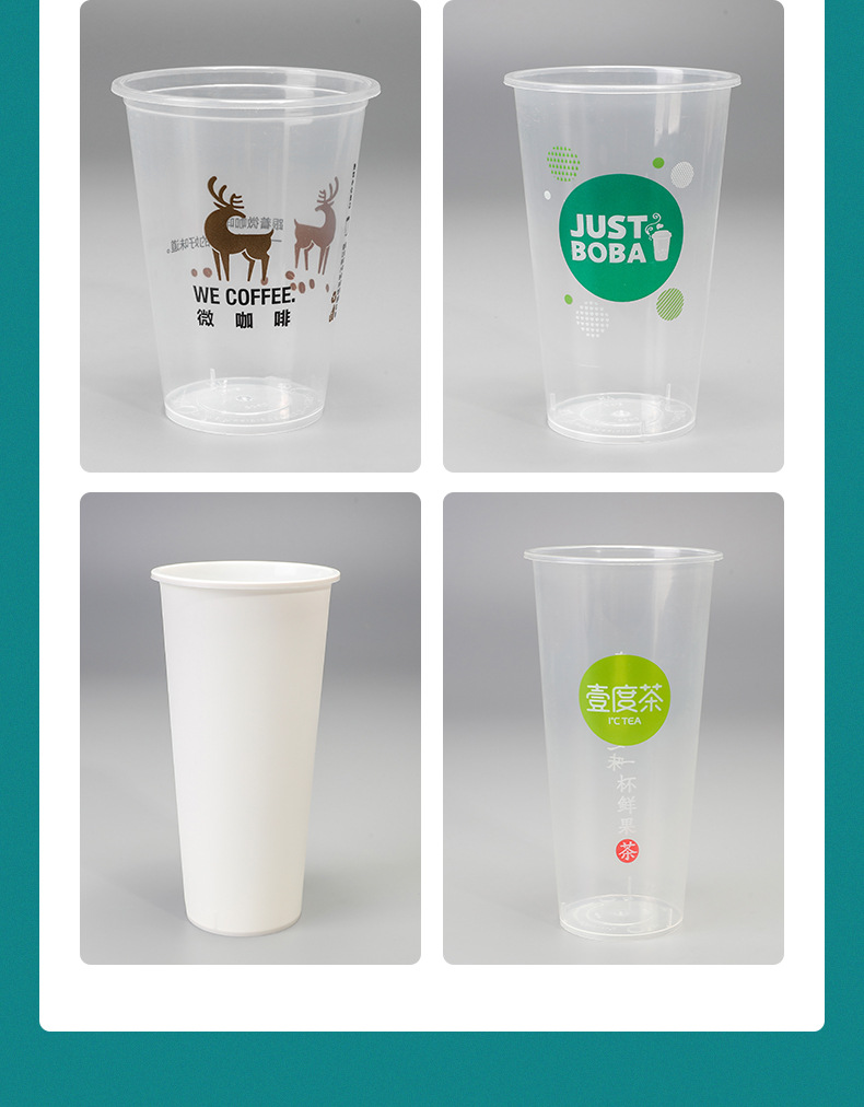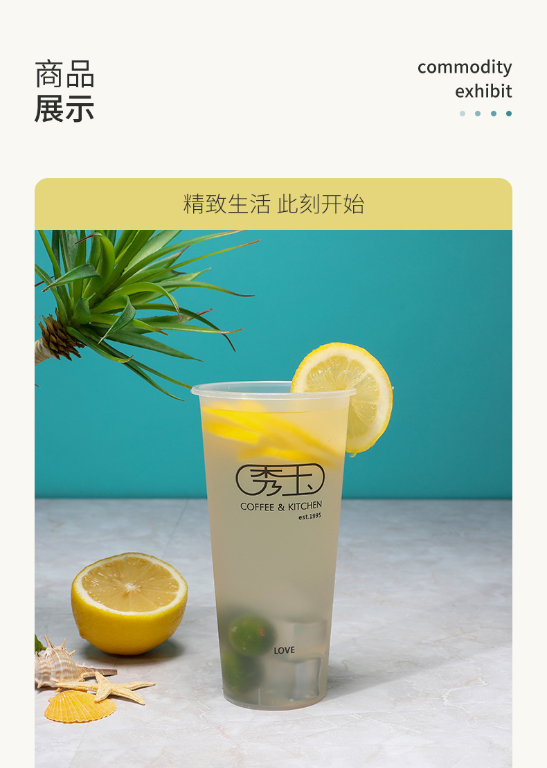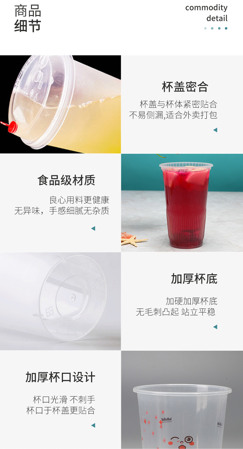 一次性奶茶杯 防烫冷热带盖咖啡杯 加厚透明磨砂印刷logo冷饮杯