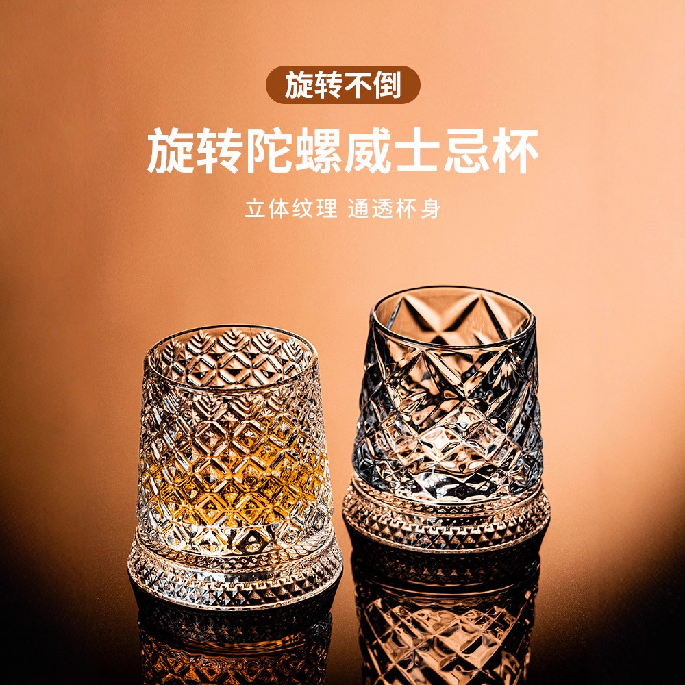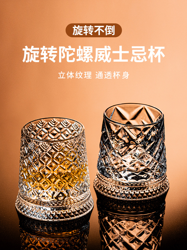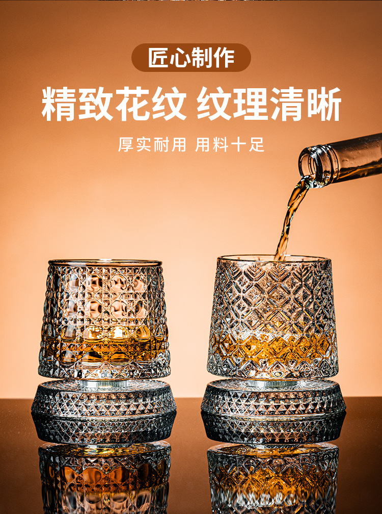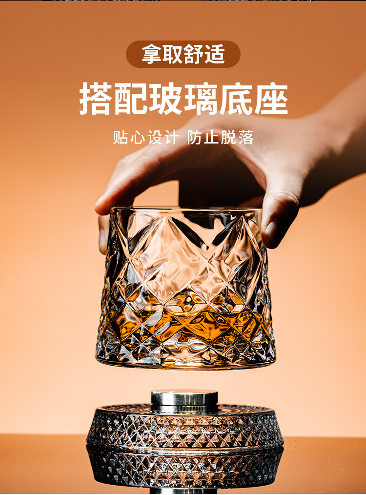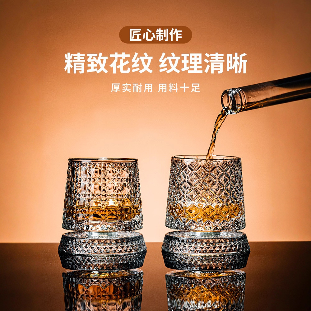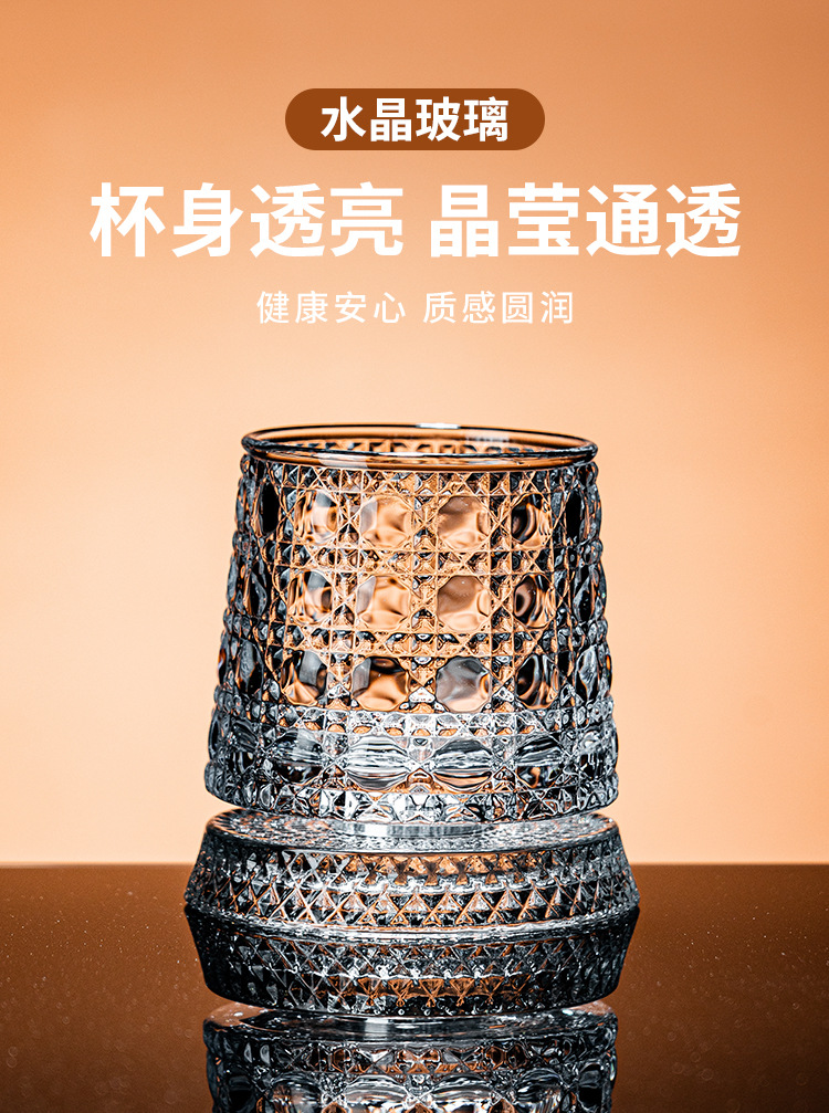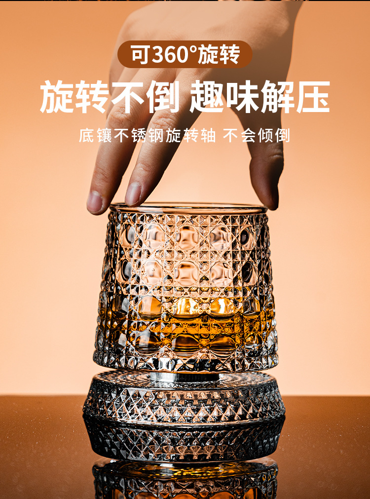 水晶旋转玻璃杯高级感网红解压转转杯家用威士忌酒杯洋酒杯烈酒杯