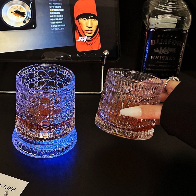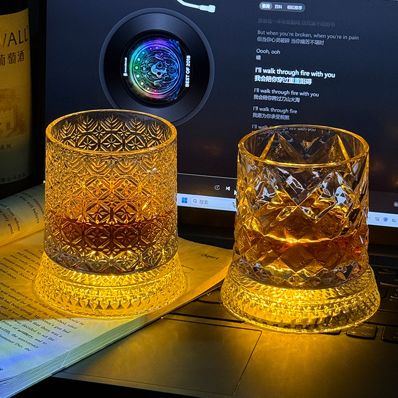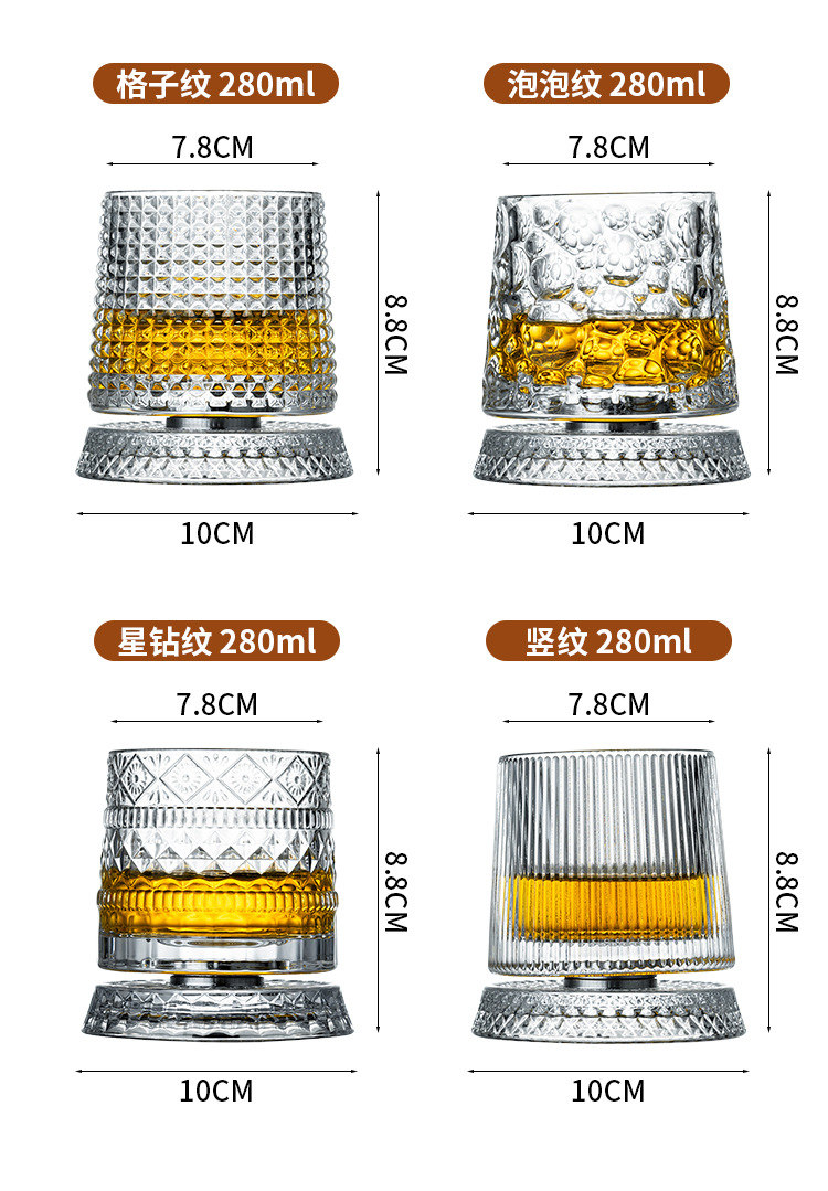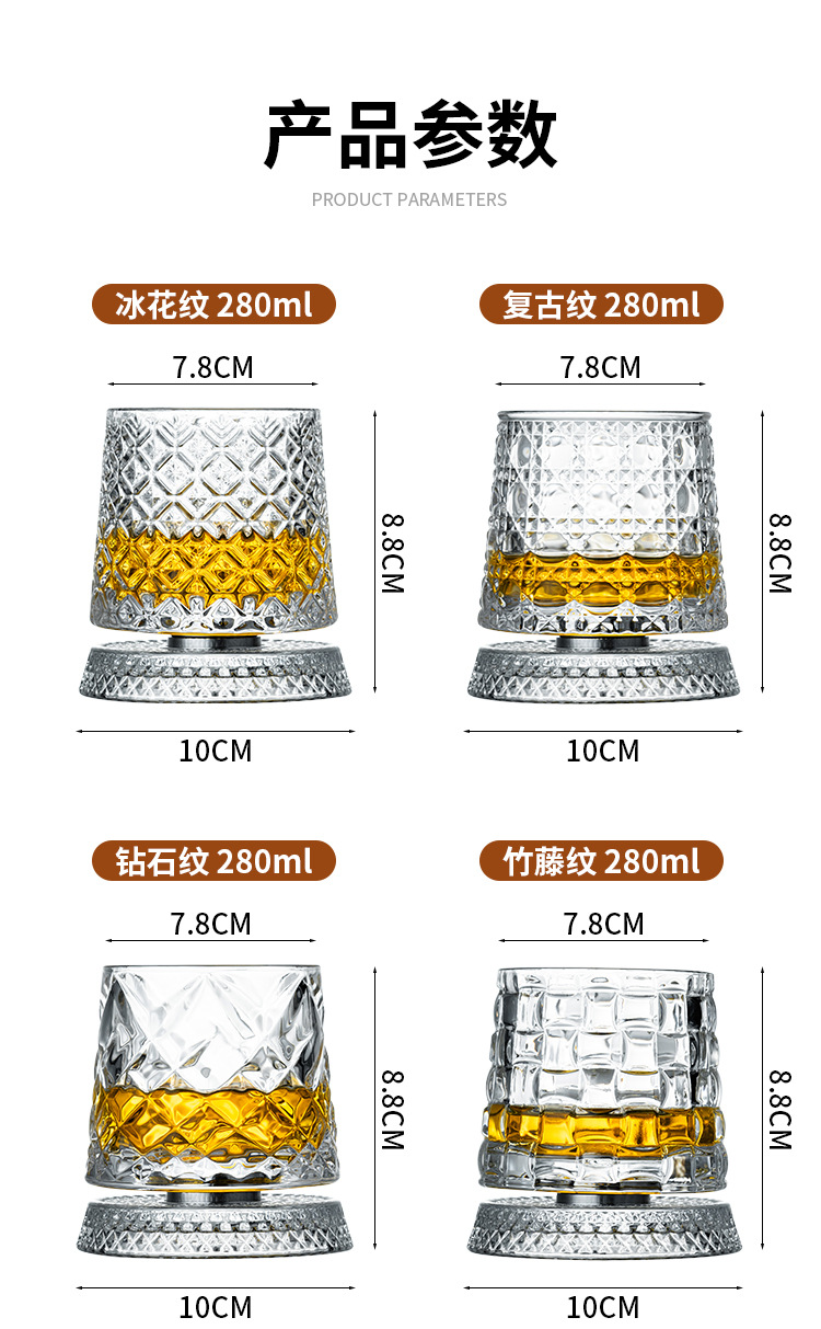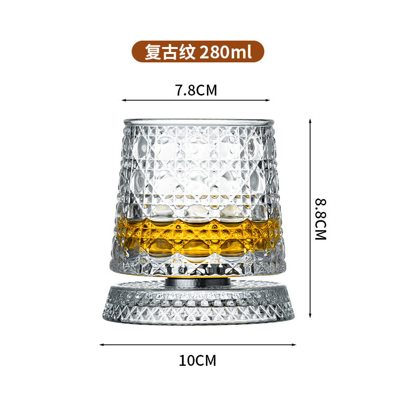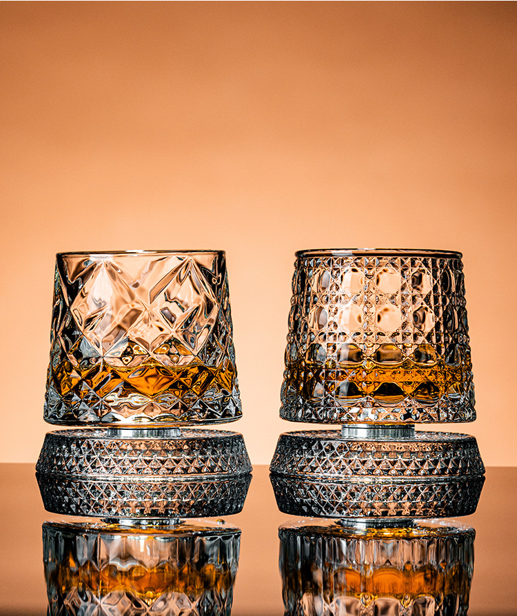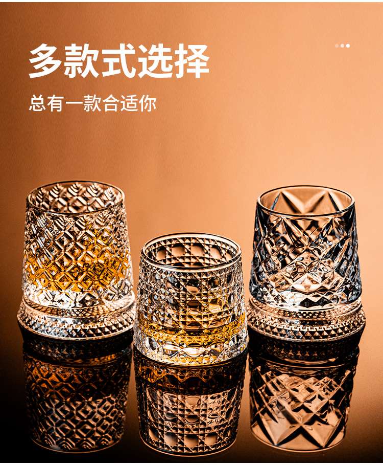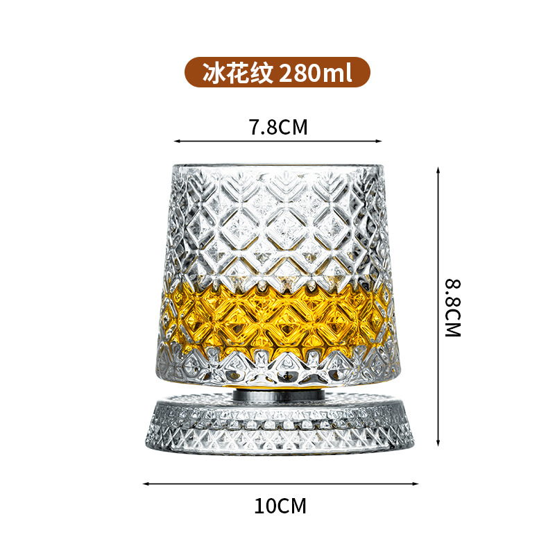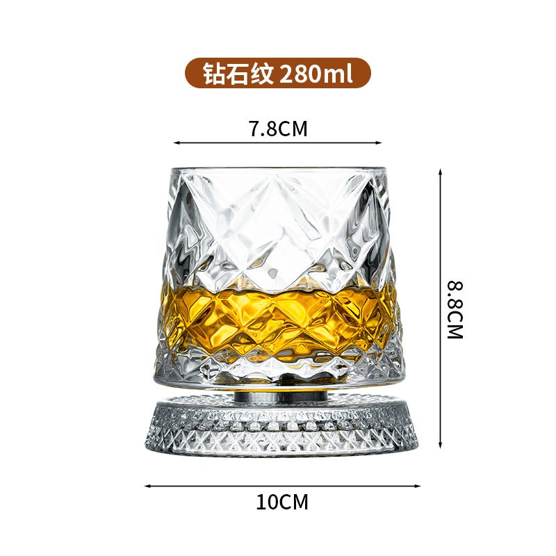 水晶旋转玻璃杯高级感网红解压转转杯家用威士忌酒杯洋酒杯烈酒杯