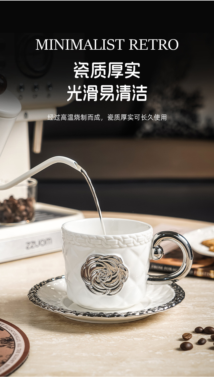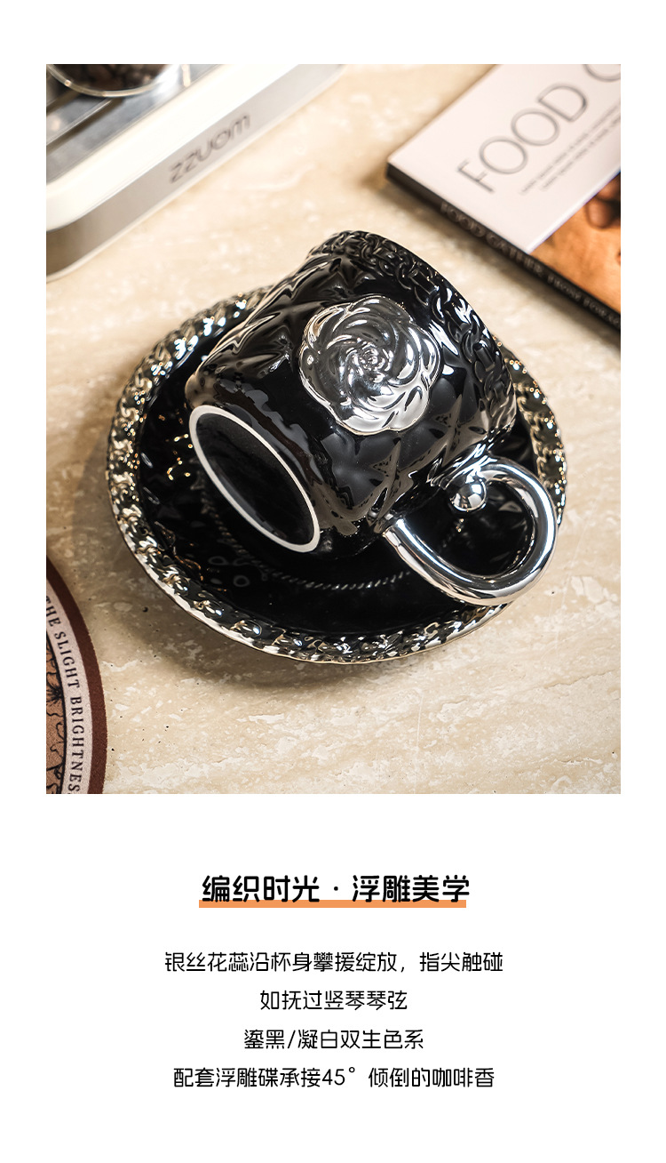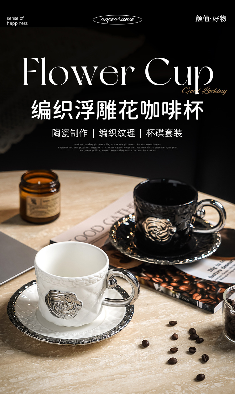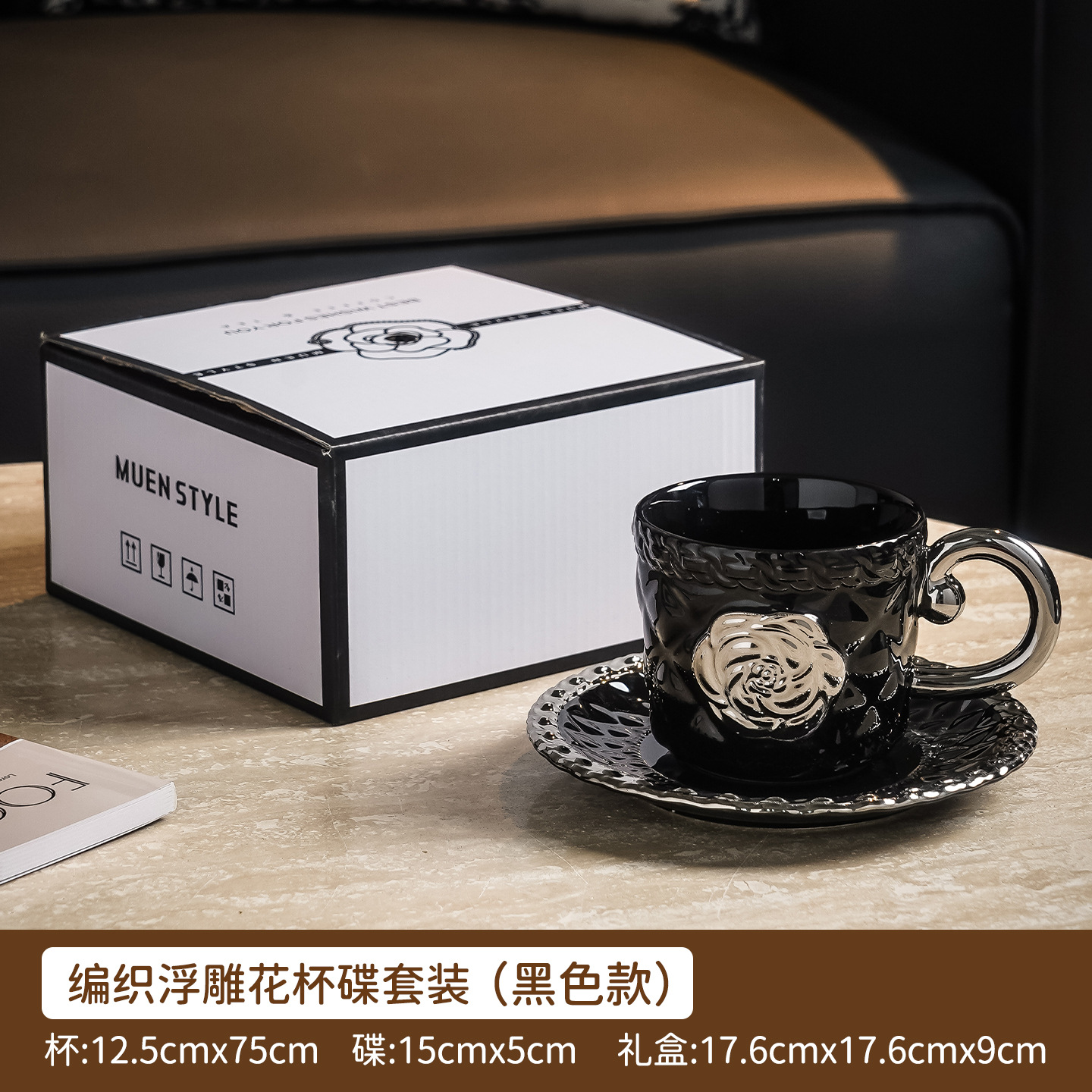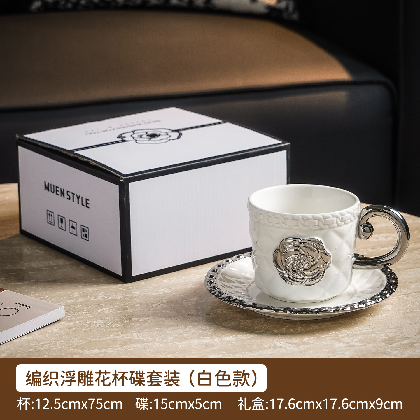 家用陶瓷咖啡杯碟套装浮雕轻奢高级感法式欧式咖啡杯伴手礼批发