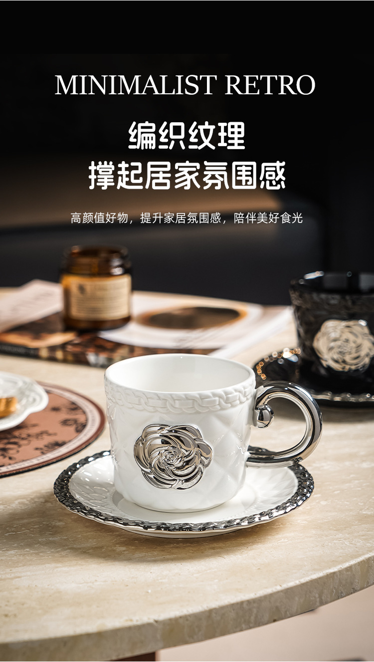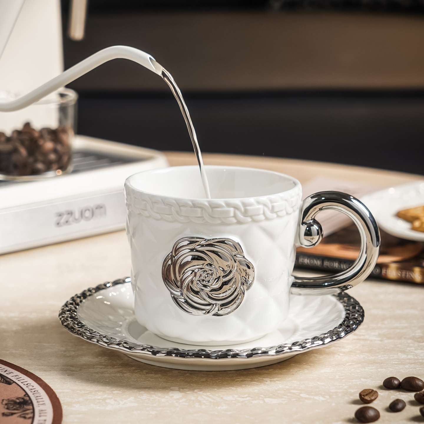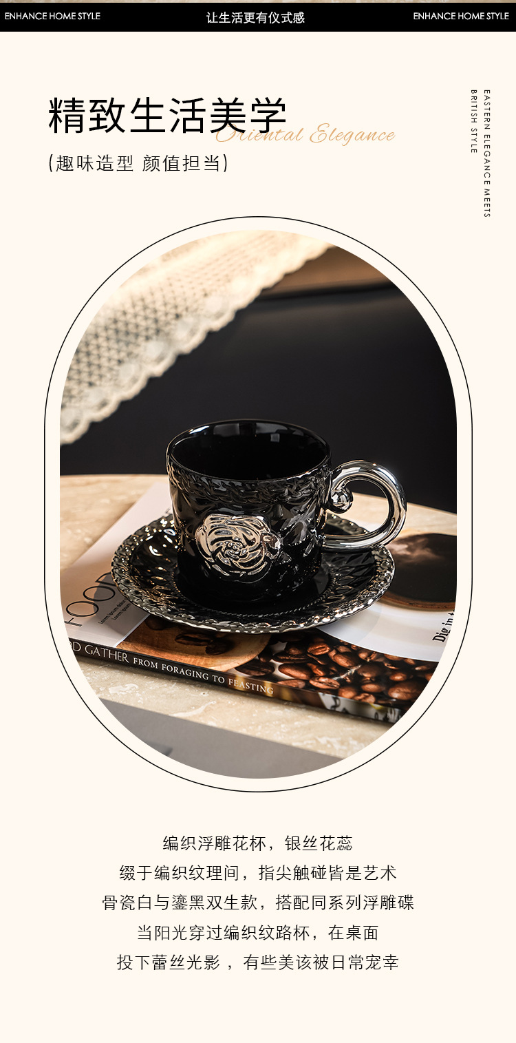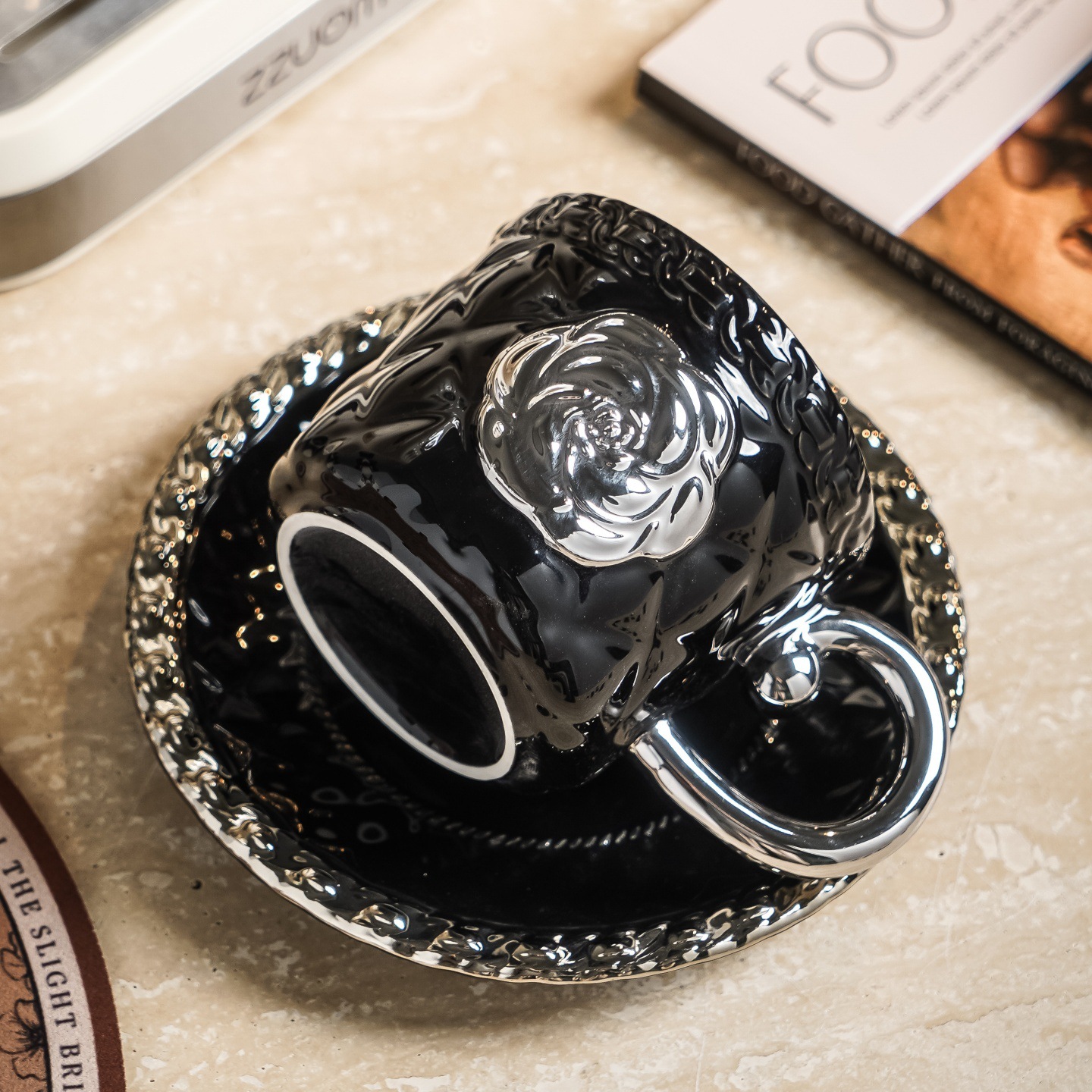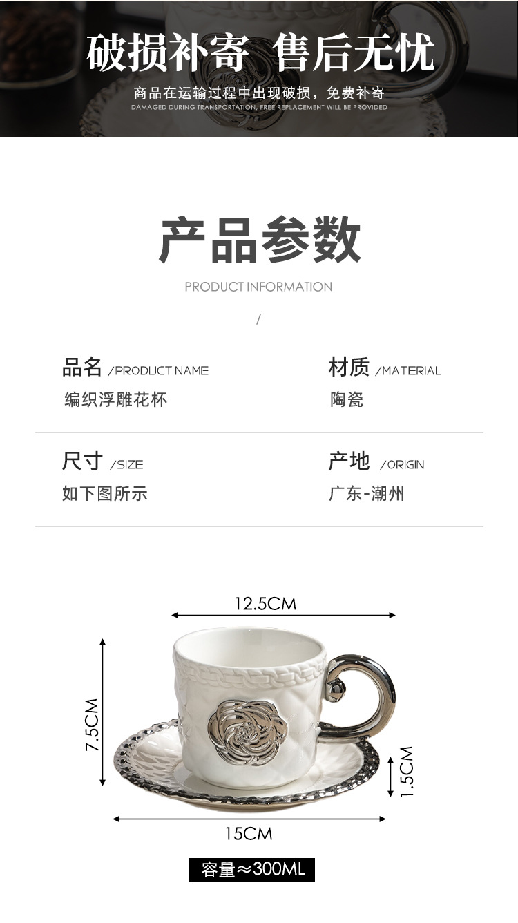 家用陶瓷咖啡杯碟套装浮雕轻奢高级感法式欧式咖啡杯伴手礼批发